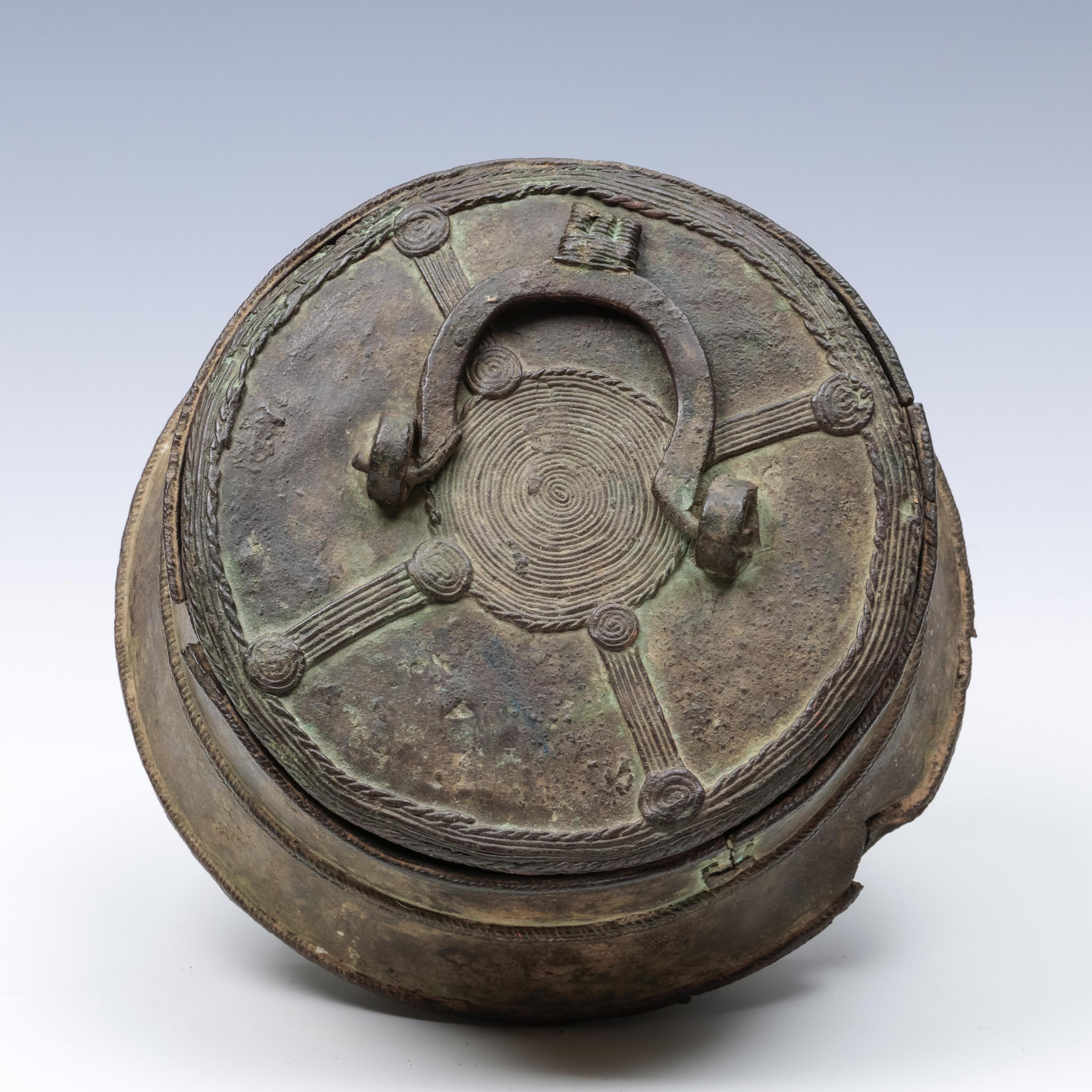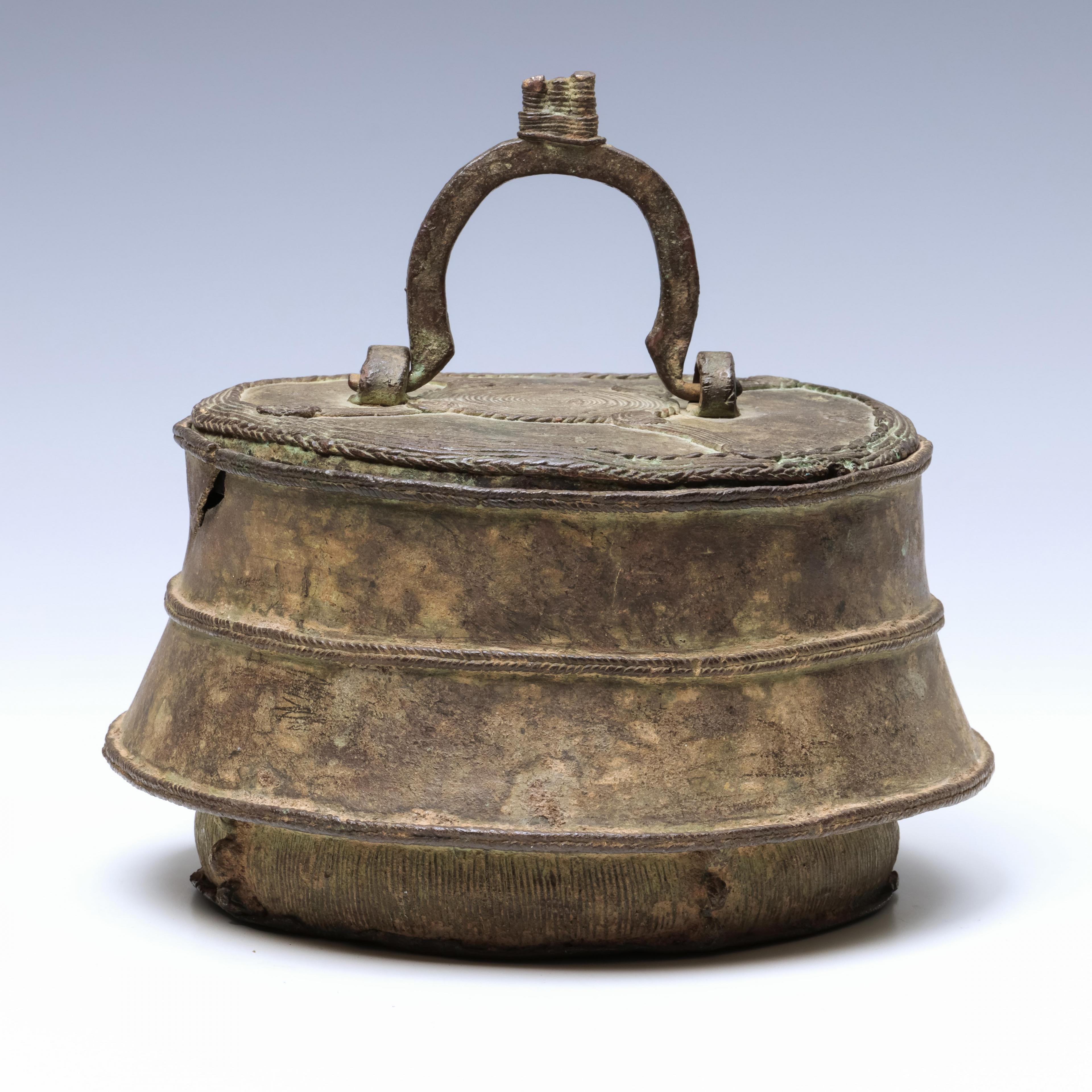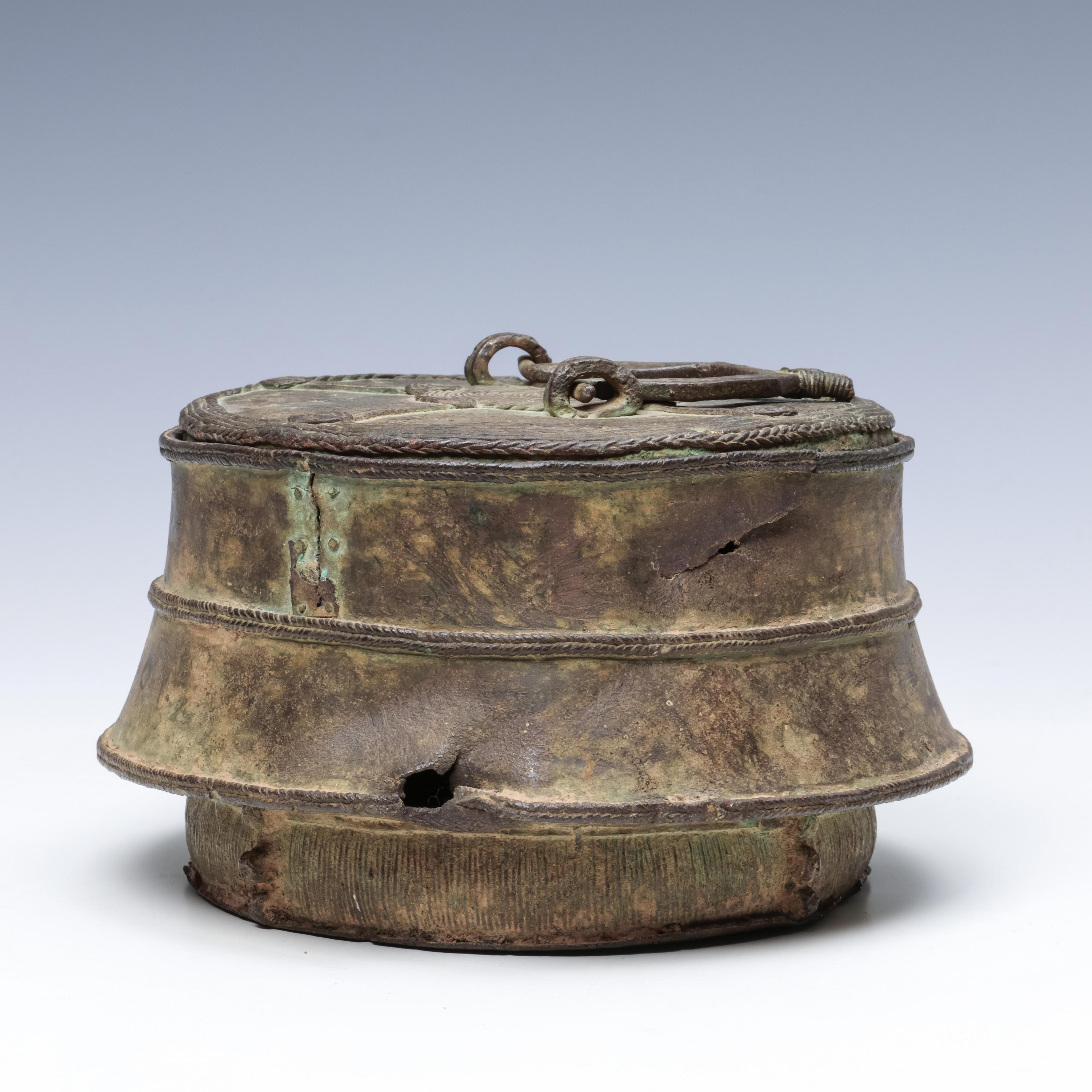 Ghana, Ashanti, a wooden seat and a bronze lidded box, kuduo.
