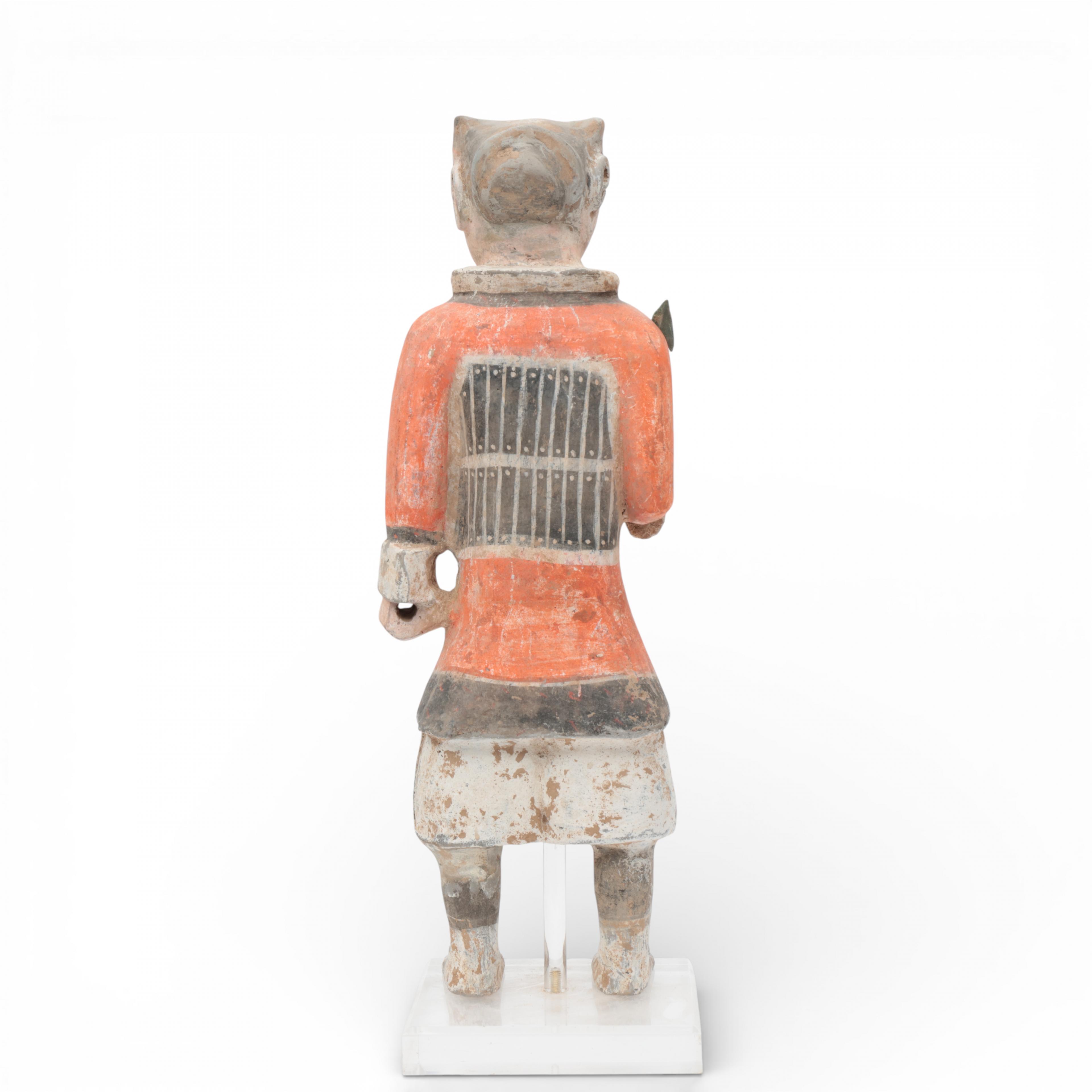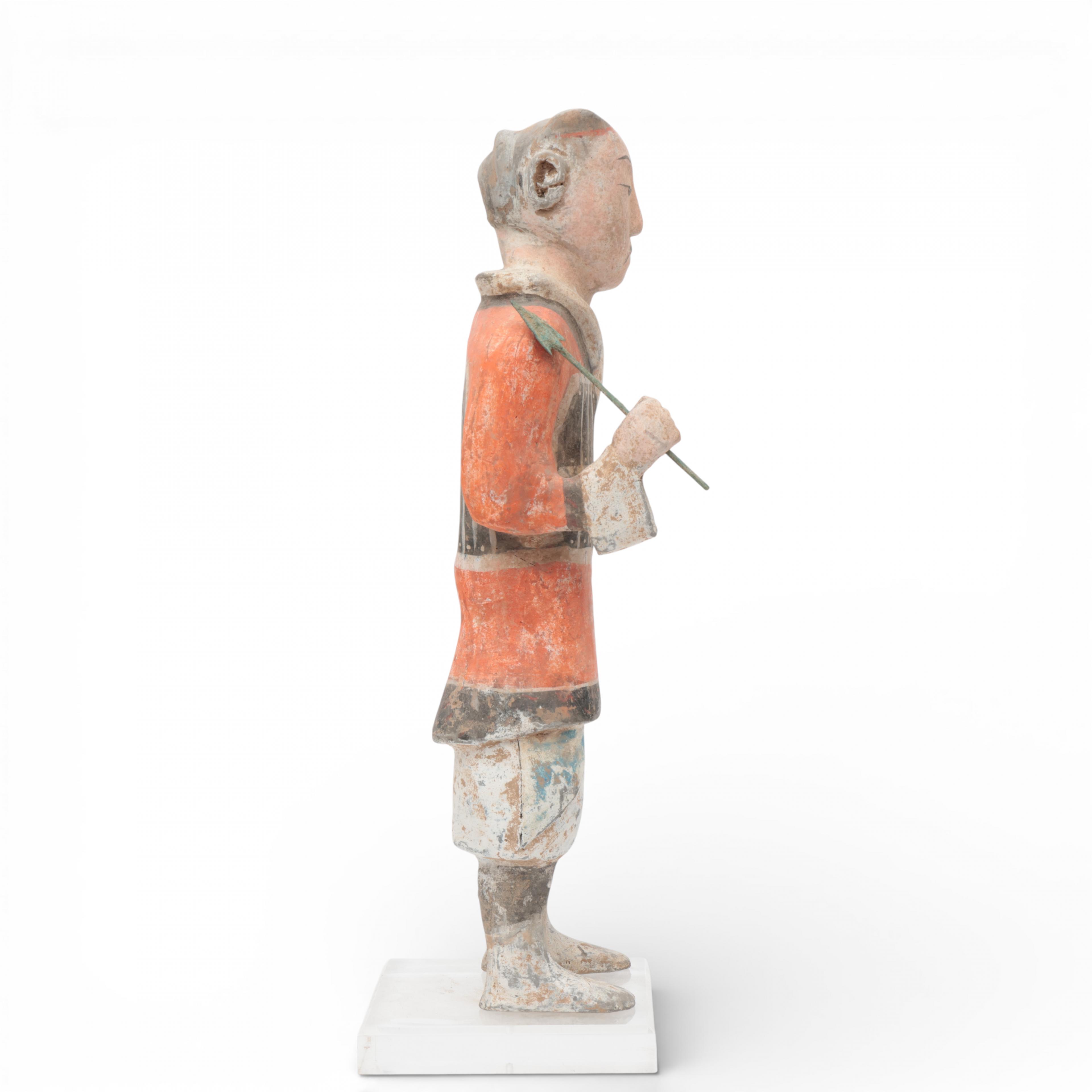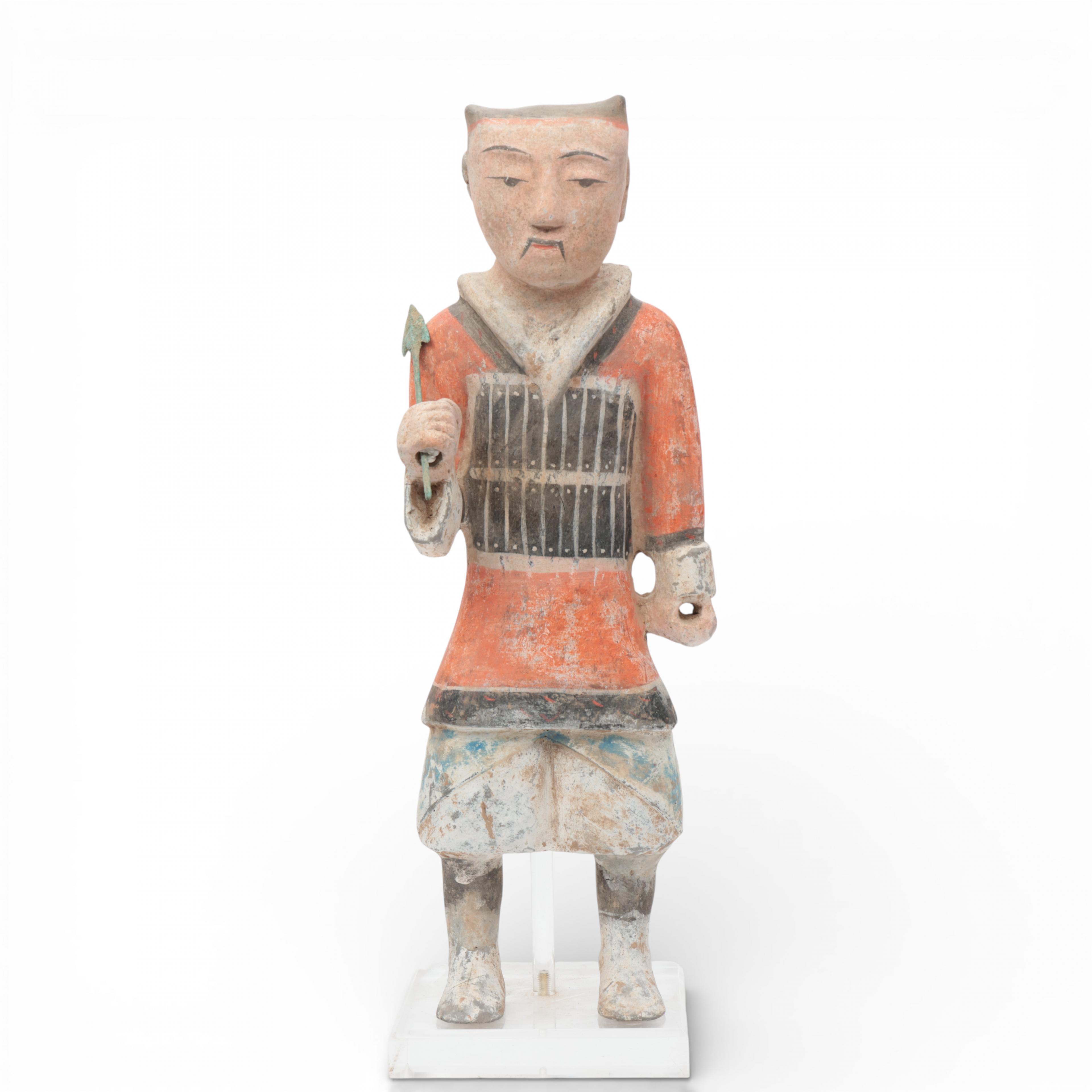 China, a painted pottery model of a warrior, in Han style,