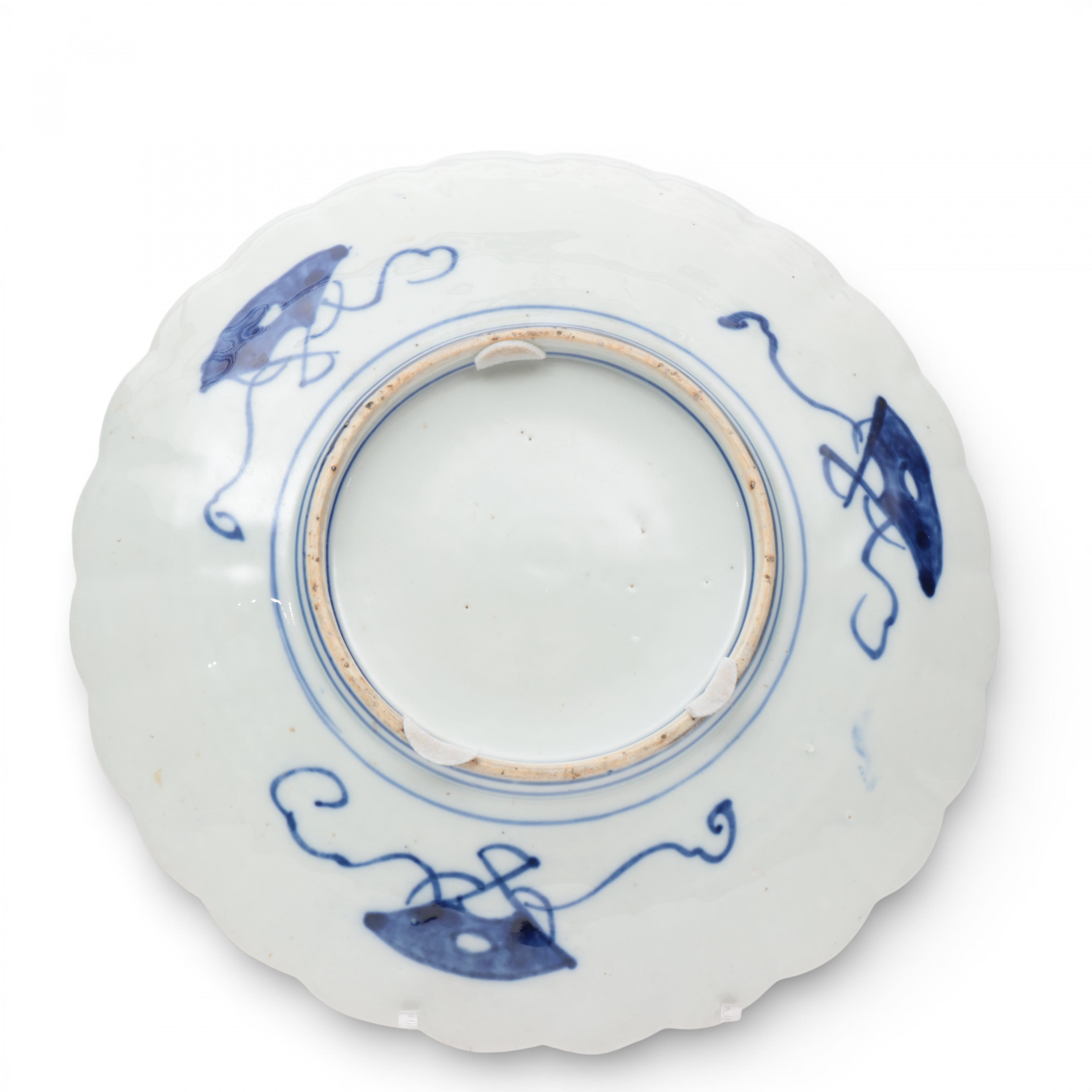 of chrysanthemum shape and painted with panels od bird, scrolls and flowers surrounding a flower-vase