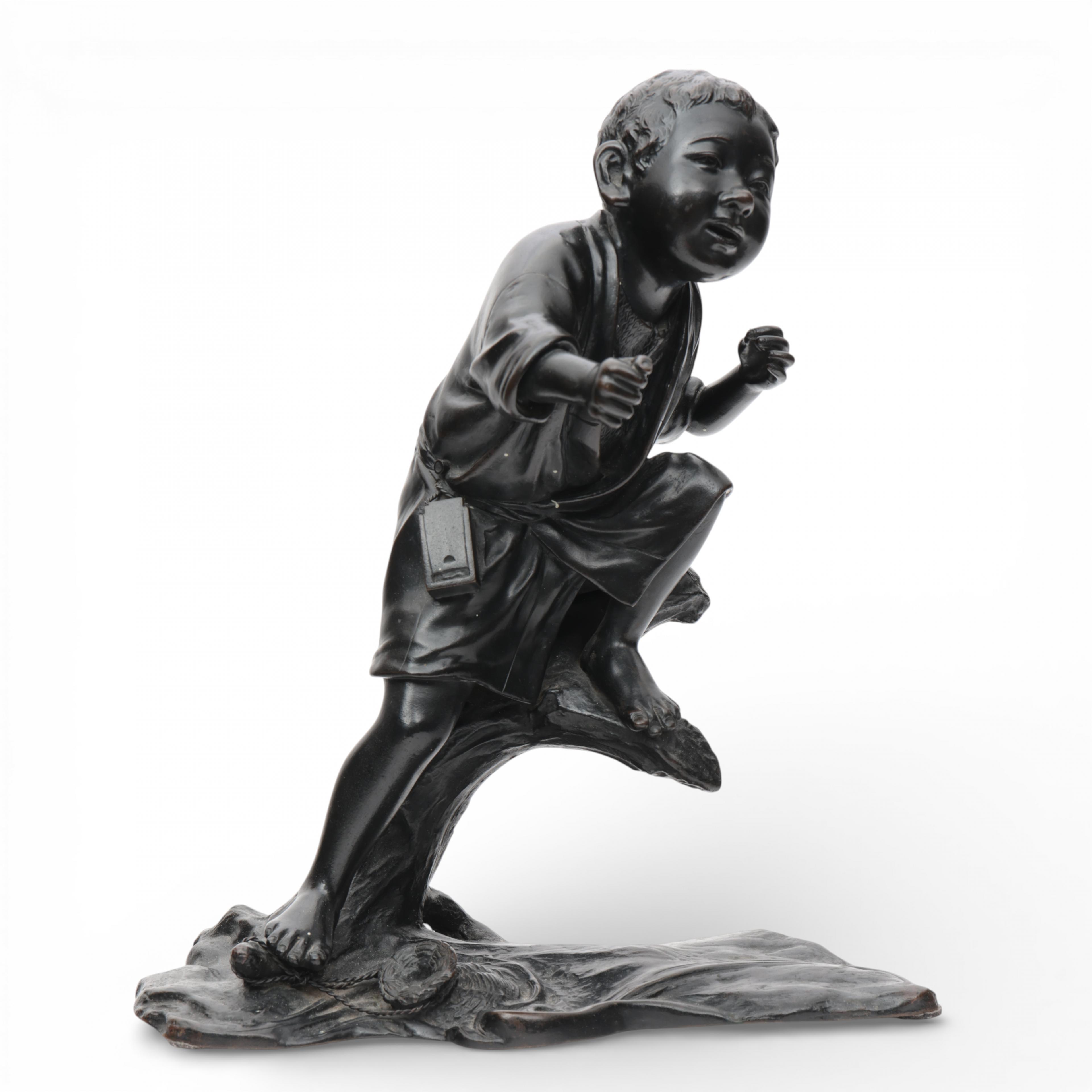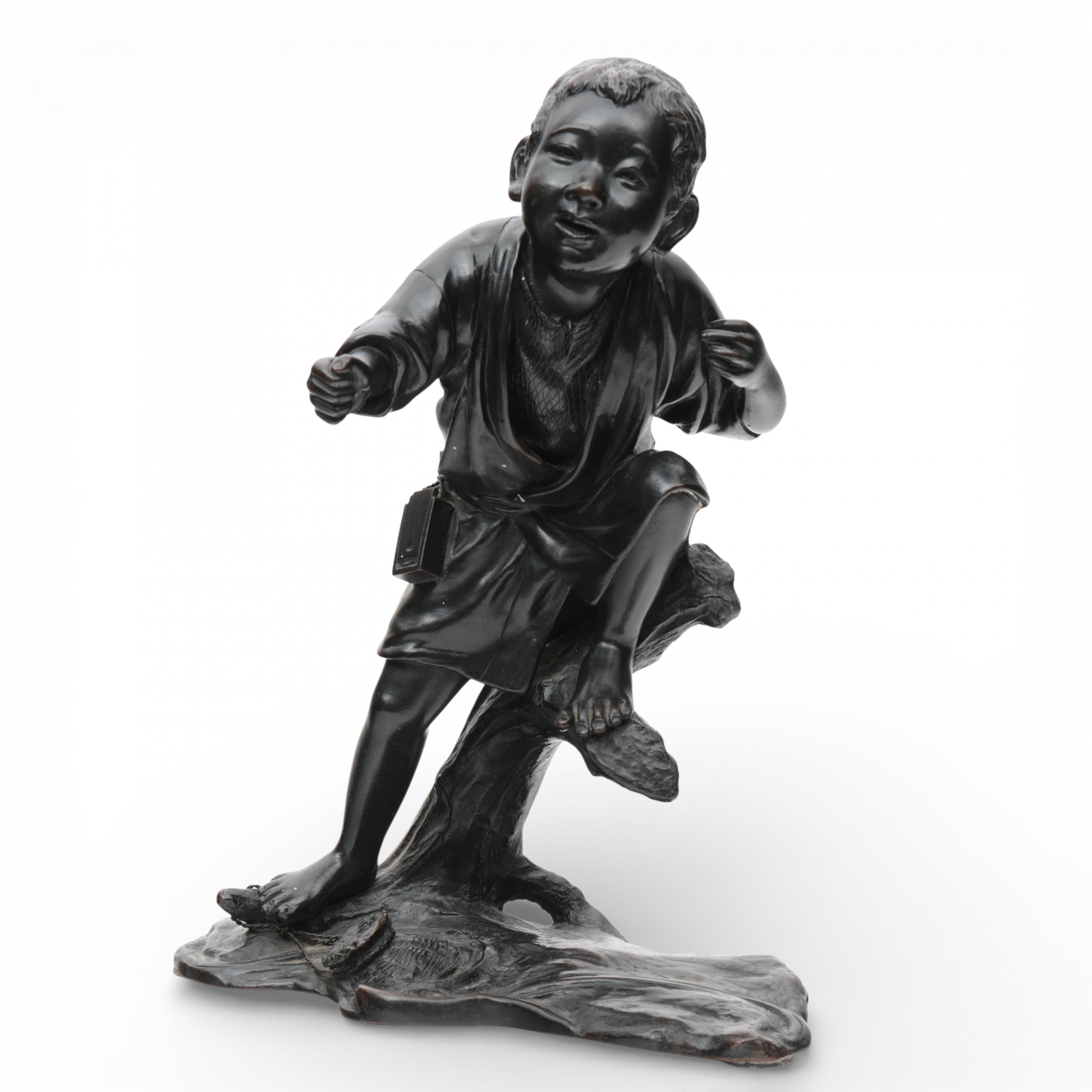 Japan, a bronze okimono of a fisherman boy, Meiji period (1868-1912),