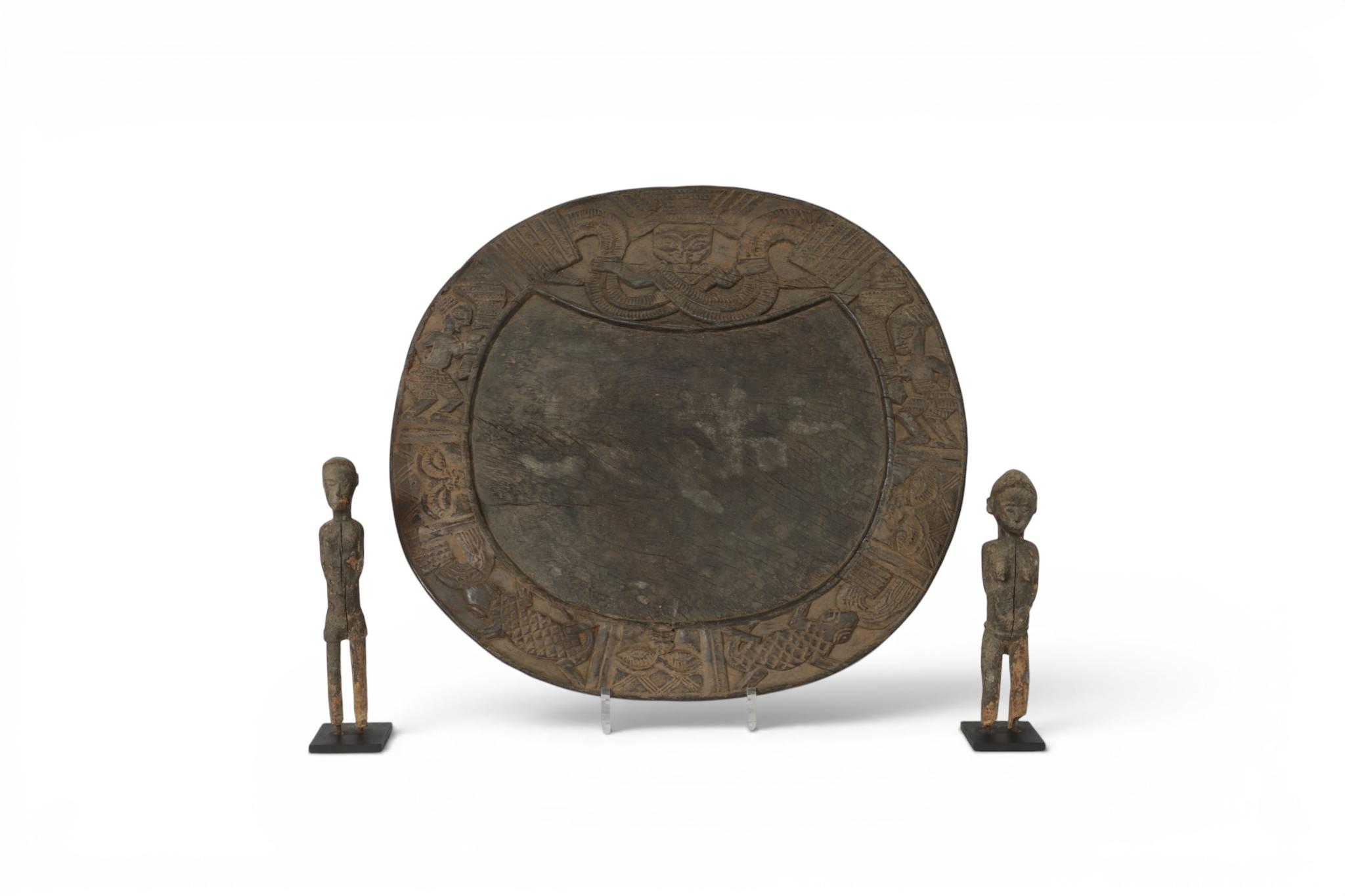 Nigeria, Yoruba, a Ifo board and Ivory Coast, Baule, two small figures.