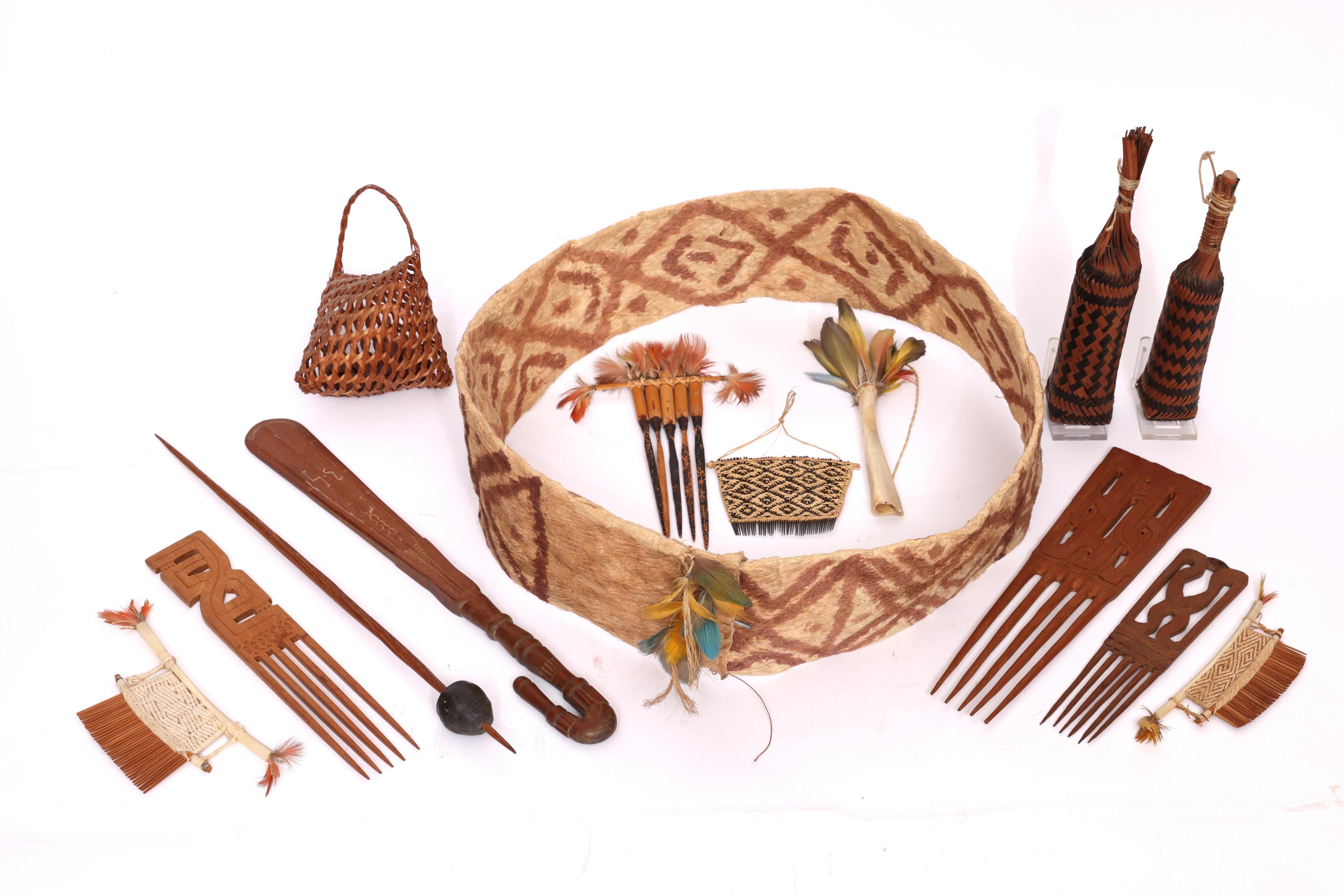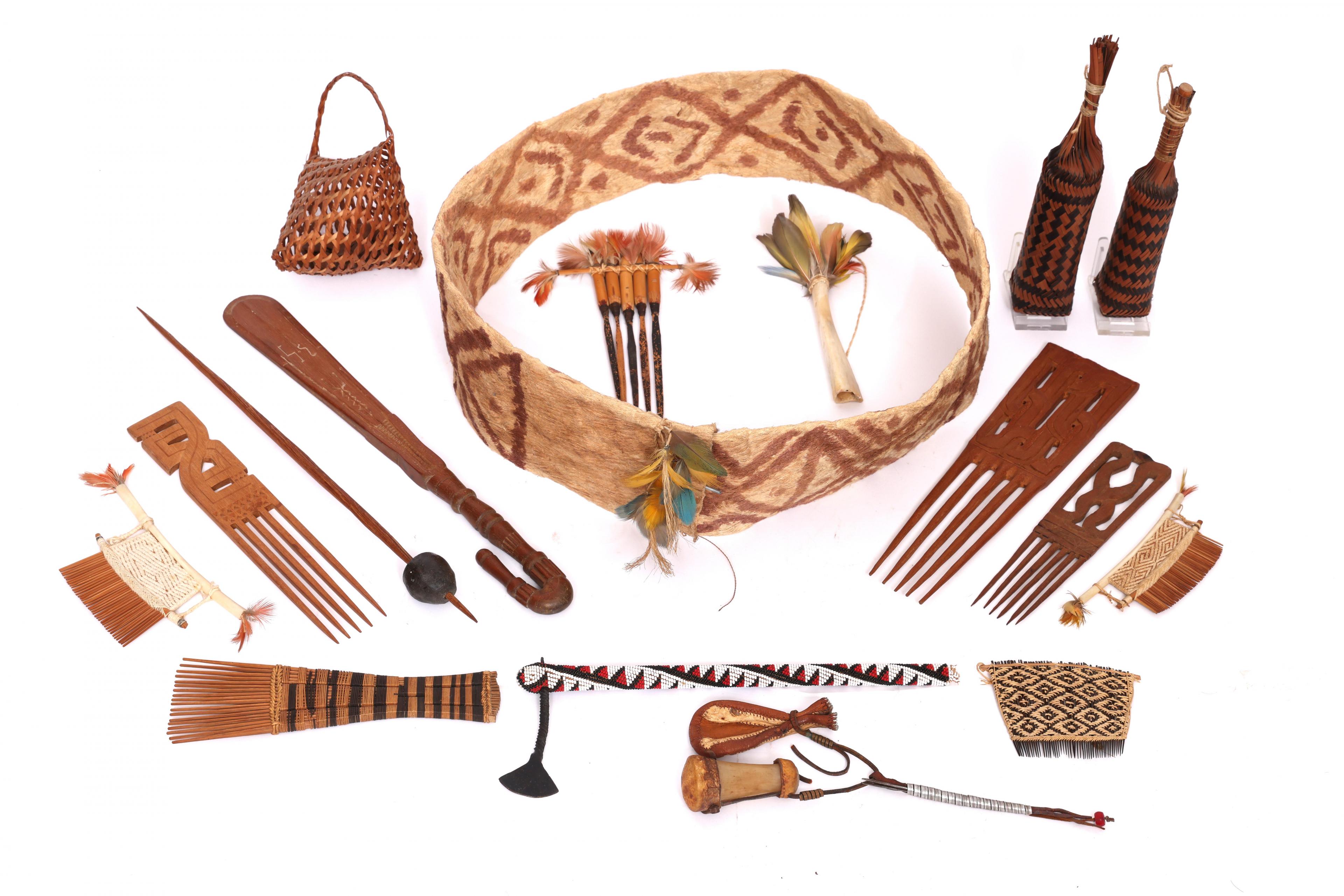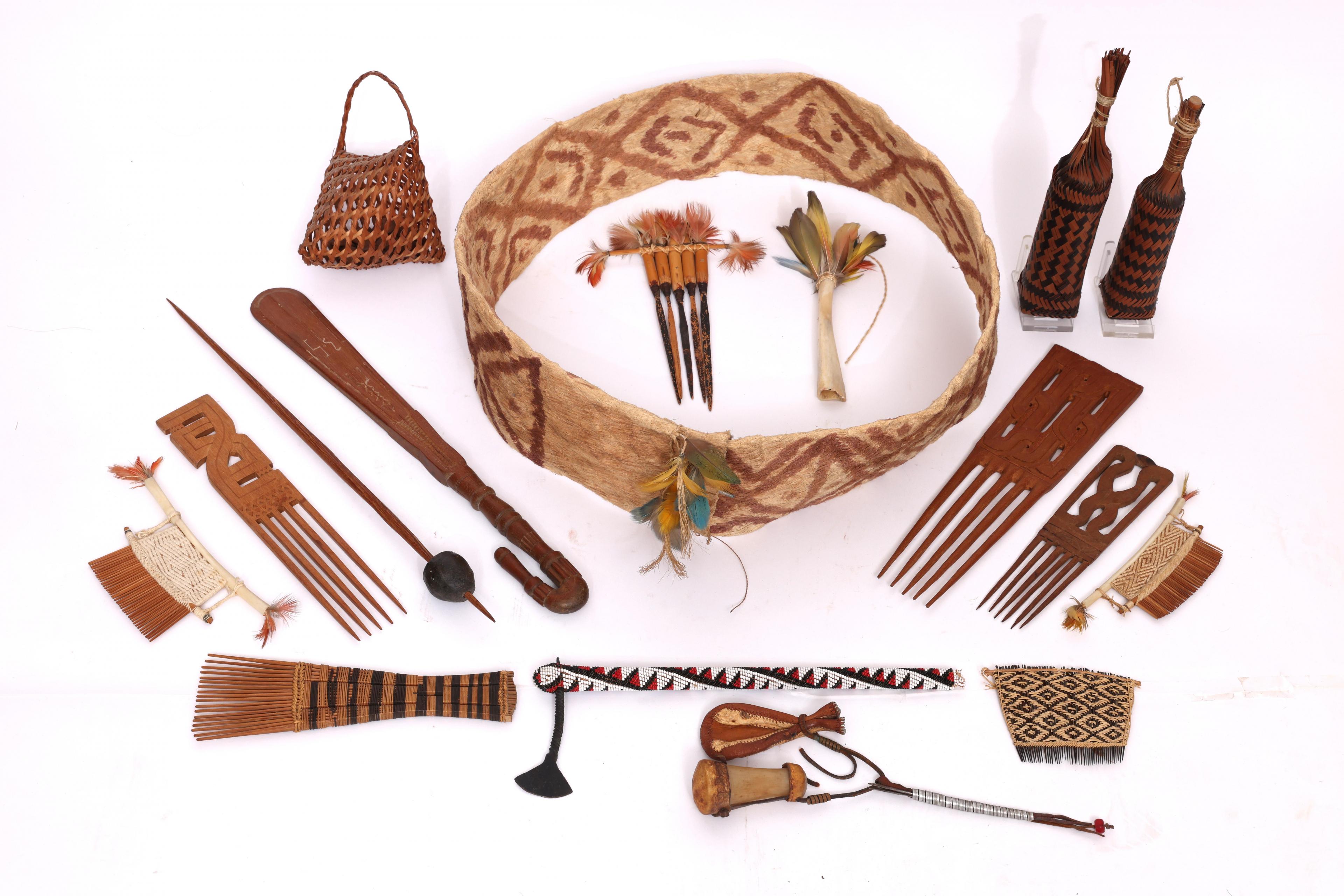 Surinam-Carebean, a collection of combs, dance ornaments and various objects.