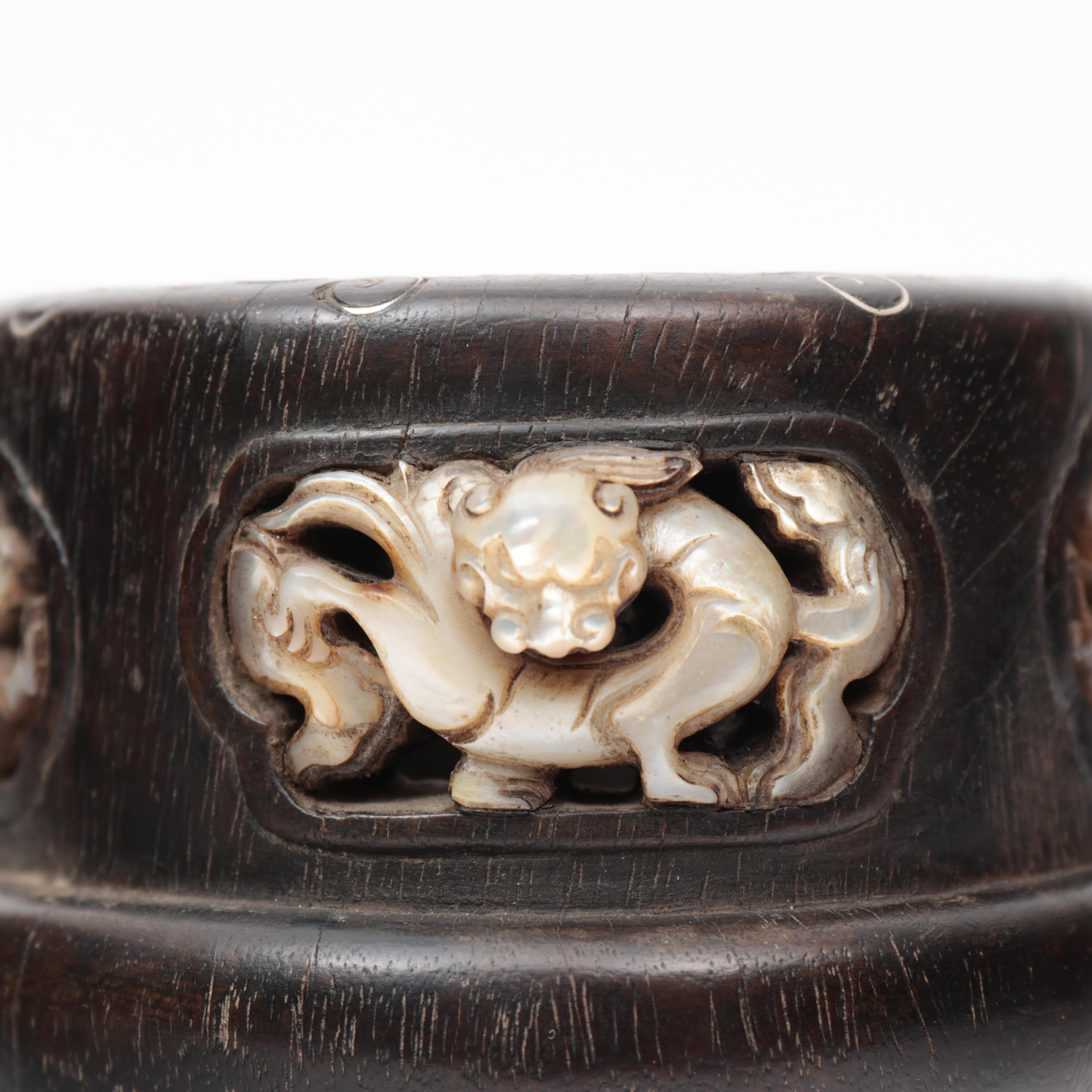 China, a zitan and mother-of-pearl-inlaid bruspot, 17th century,