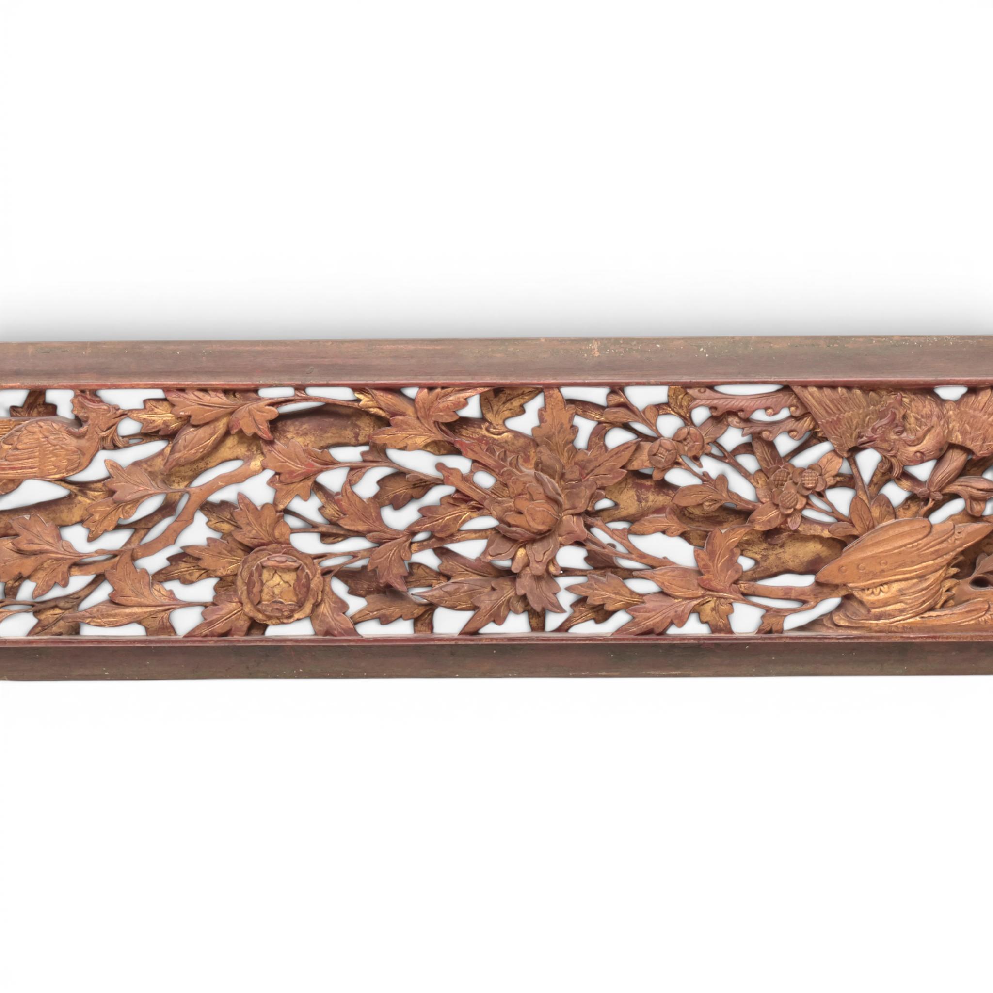 China, red lacquer and gilt-wood carved and open worked panel, ca. 1900,