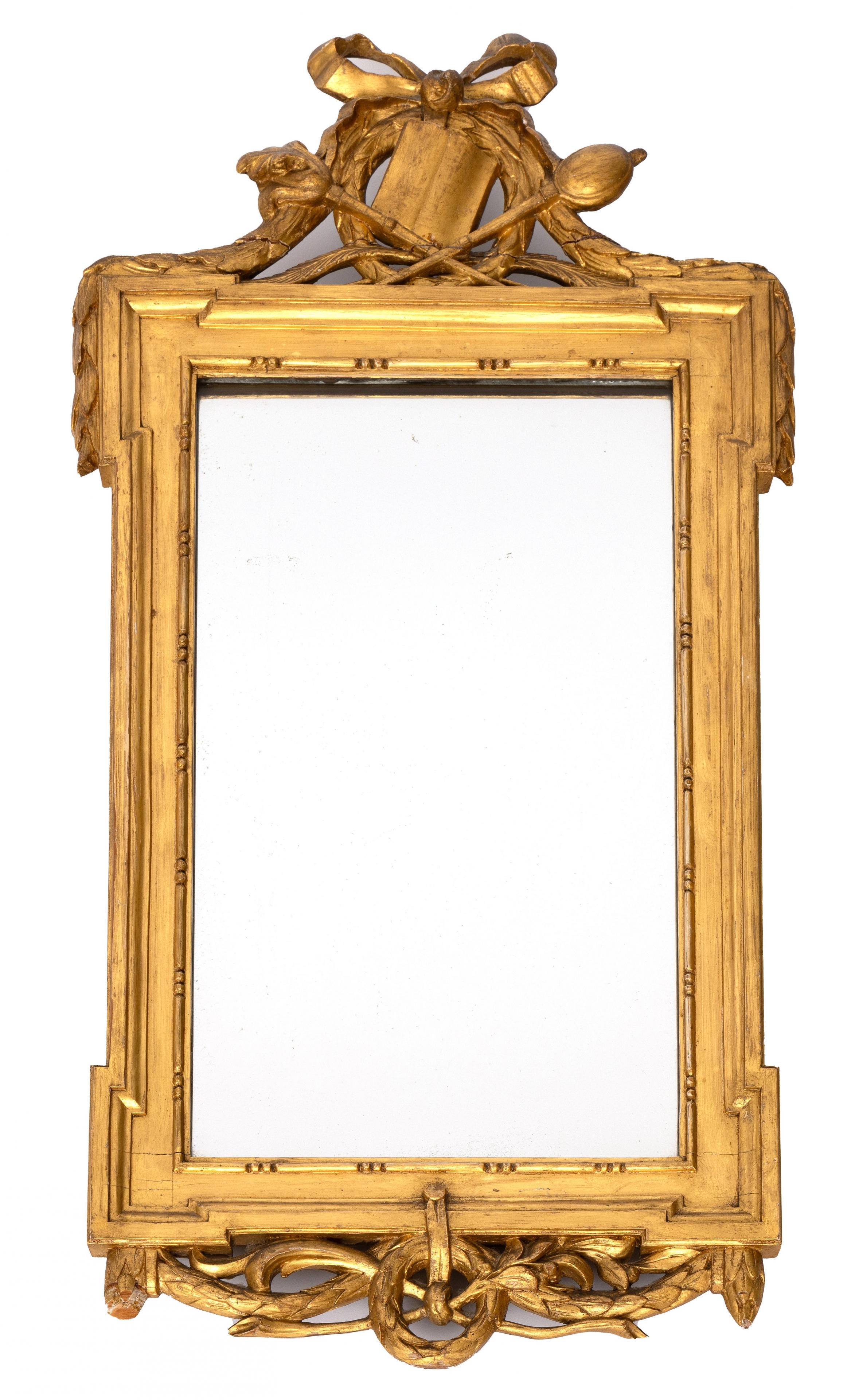met o.a. strikwerk, lauwerkransen en guirlandes (stukjes onderzijde lijst ontbreken)
