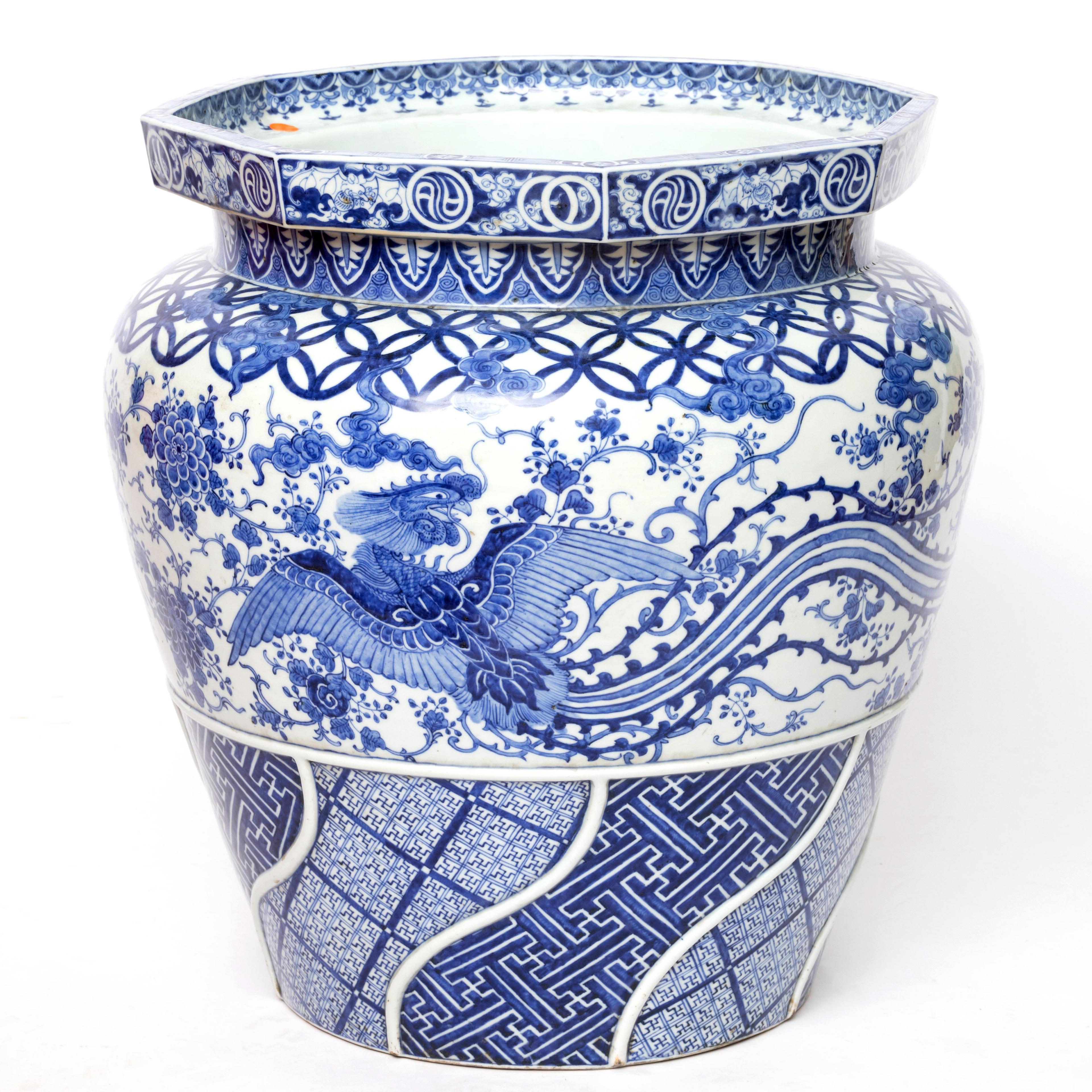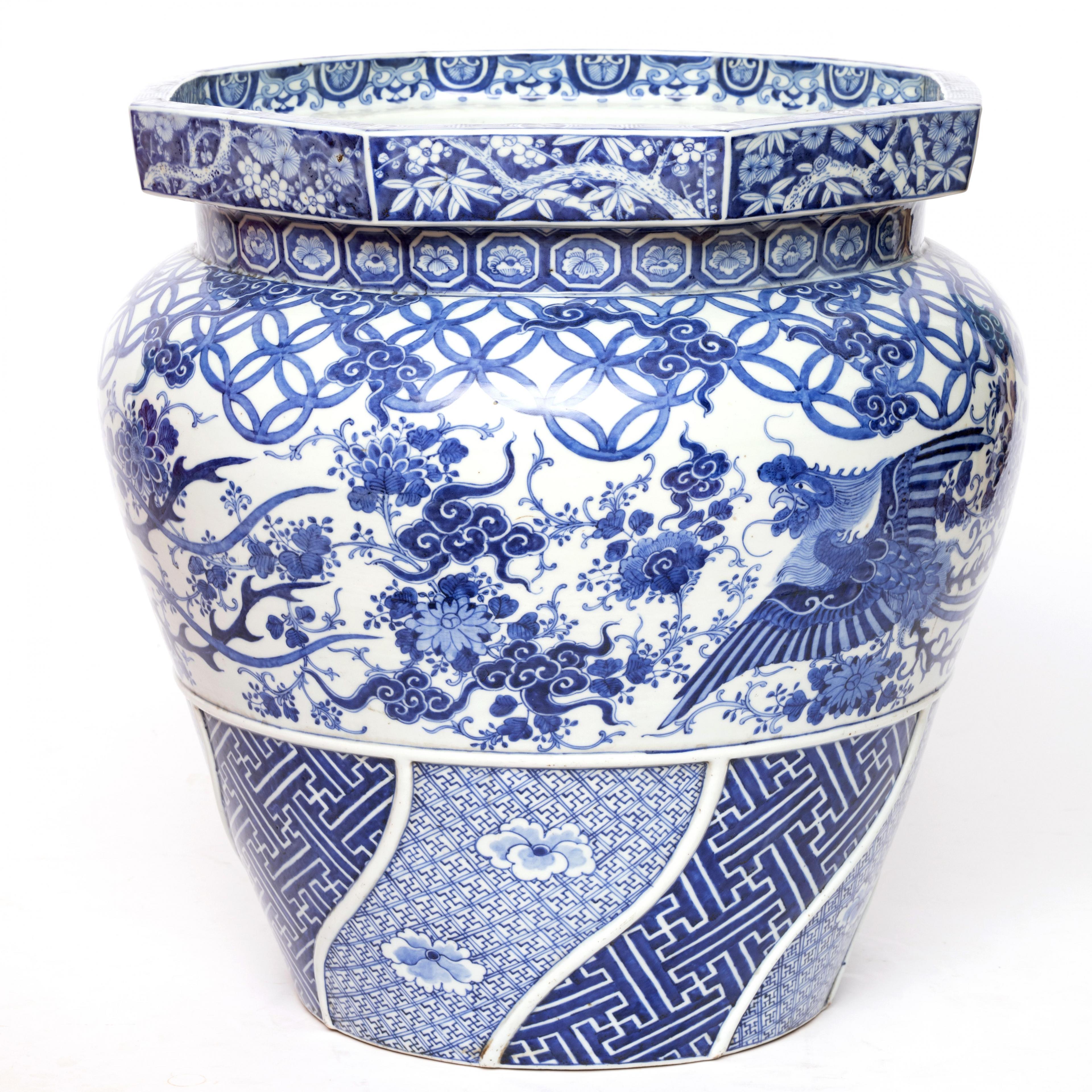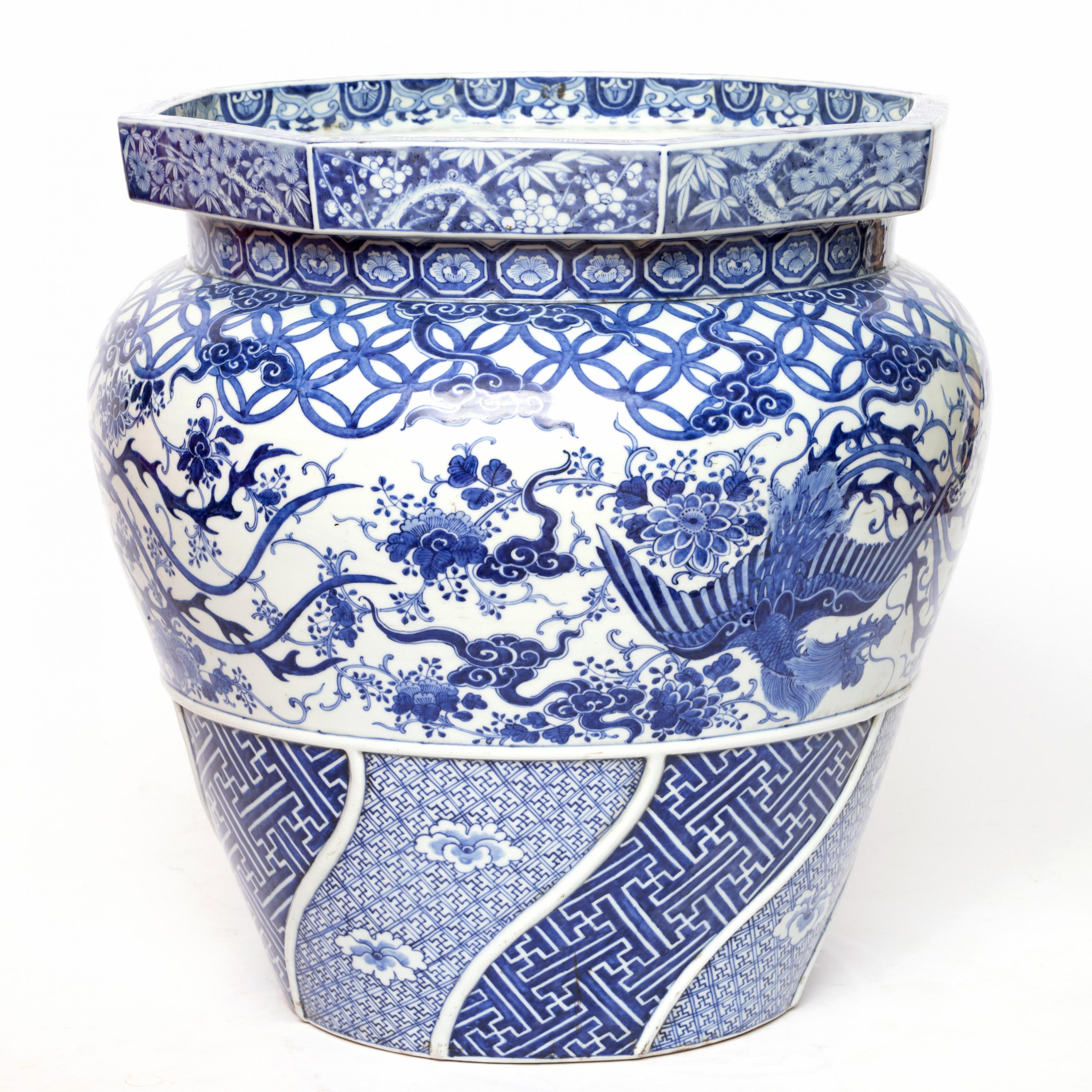 Japan, a pair of large blue and white porcelain jardinières, Edo/Meiji period, 19th century,