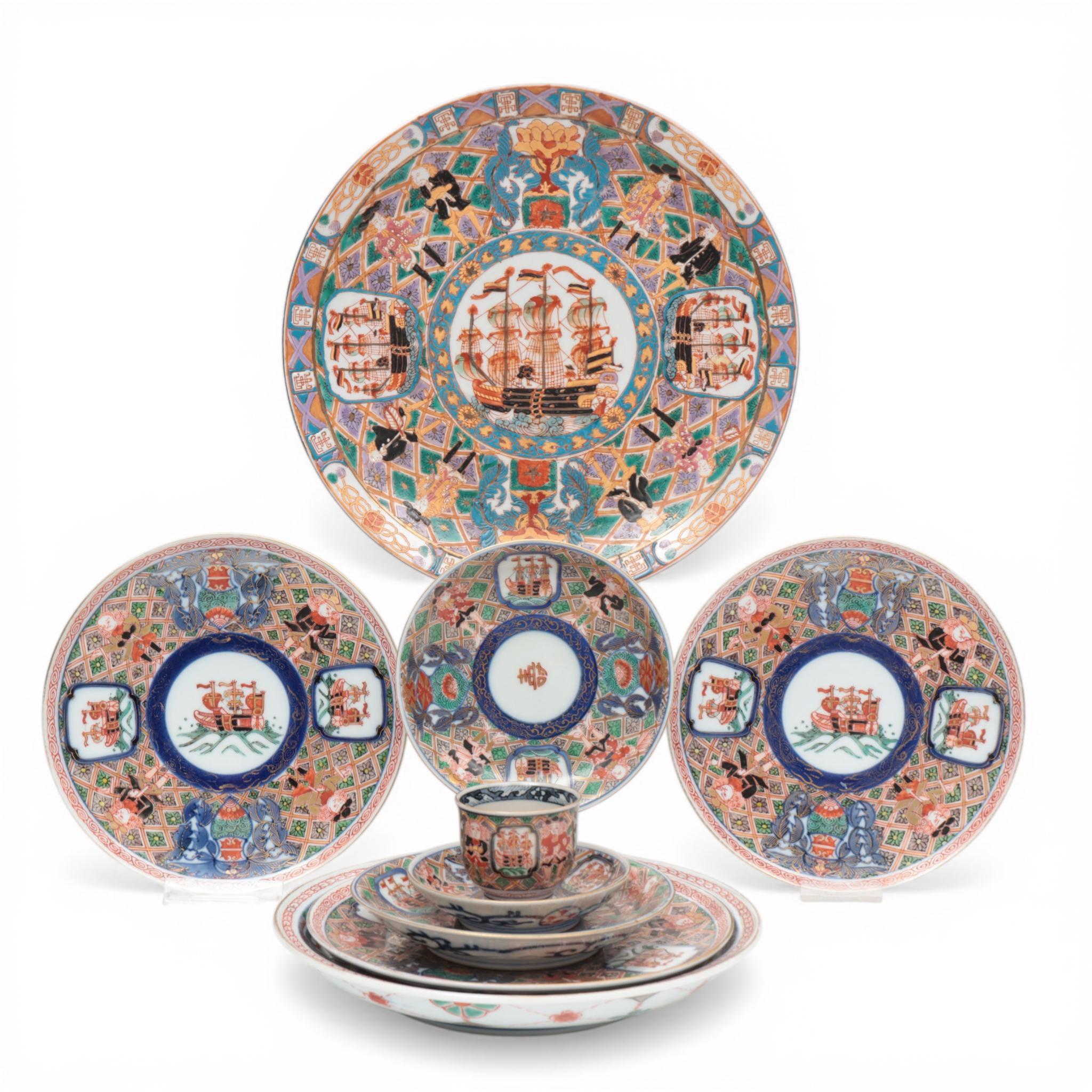 Japan, a collection of verte-Imari porcelain 'Namban black ship' porcelain, ca. 1820-1850,