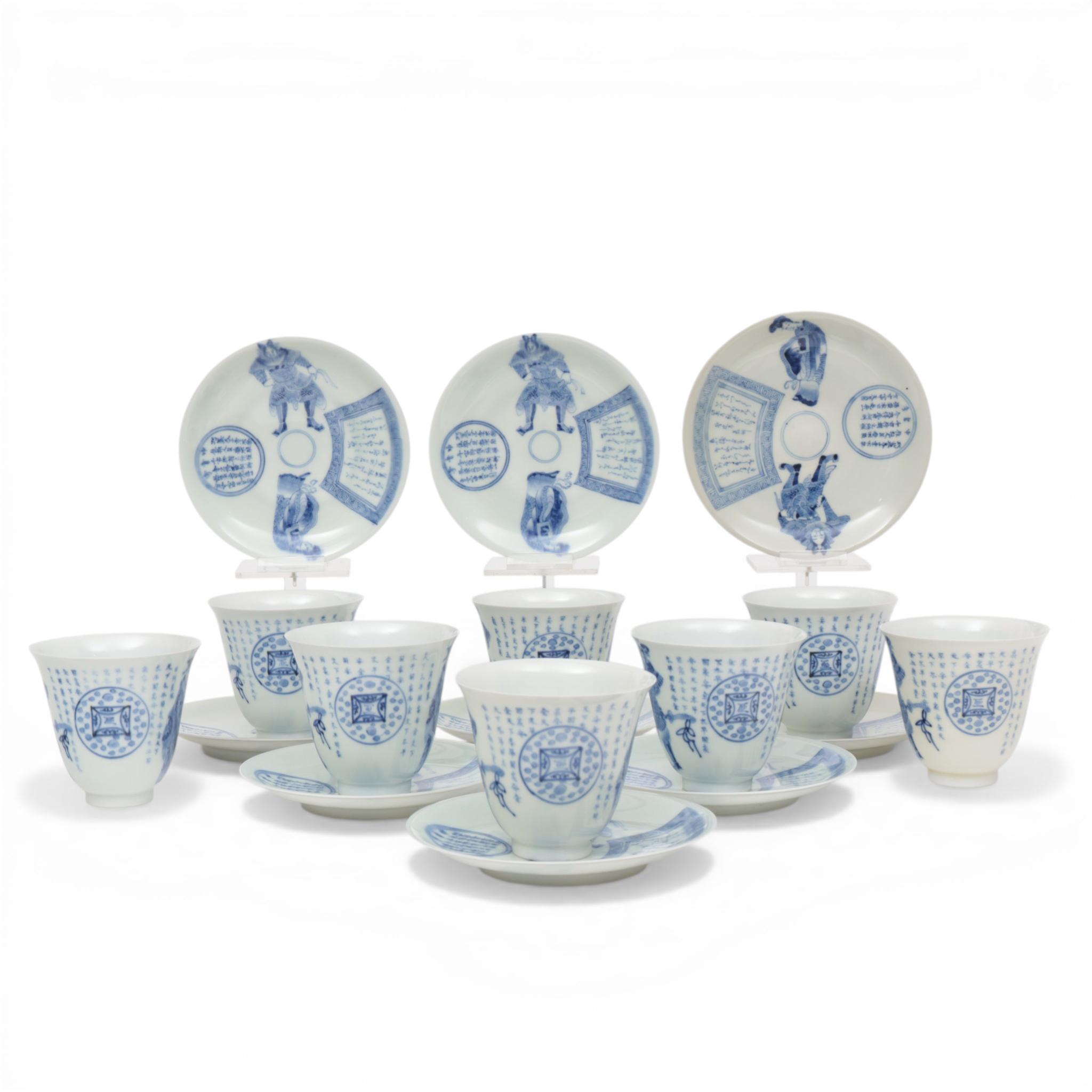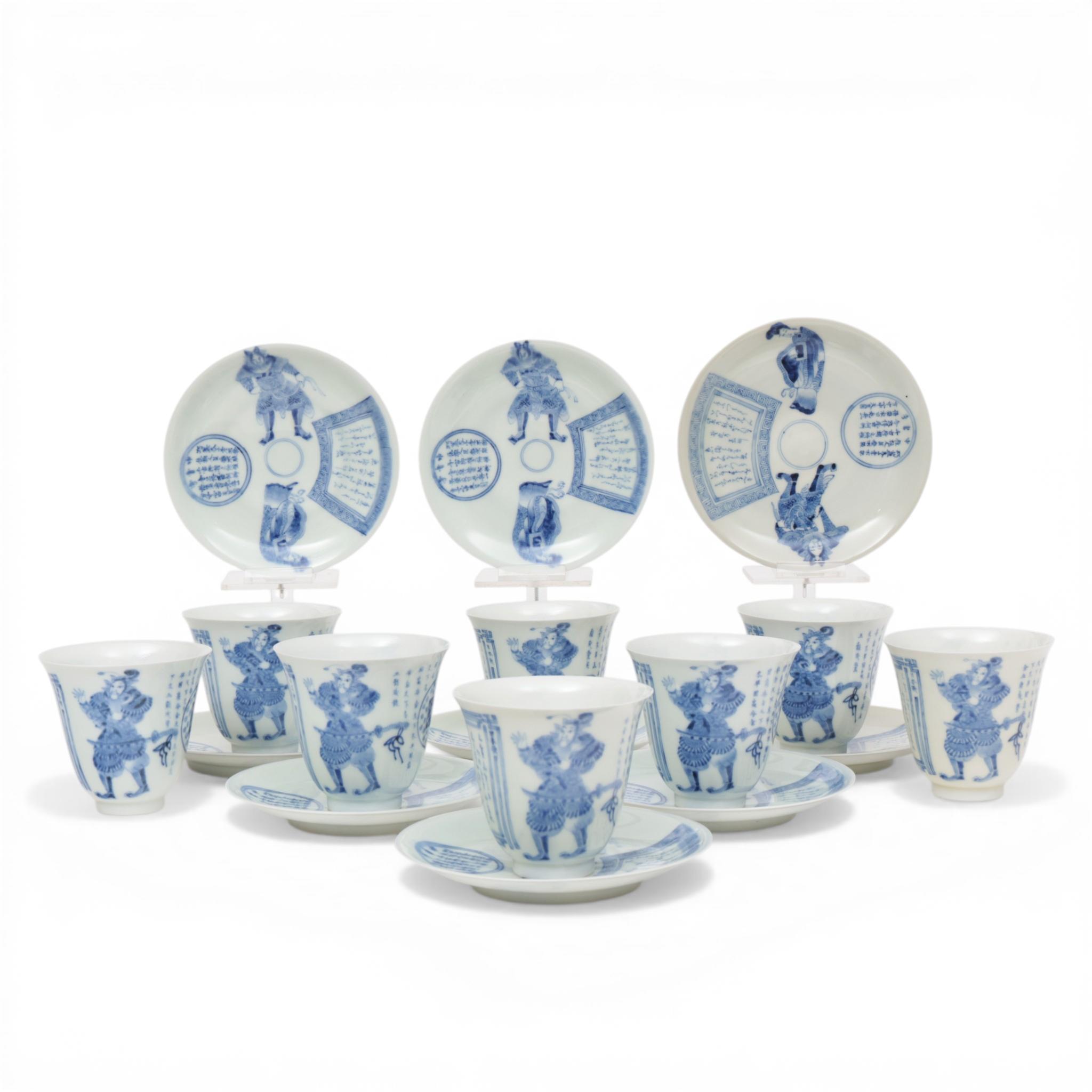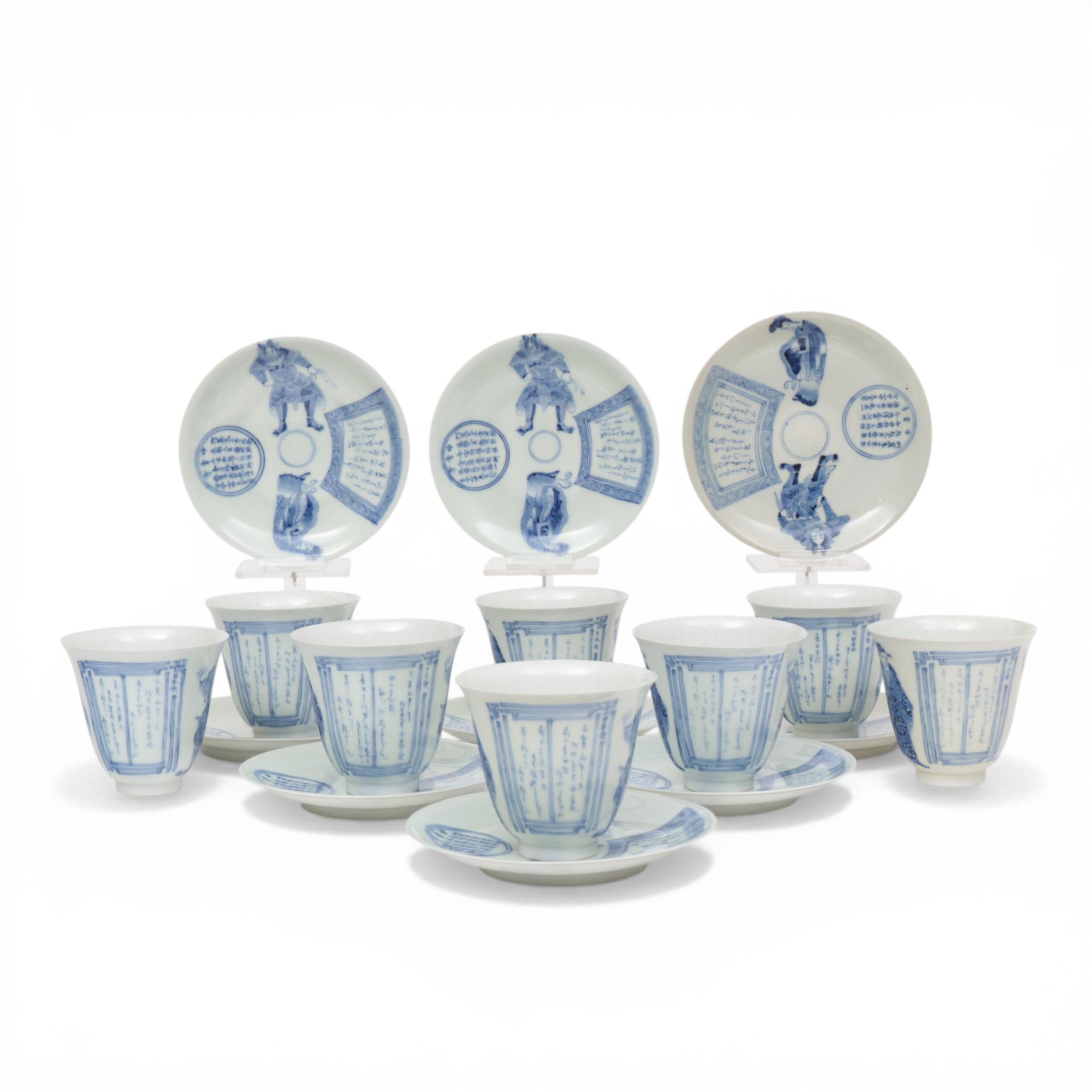 Japan, eight blue and white porcelain 'Wu Shuang Pu' cups and nine saucers, 19th century,