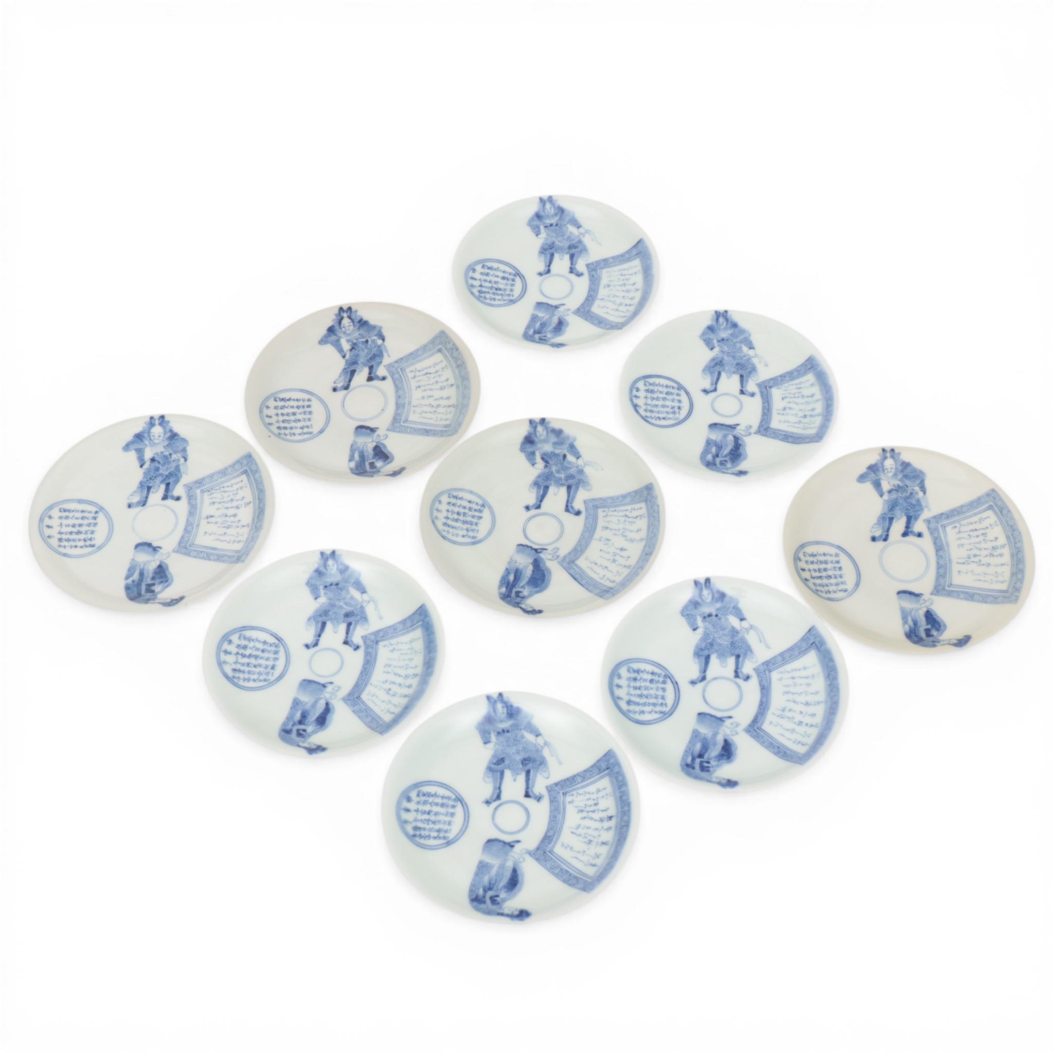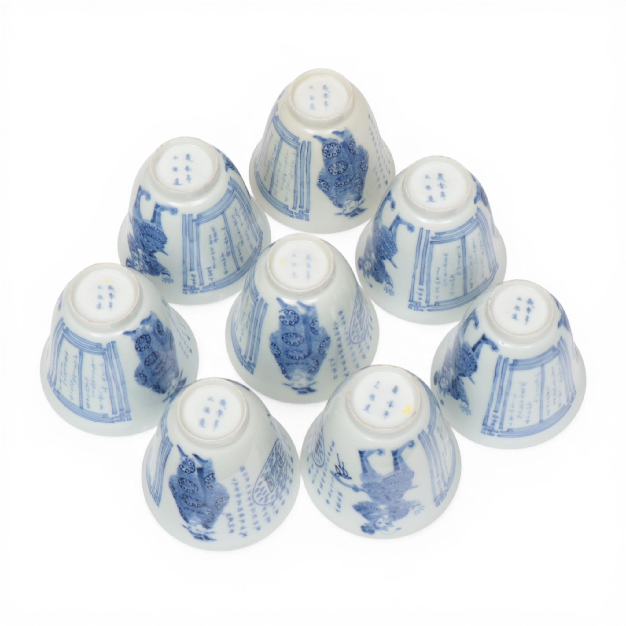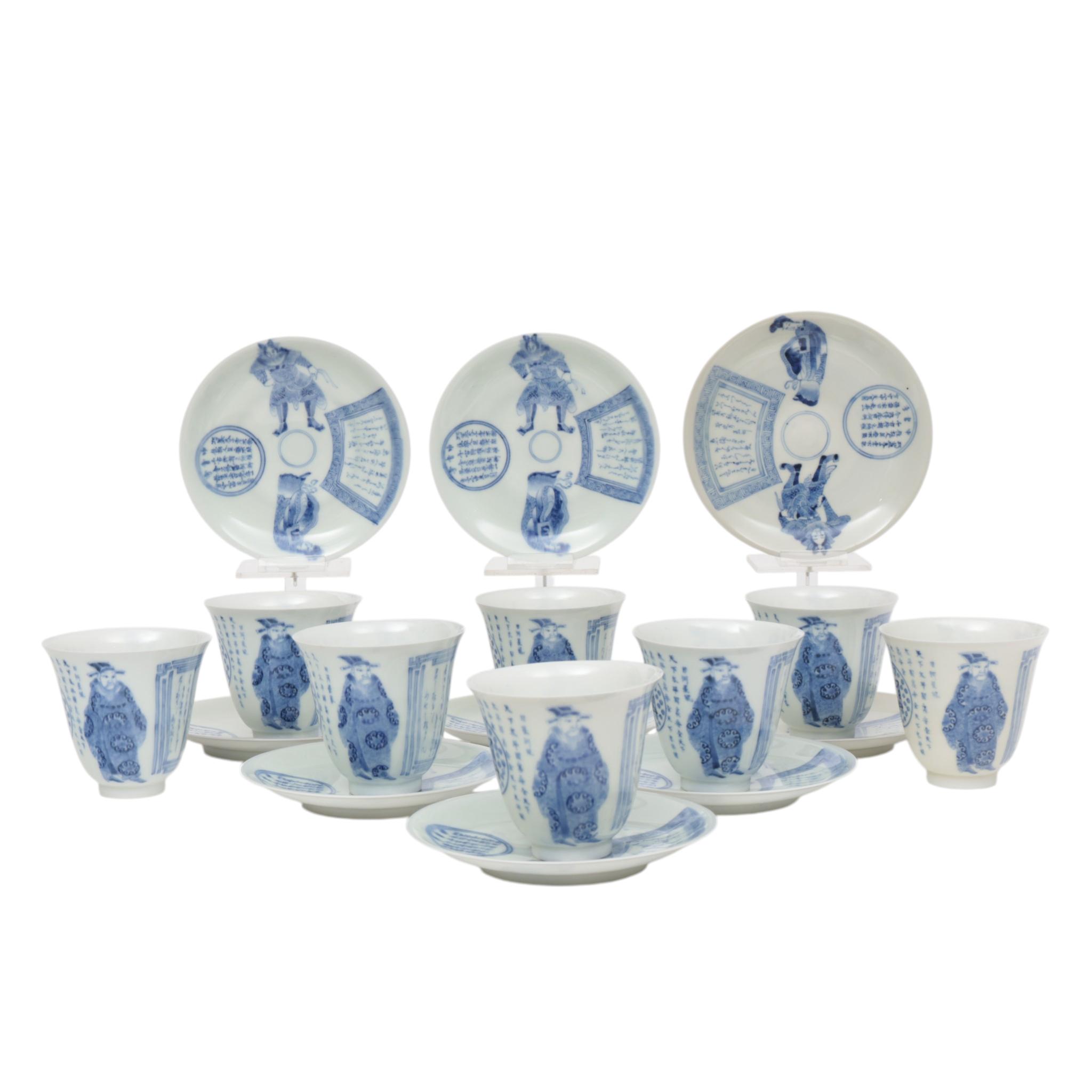 Japan, eight blue and white porcelain 'Wu Shuang Pu' cups and nine saucers, 19th century,