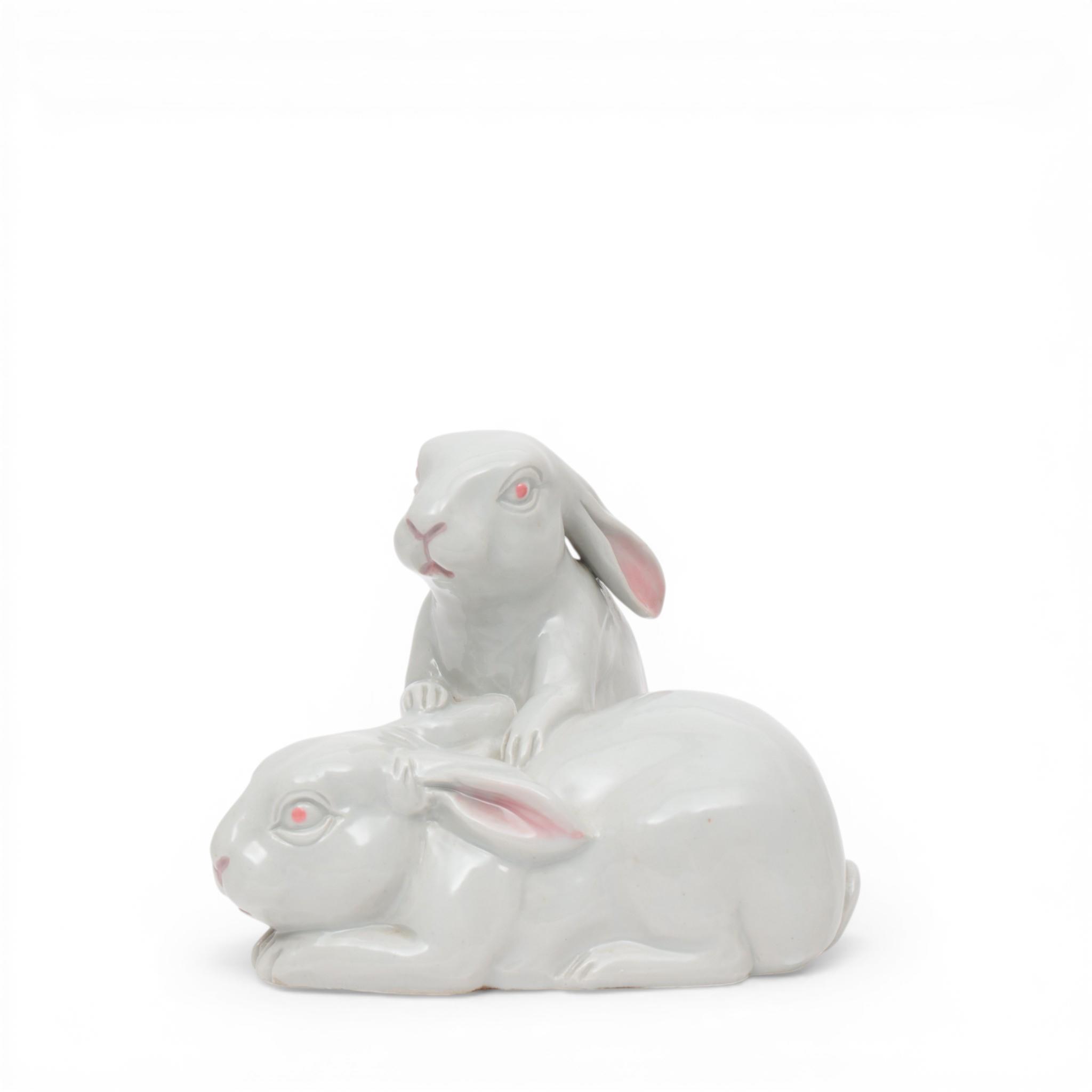 Japan, white-glazed porcelain okimono of a pair of rabbits, 19th/ 20th century,