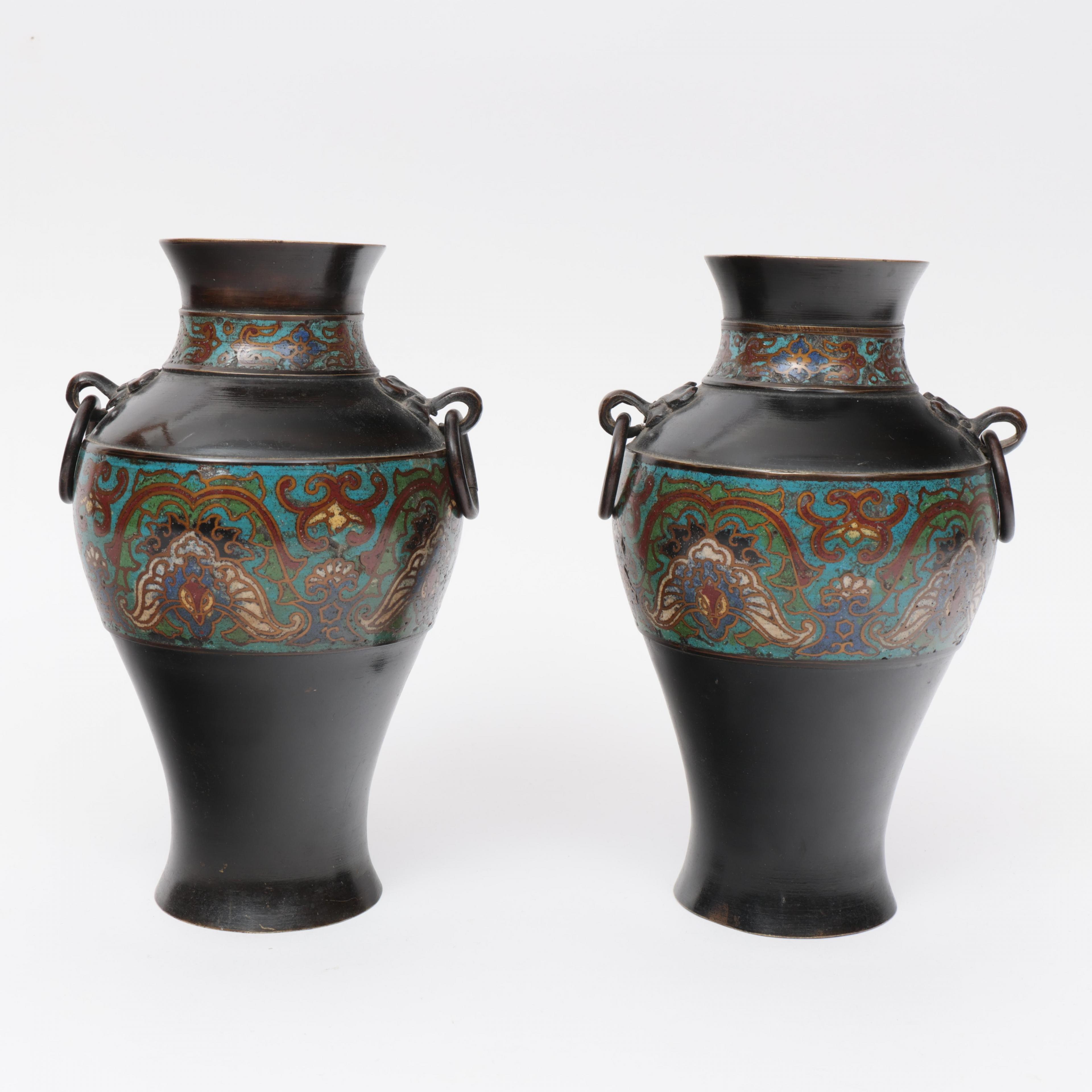 China, a pair of cloissoné-inlaid bronze vases, 20th century,