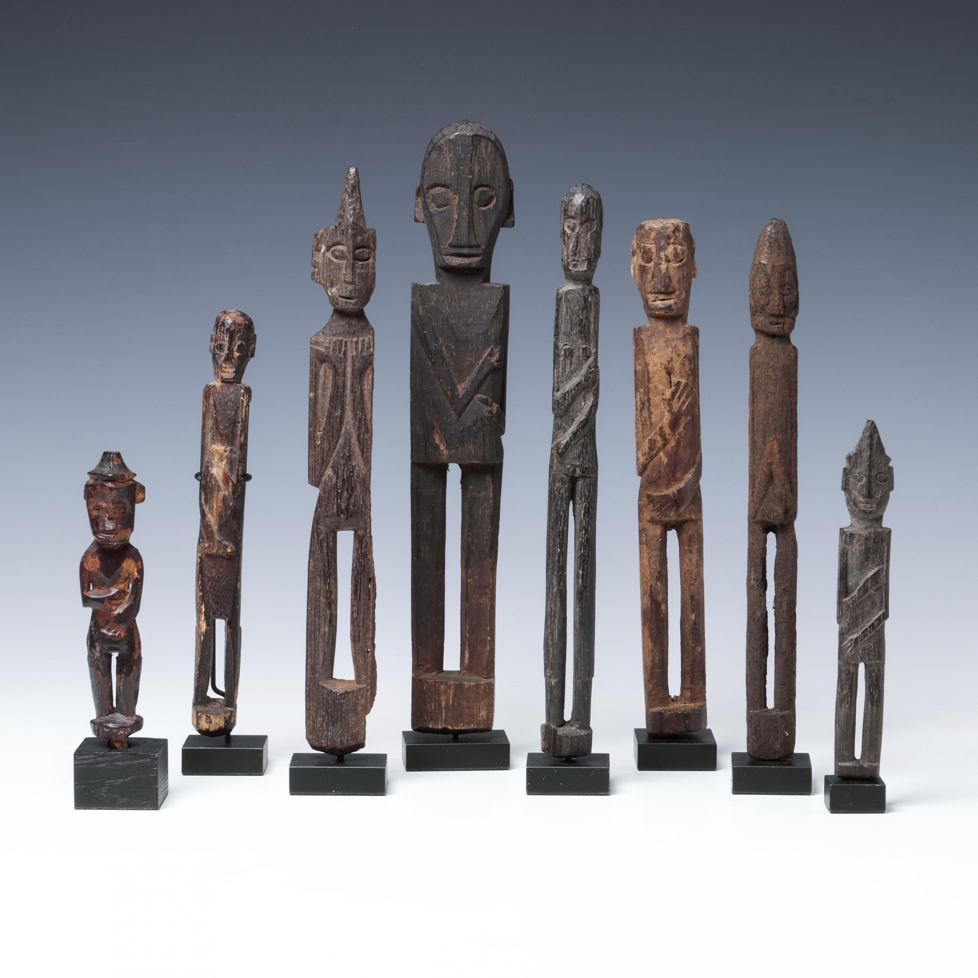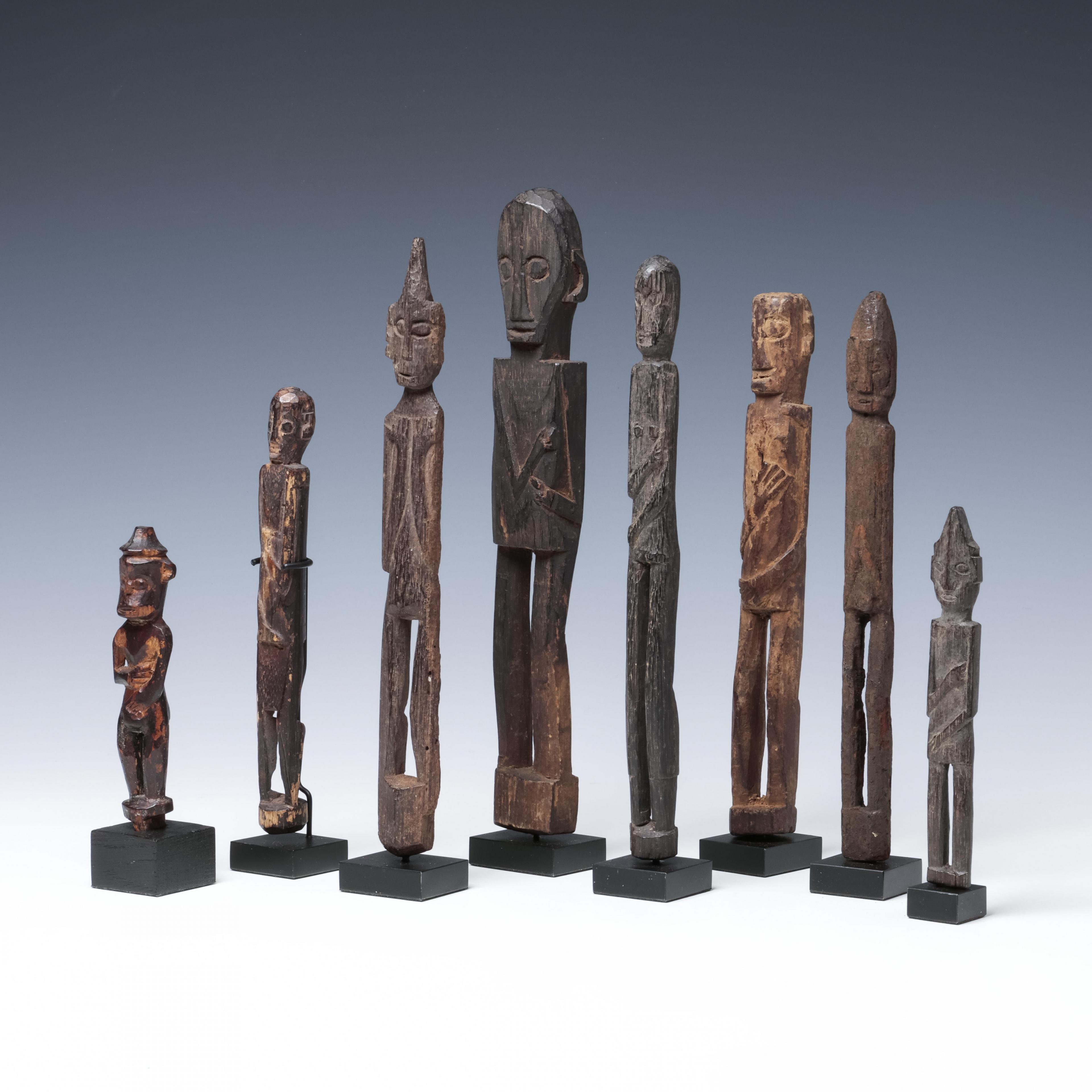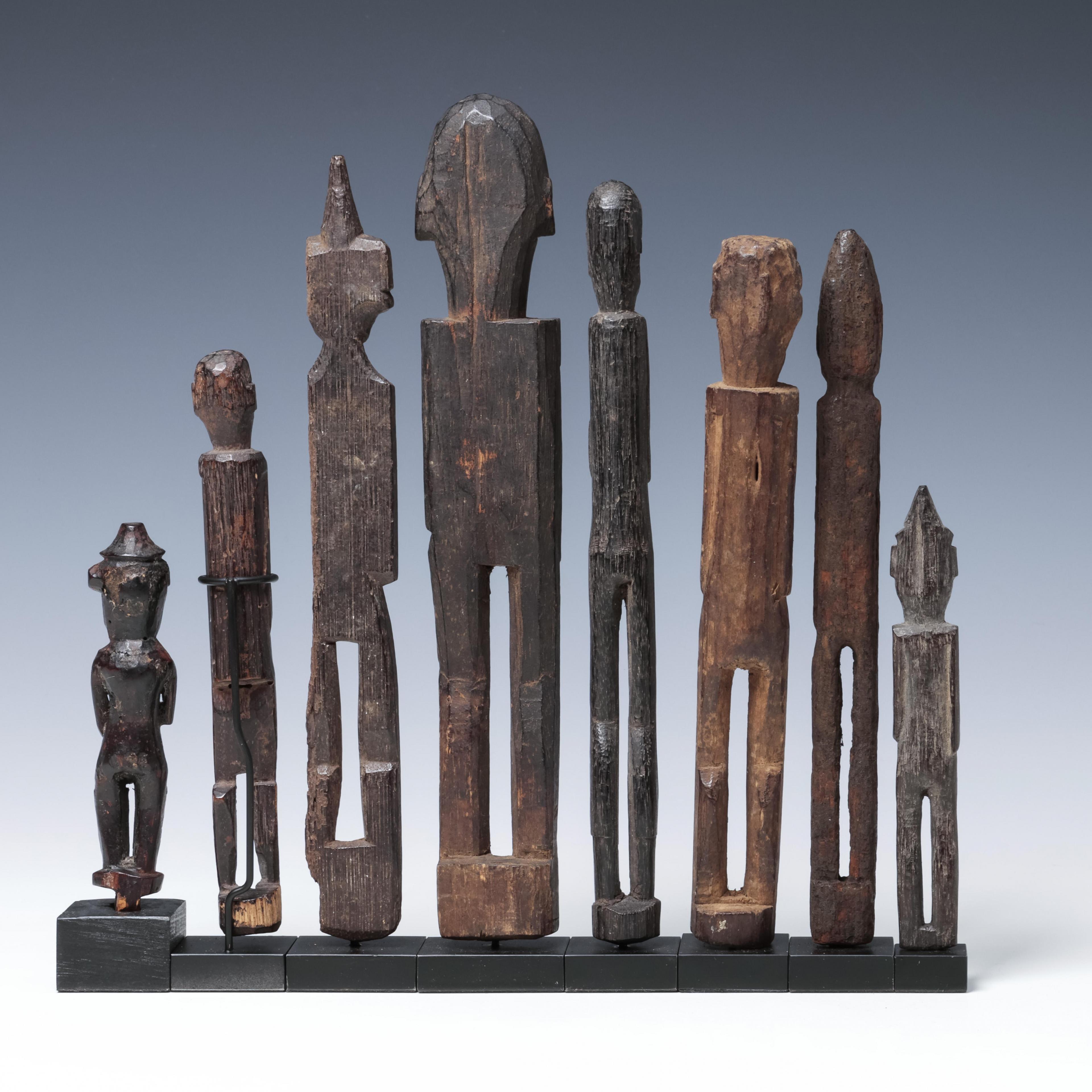 Borneo, East Kalimantan, eight standing Dayak amulet figures.