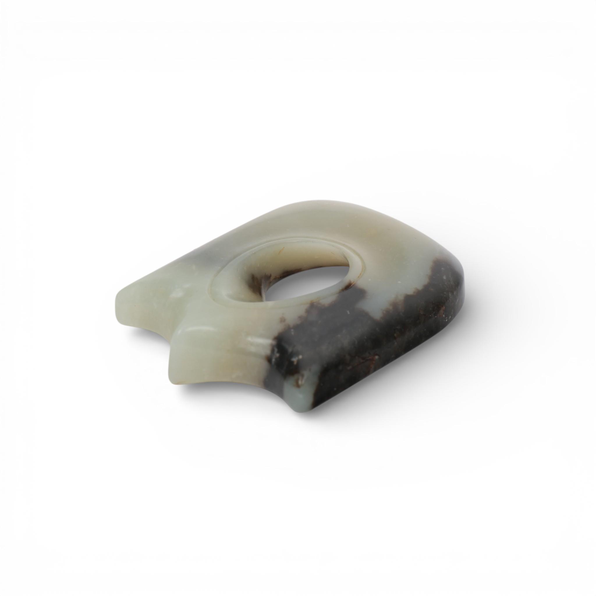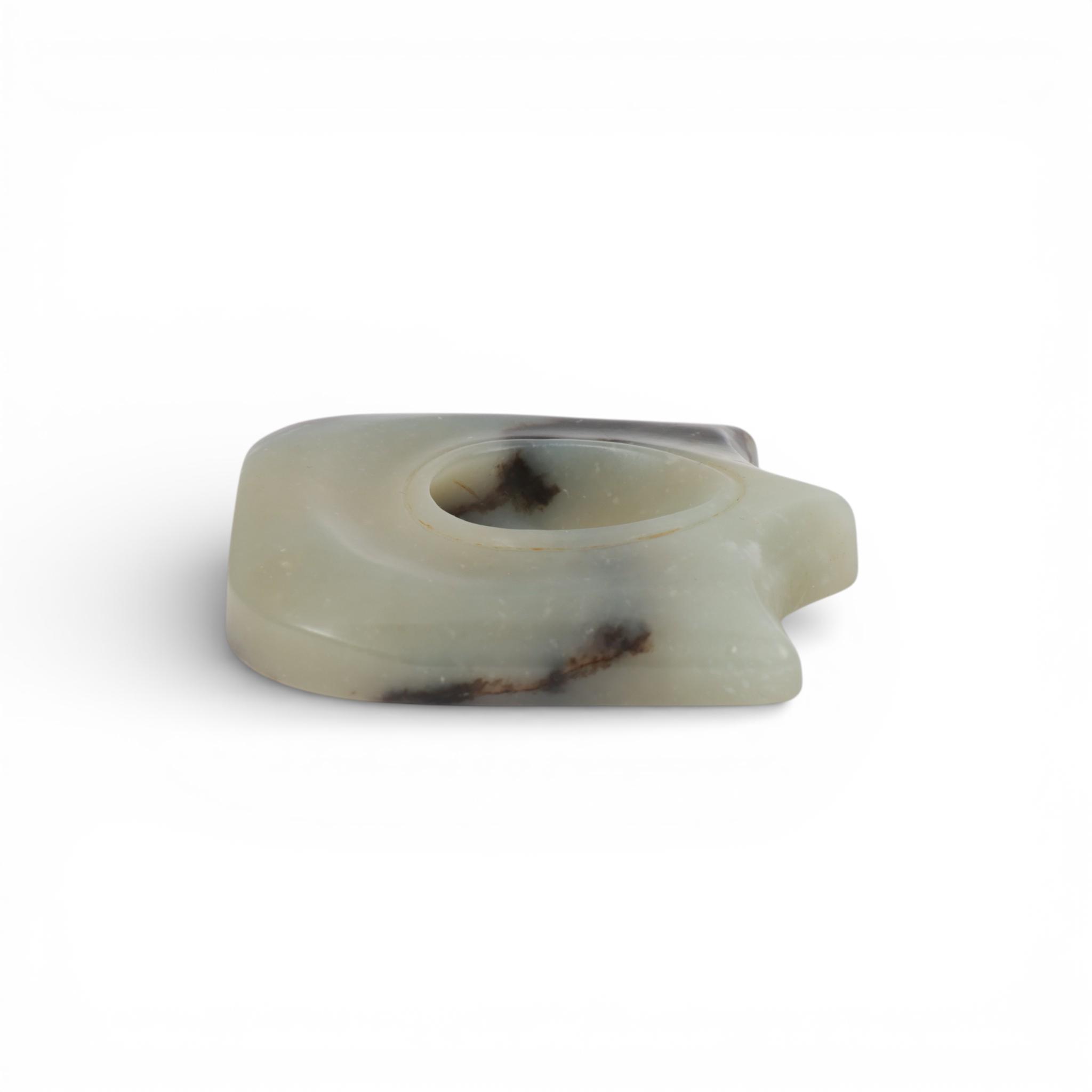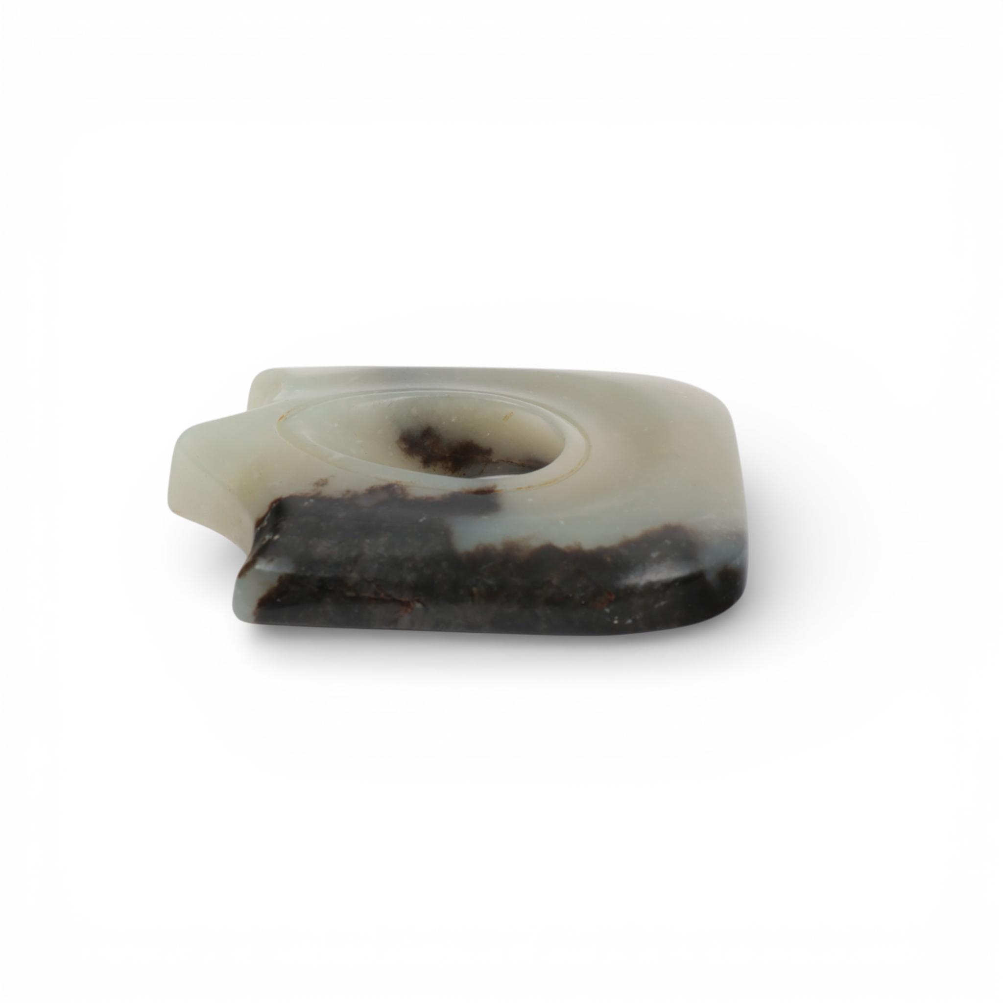 China, a celadon and black jade 'chicken heart' pendant, Sung dynasty or later,