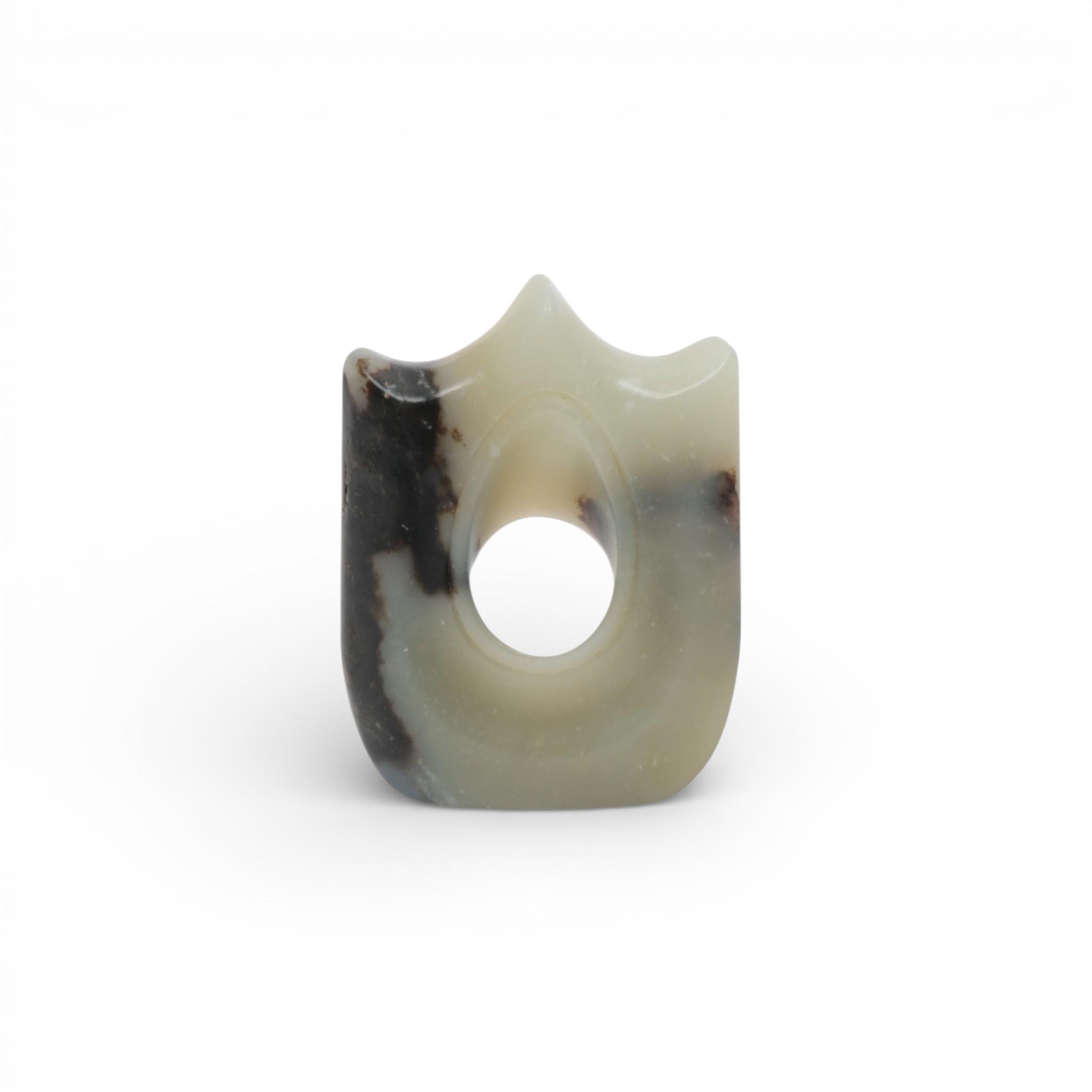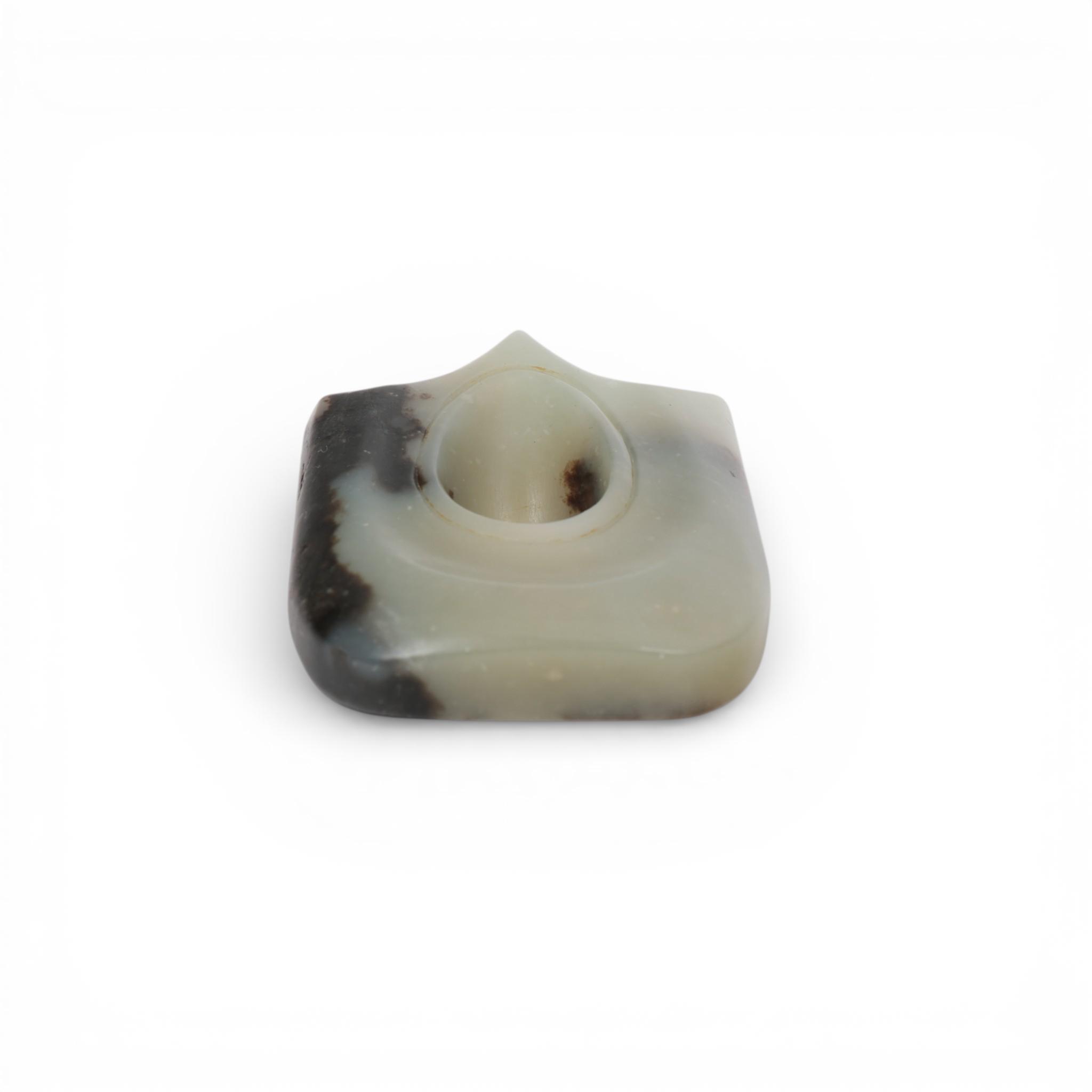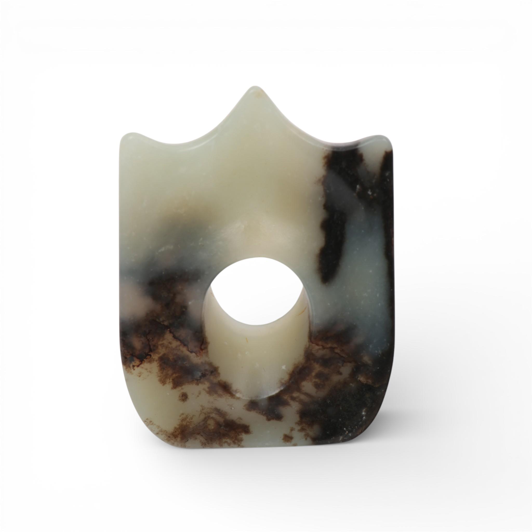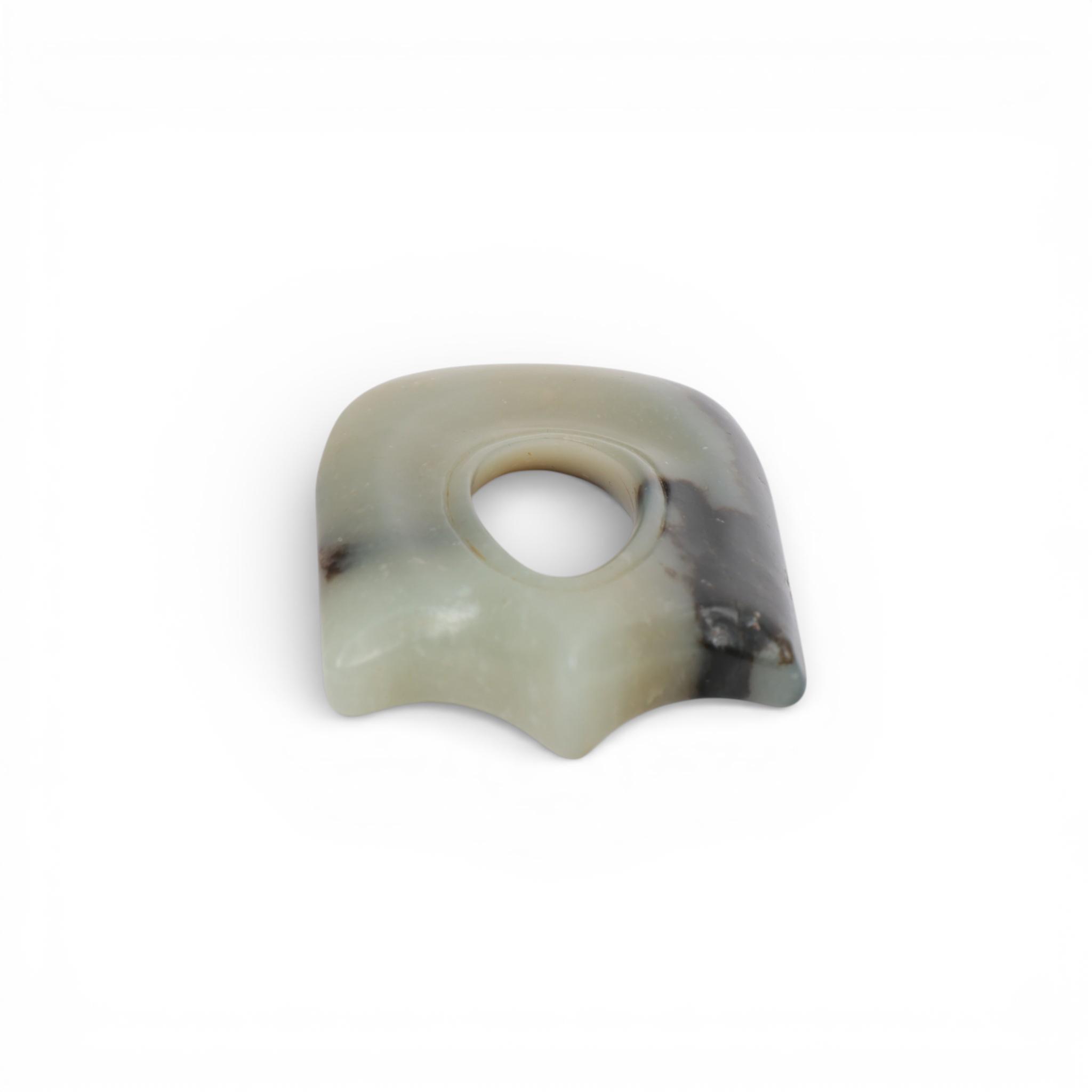China, a celadon and black jade 'chicken heart' pendant, Sung dynasty or later,
