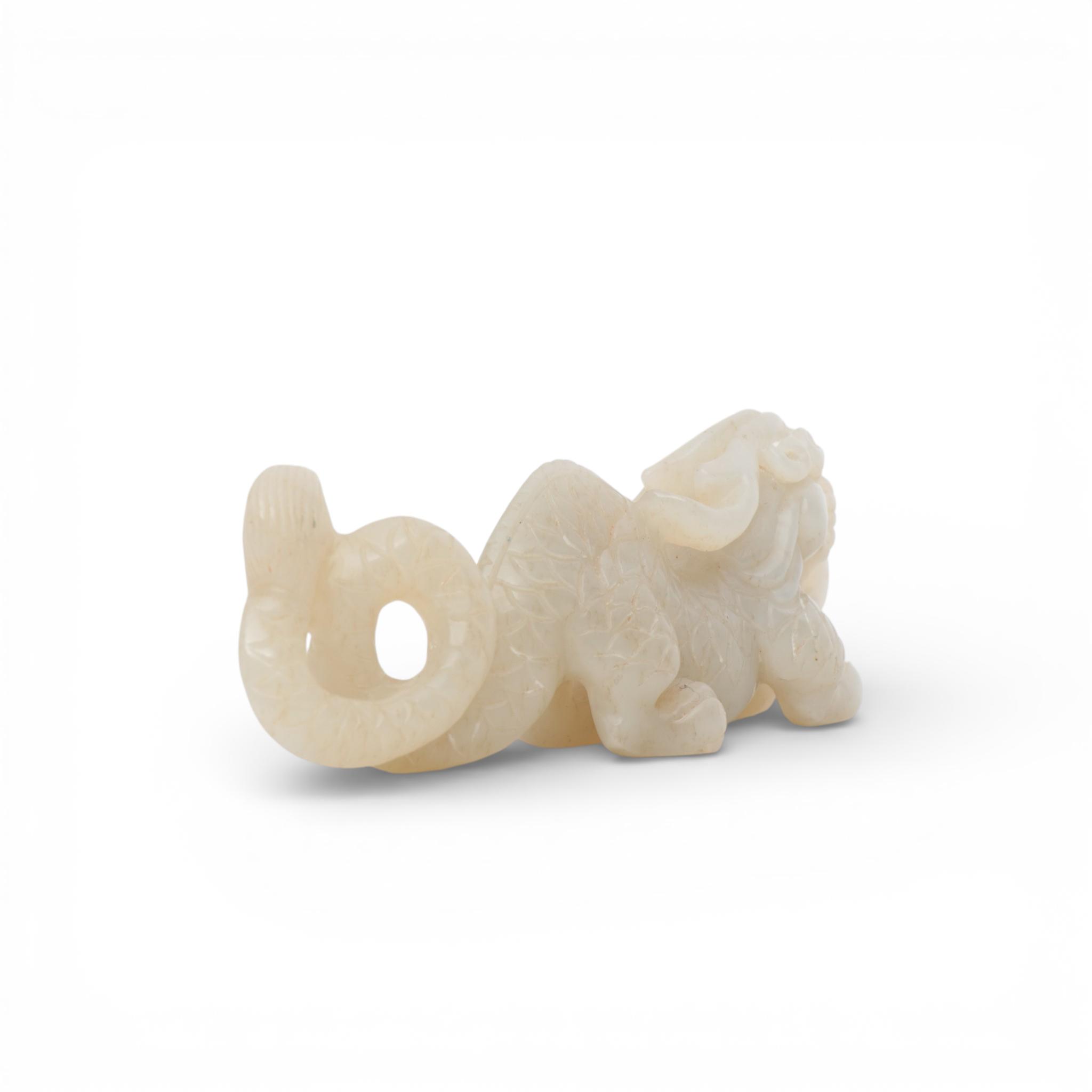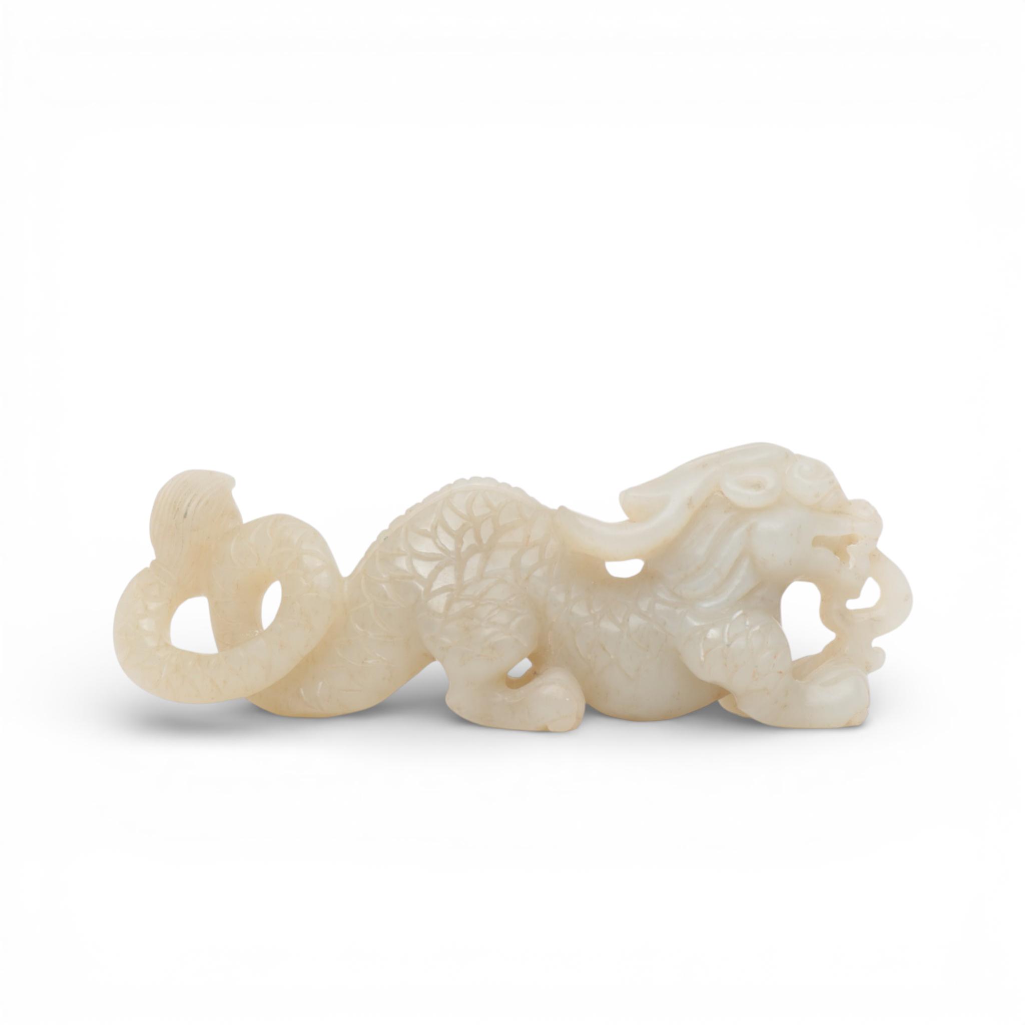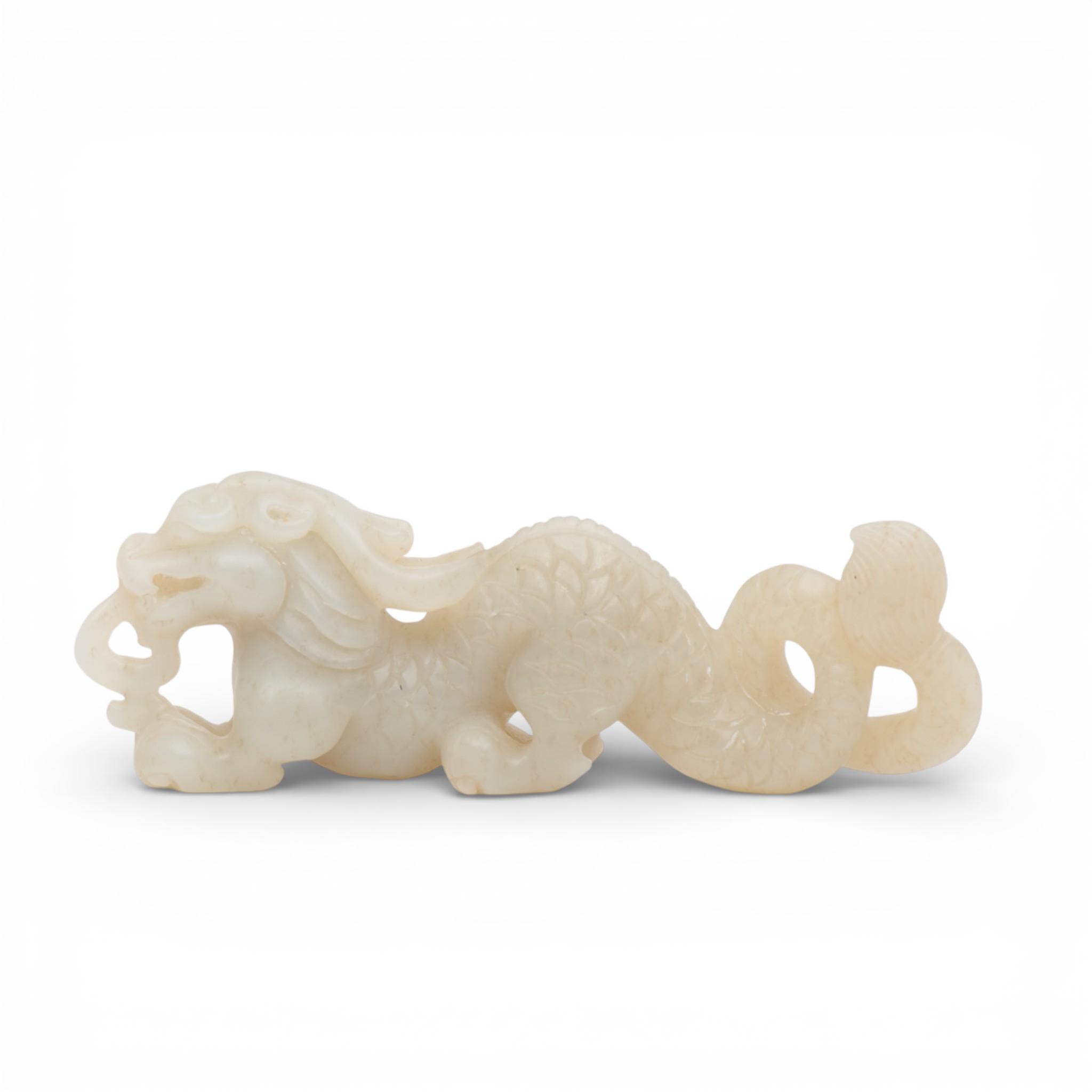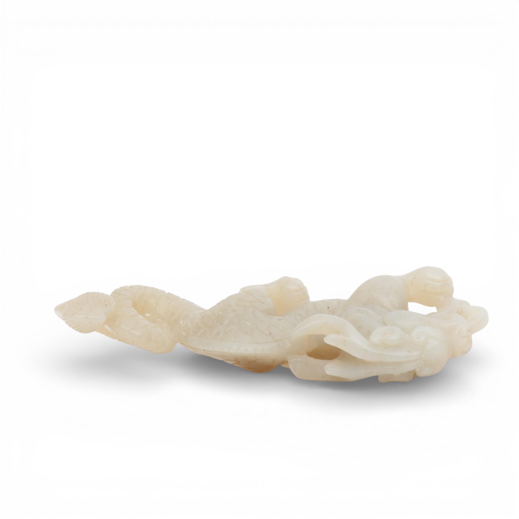 China, a pale jade brushrest shaped as a dragon, probably late Ming- early Qing dynasty,