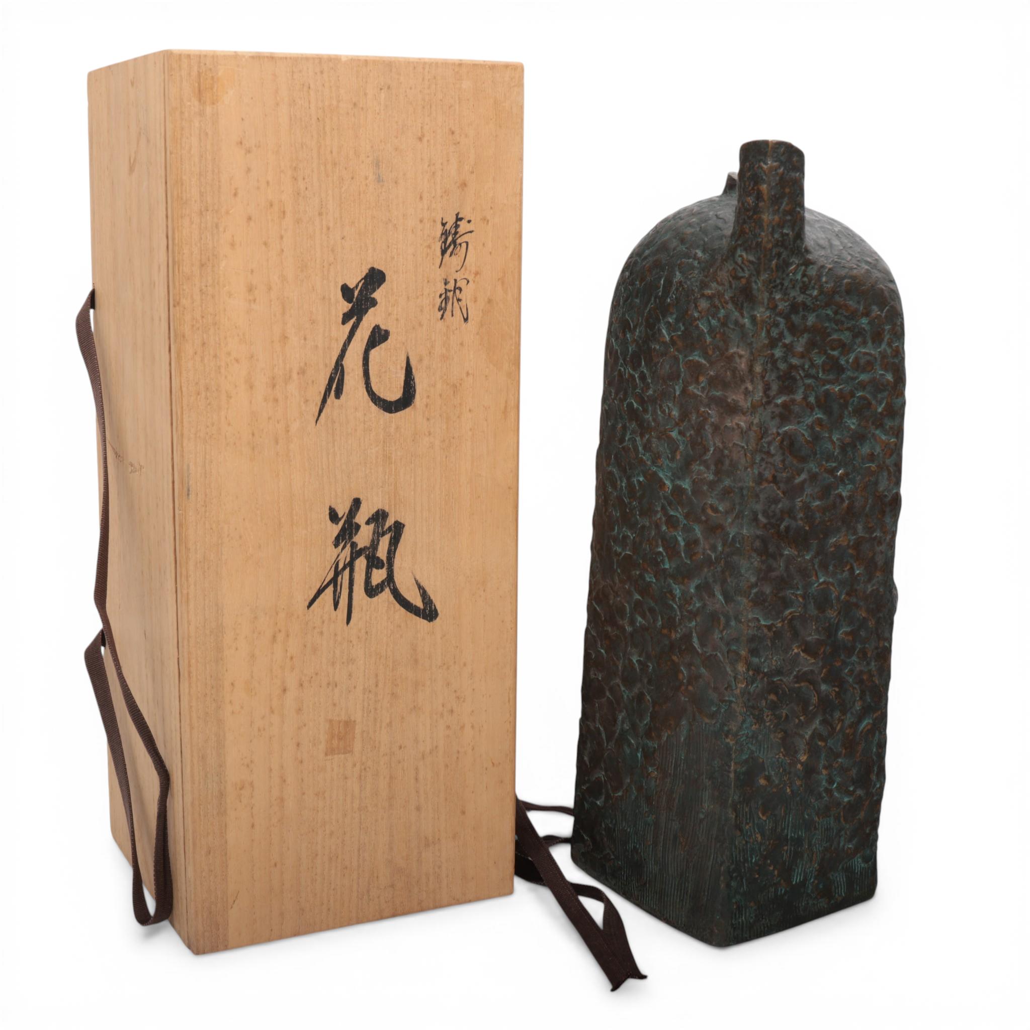 of irregular rectangular form with two asymmetrical openings at the top, with original wood box