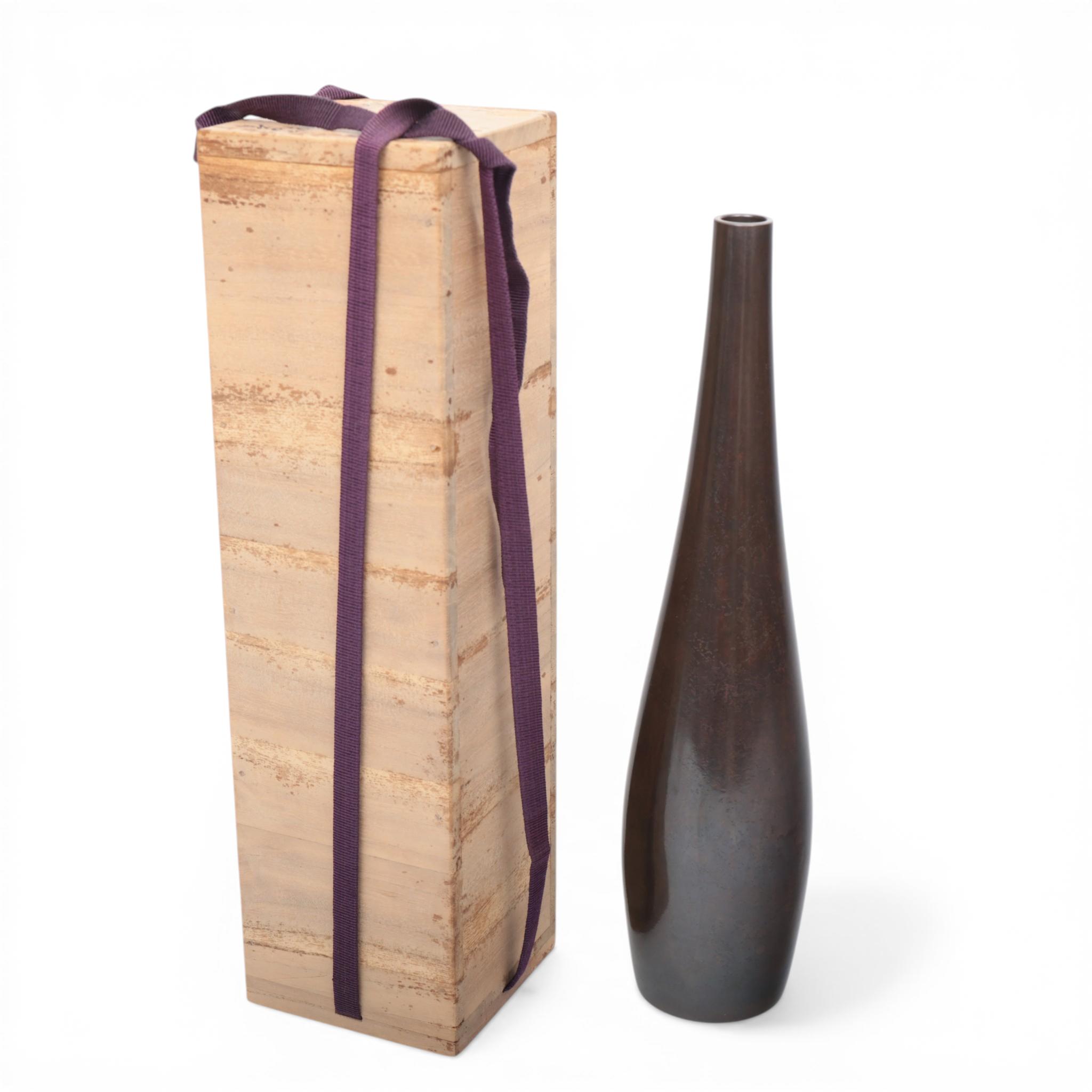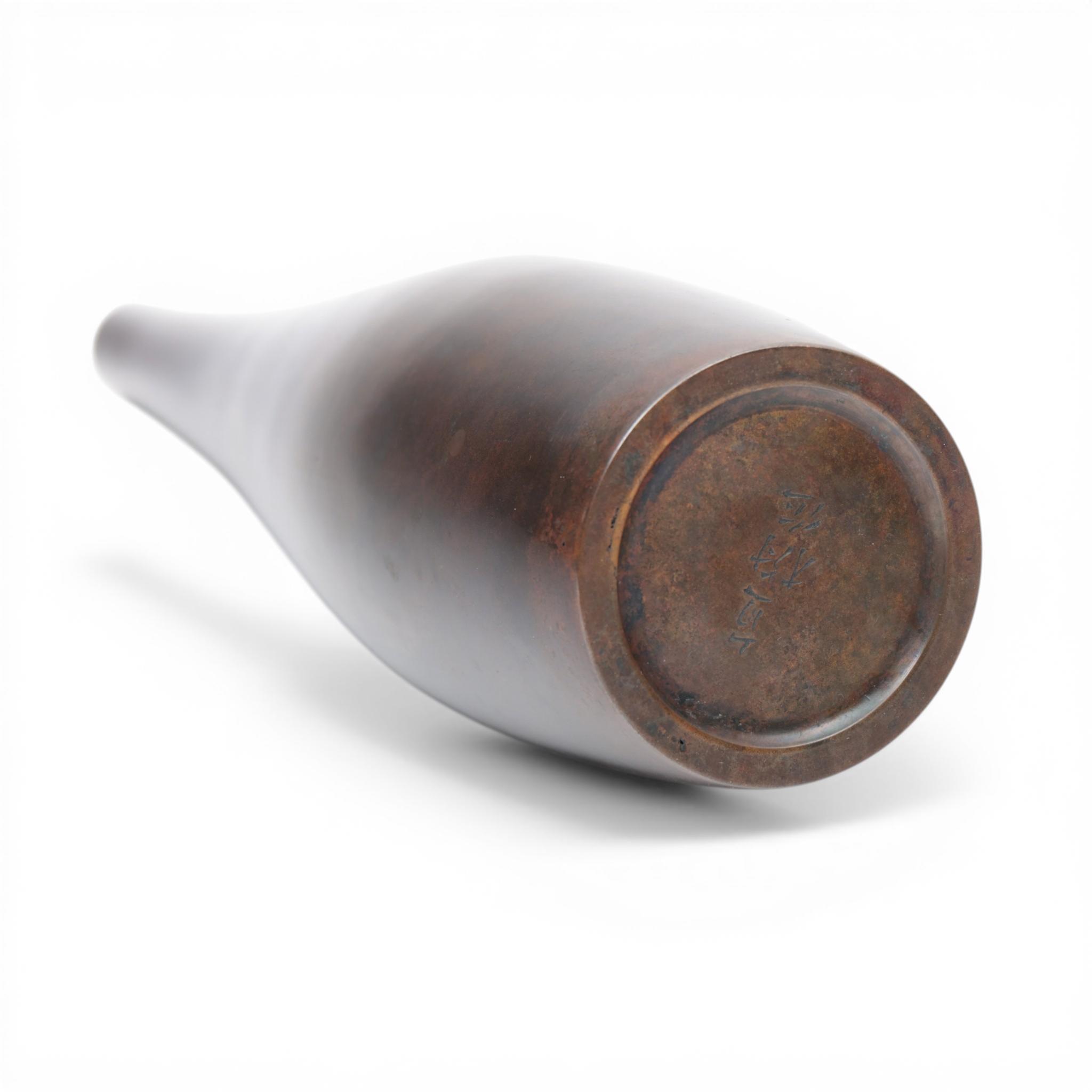 Japan, sahari bronze single flower vase, signed Hara Naoki (1906-1994),