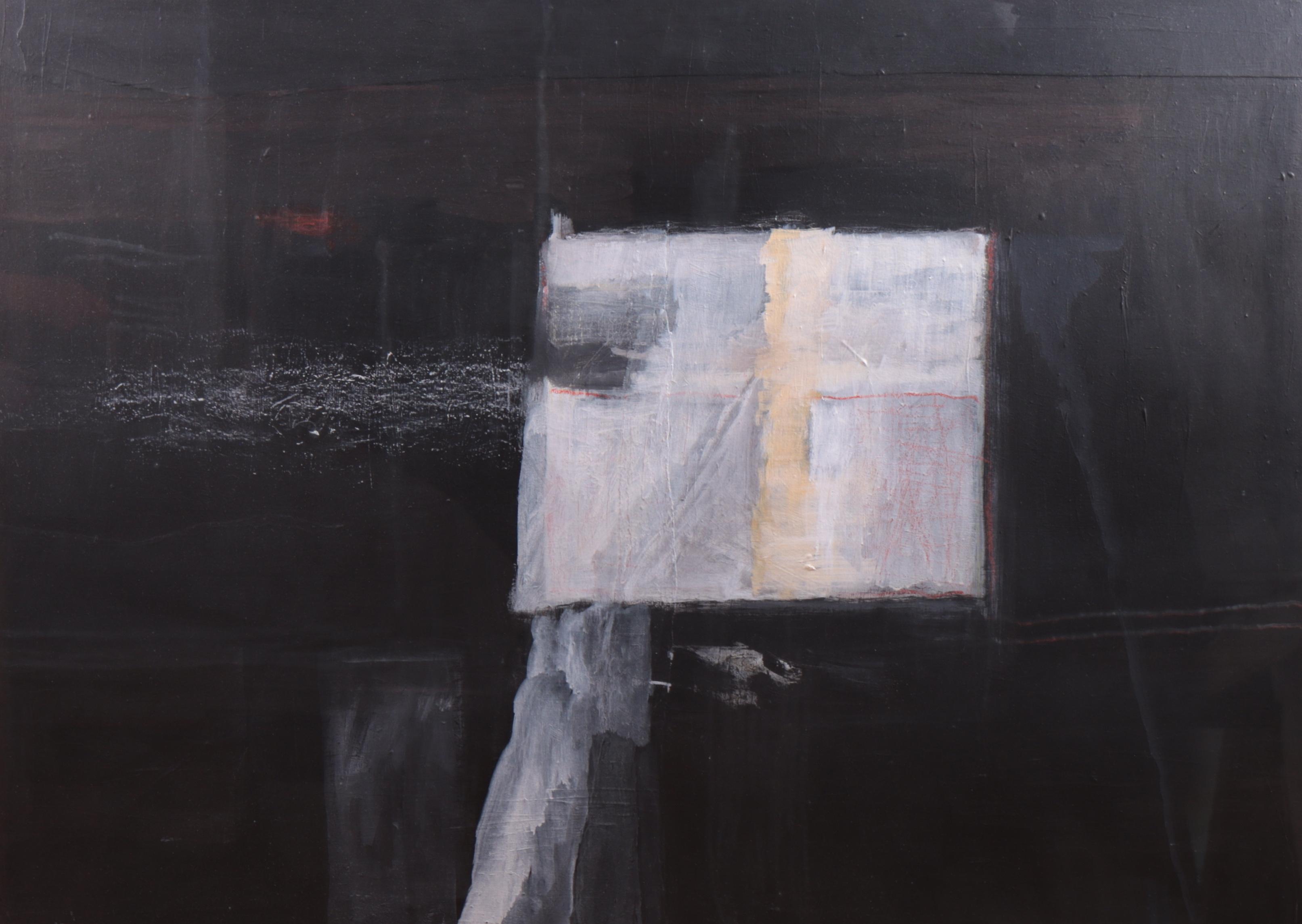 gemengde techniek op board, gesigneerd linksonder, gedateerd '87, 80 x 111 cm.