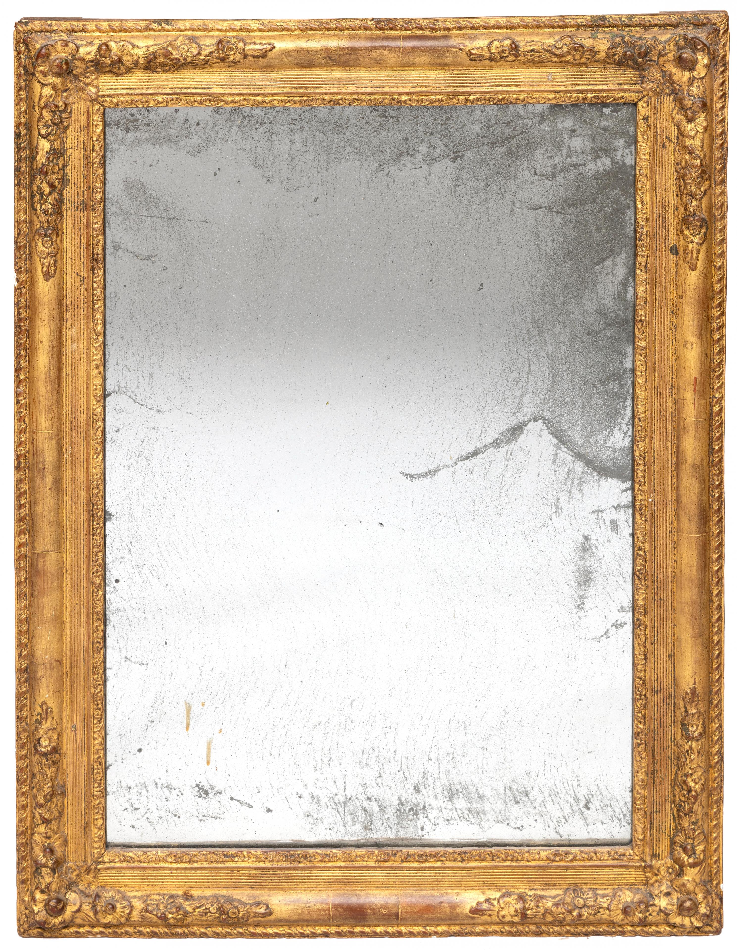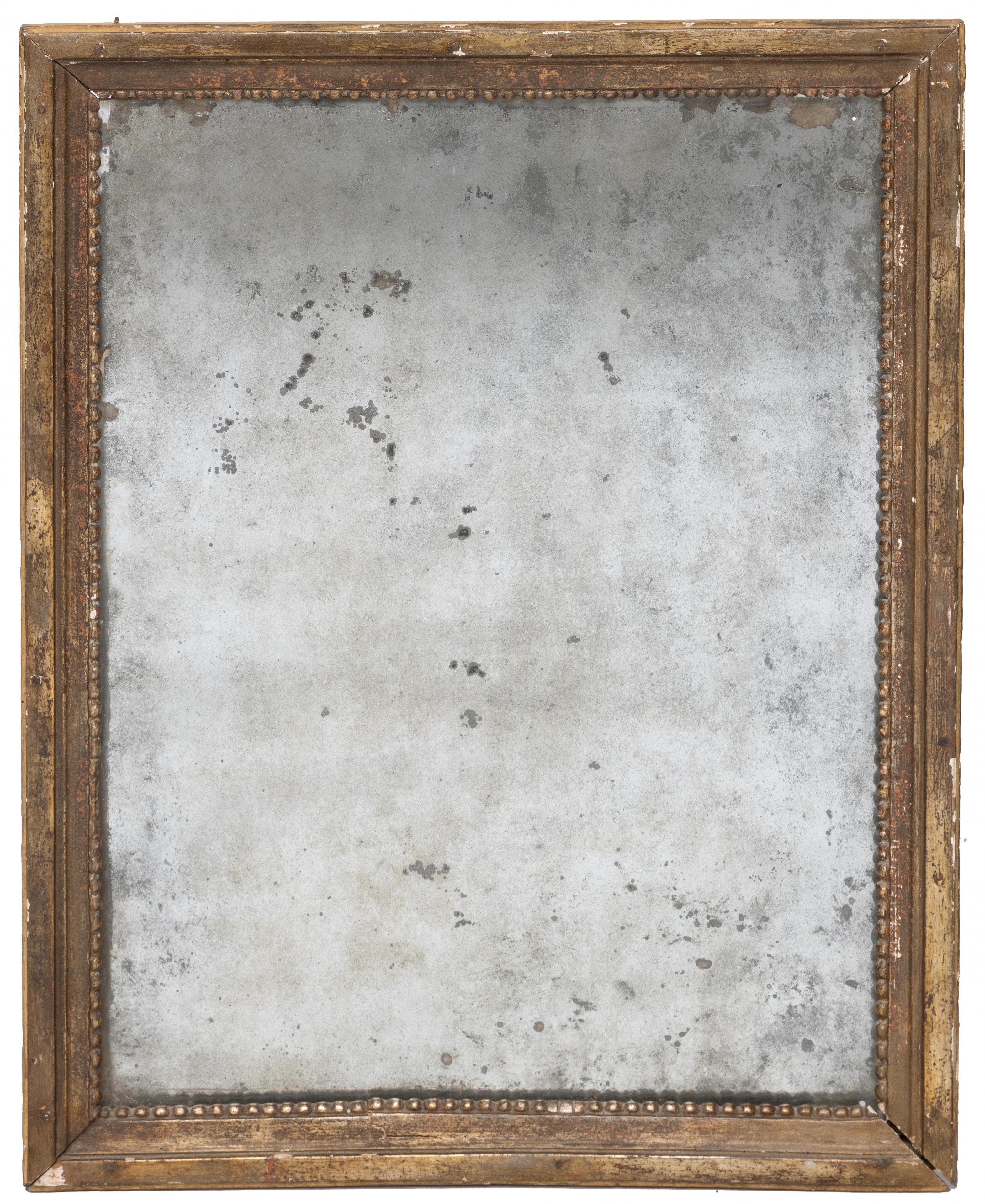 Drie antieke rechthoekige spiegels in houten lijst, 19e eeuw.