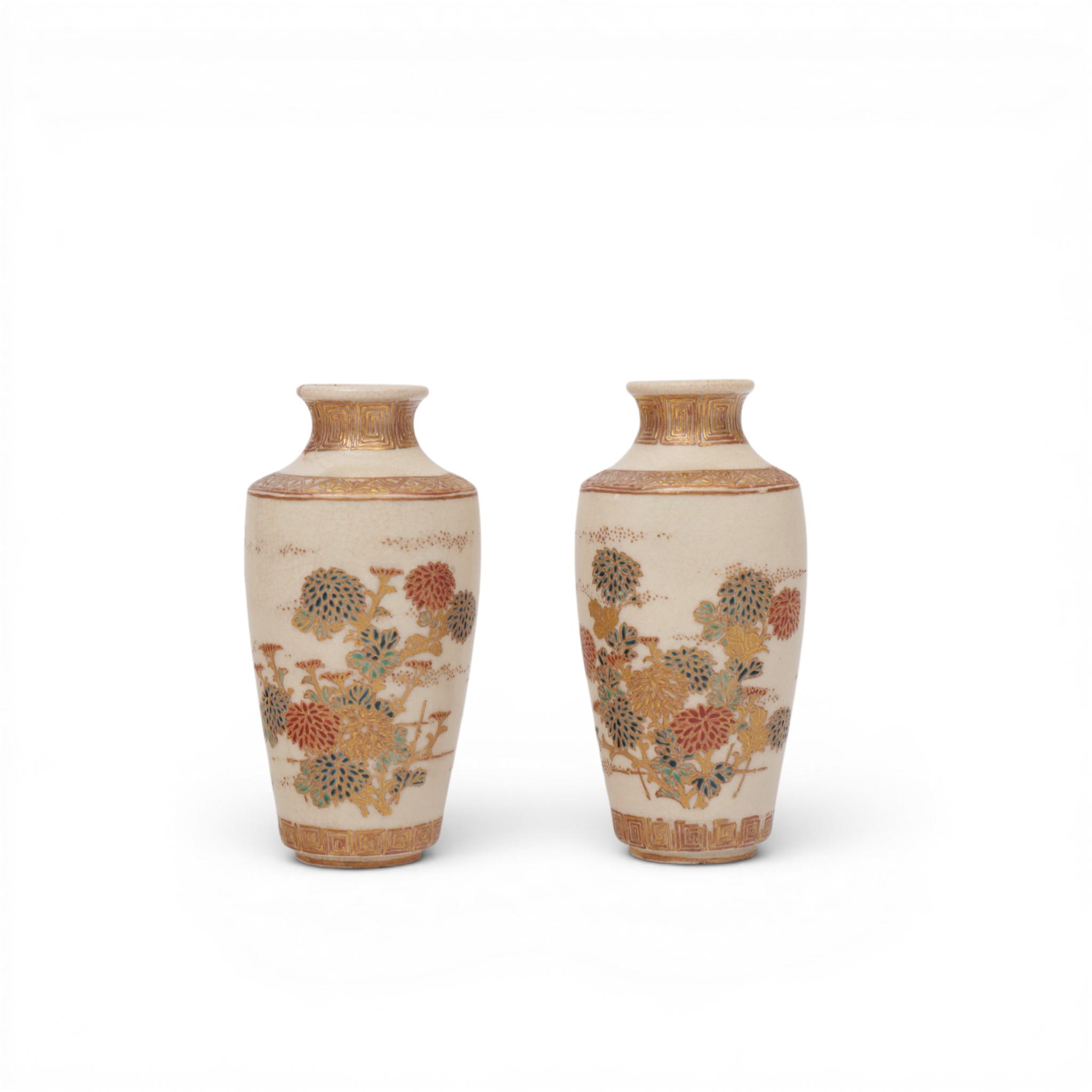 Japan, a pair of miniature porcelain Satsuma vases, signed Kinkosan, 19th century,