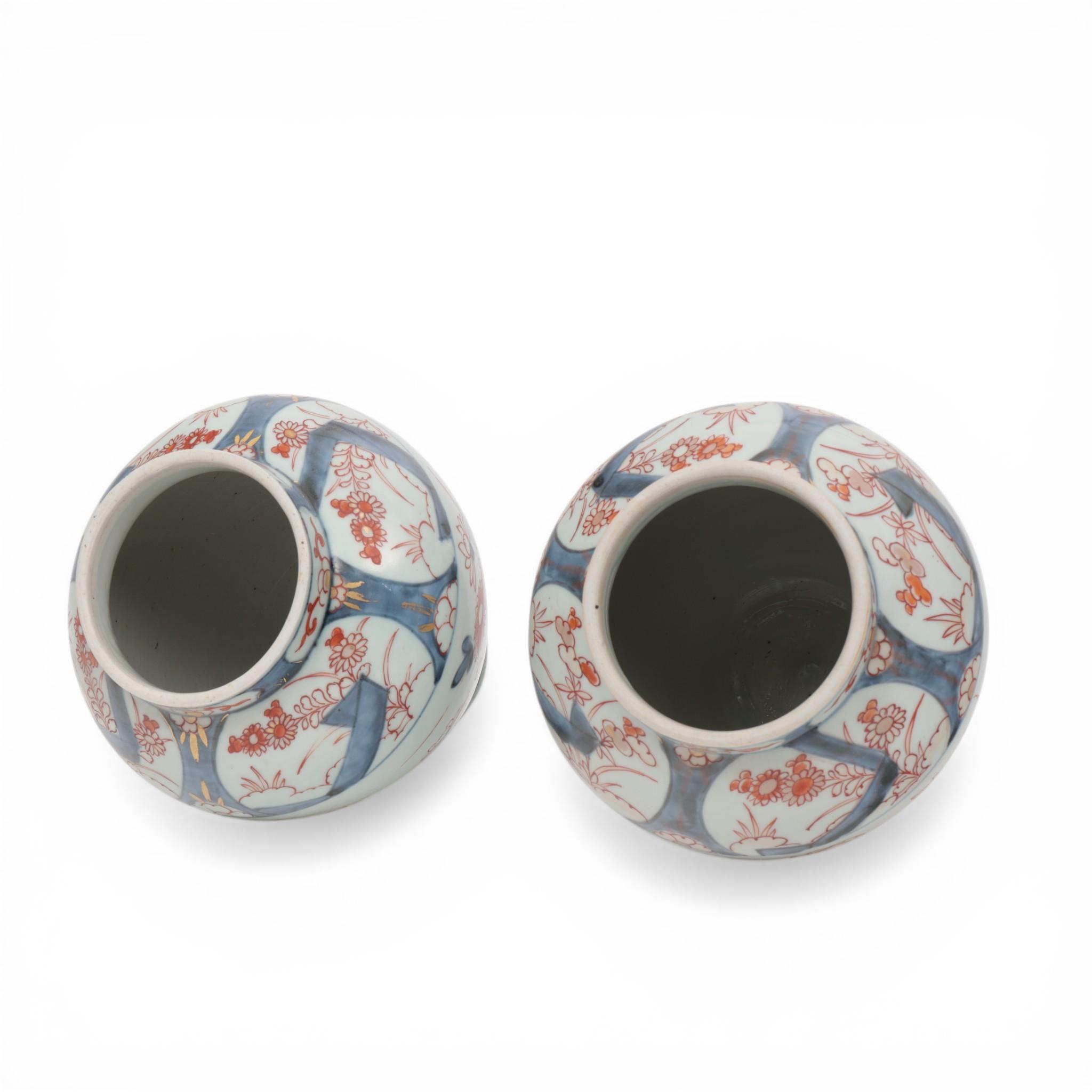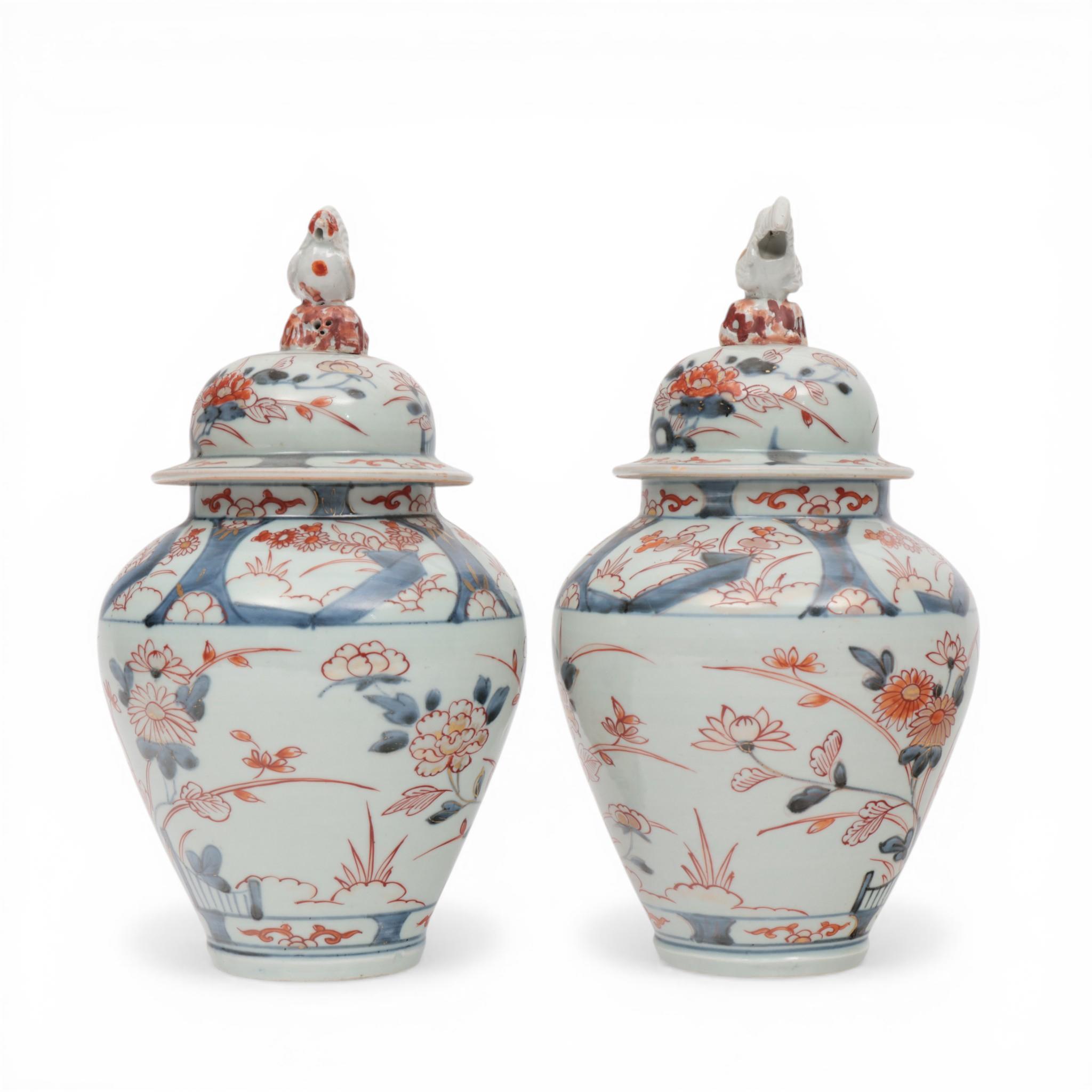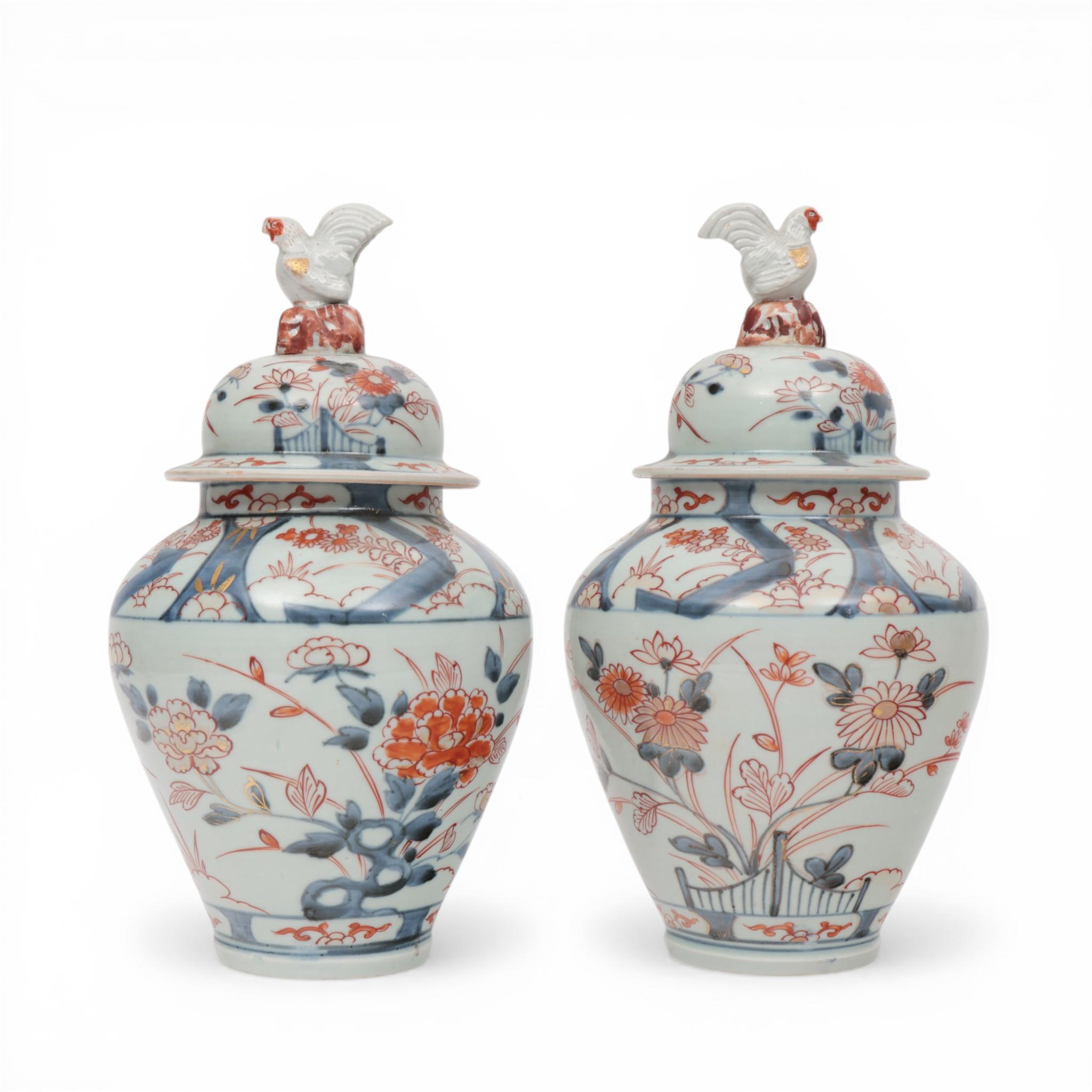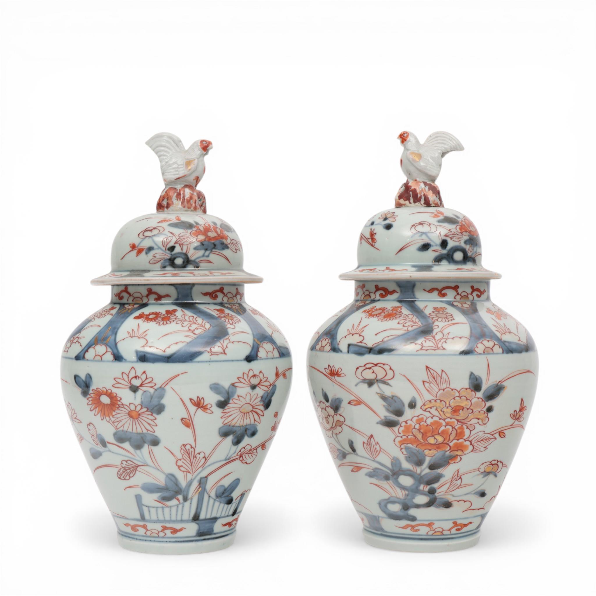 Japan, a pair of Imari porcelain baluster vases and covers, Edo period, late 17th/ 18th century,