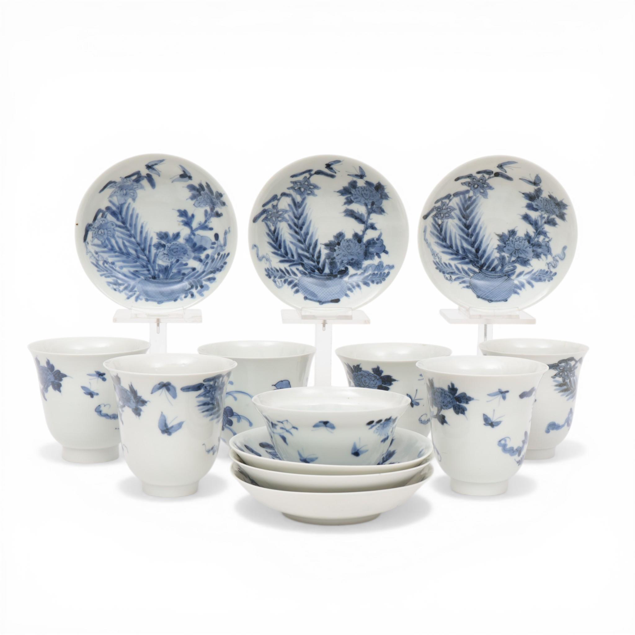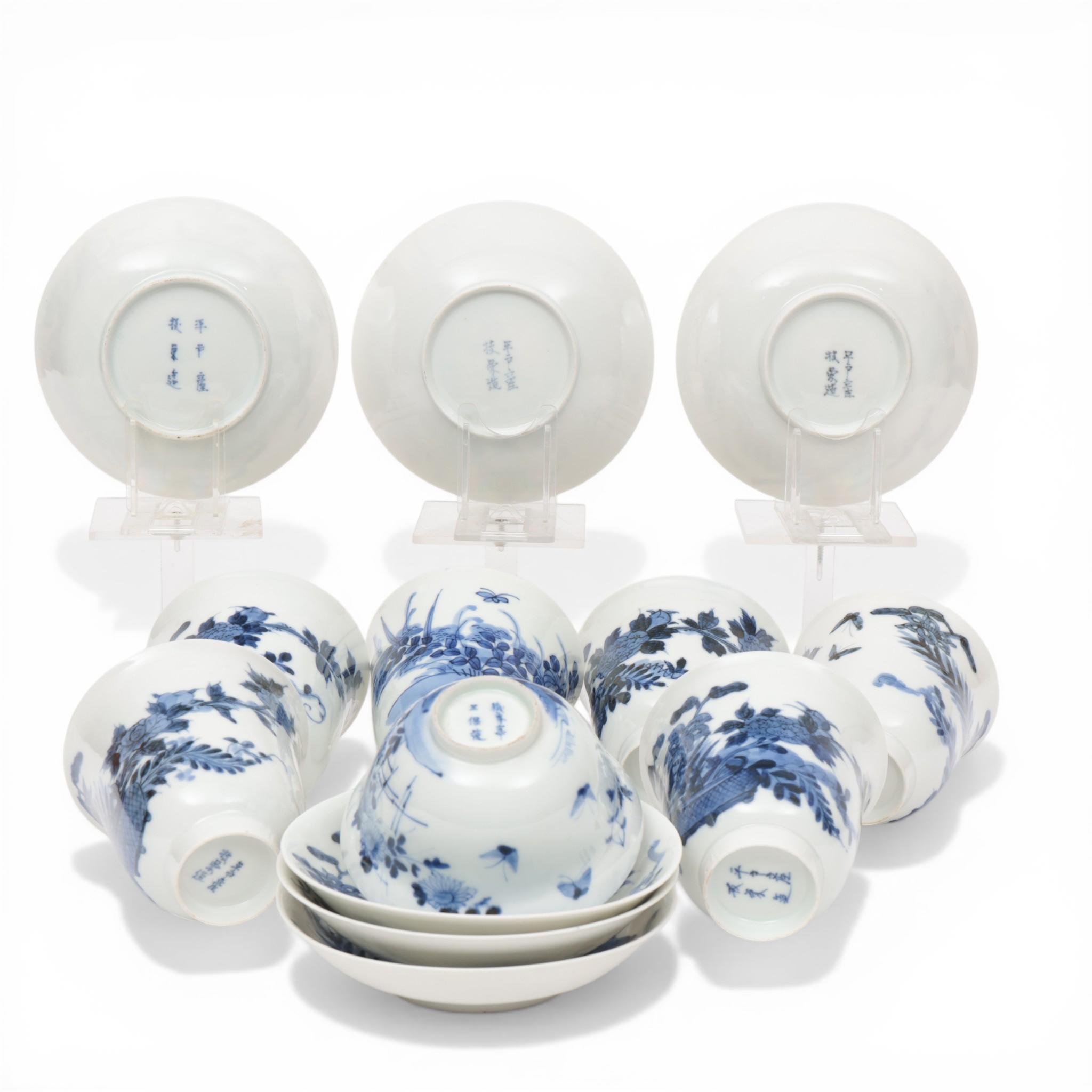 Japan, a set of six blue and white porcelain cups and saucers, 19th/ 20th century,