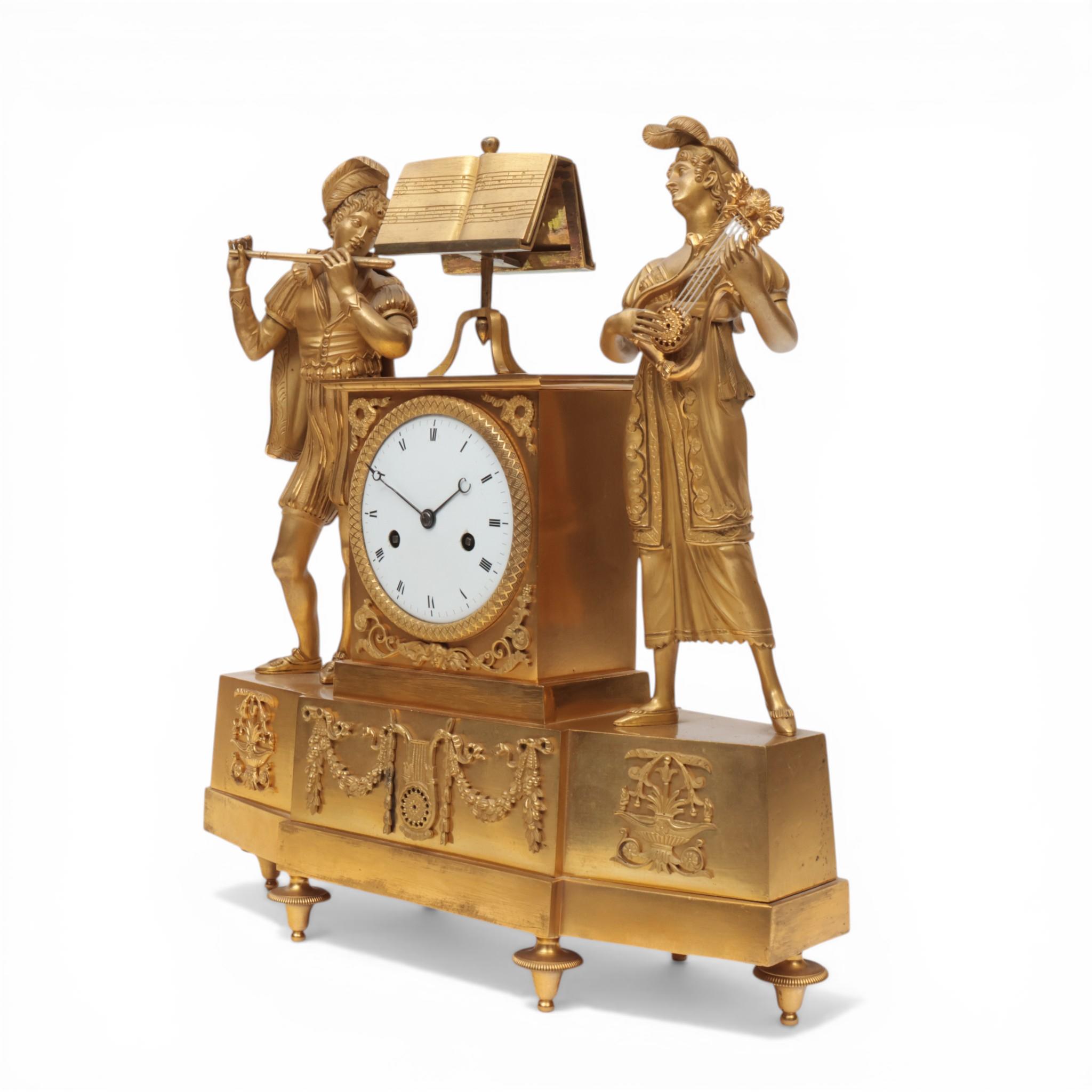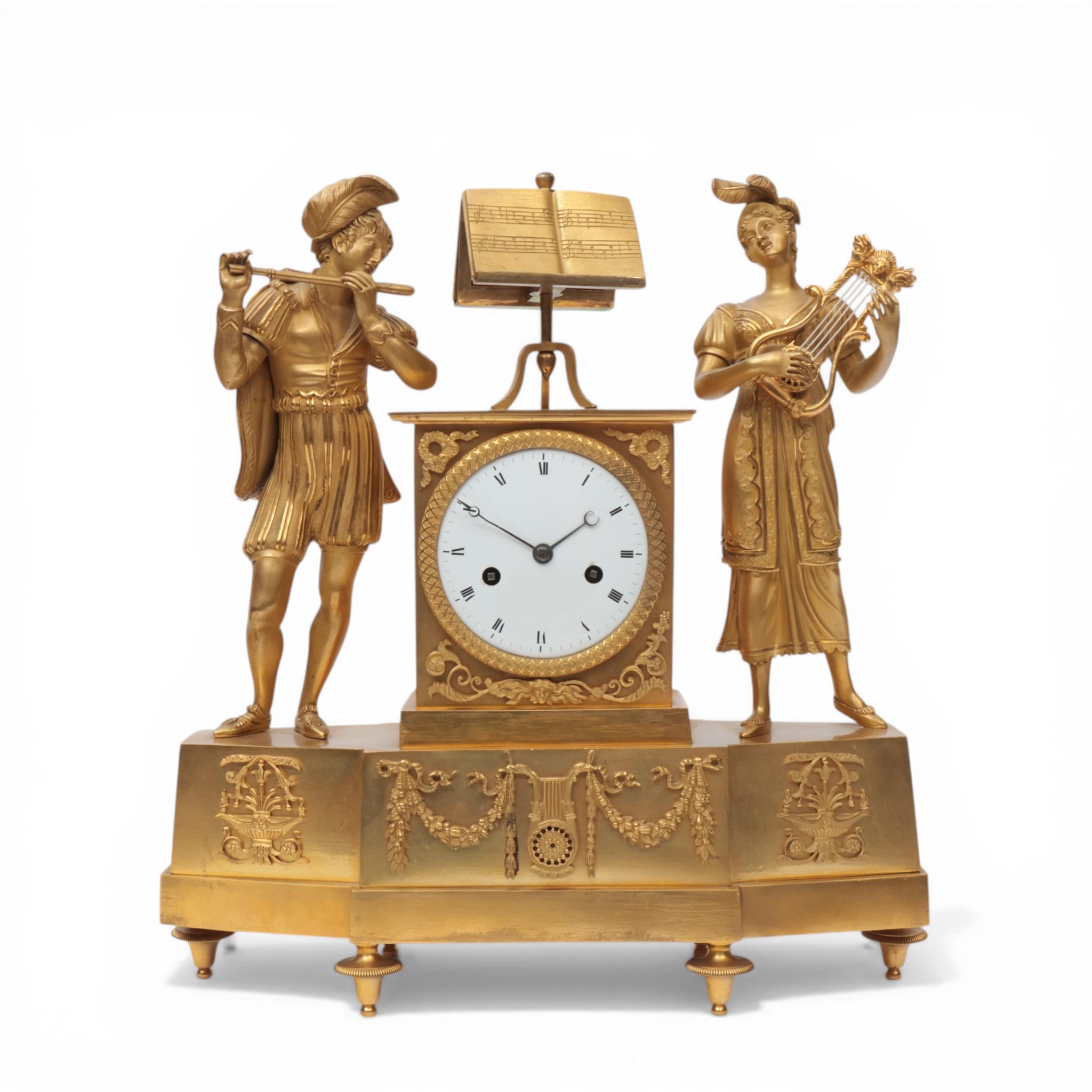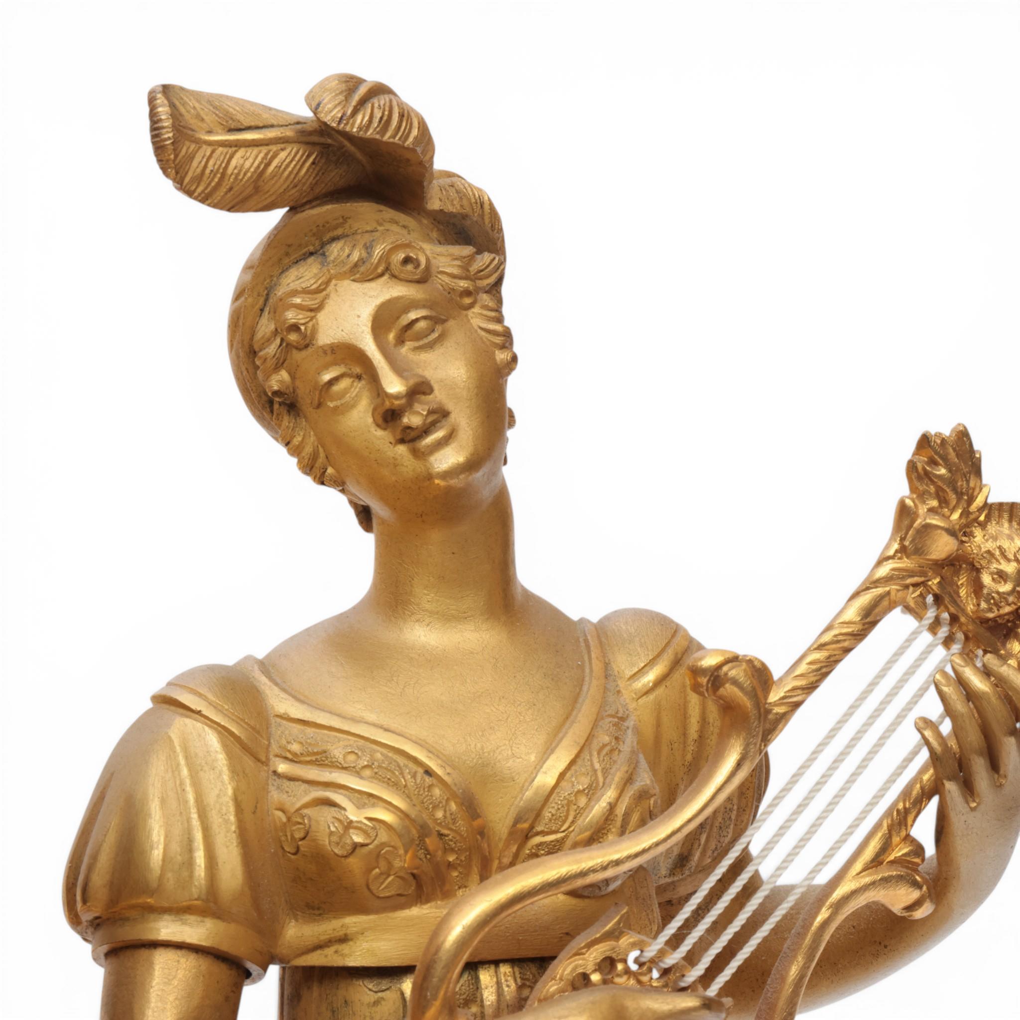 Frankrijk, vuurvergulde bronzen pendule, allegorie op de muziek, Empire, circa 1820;
