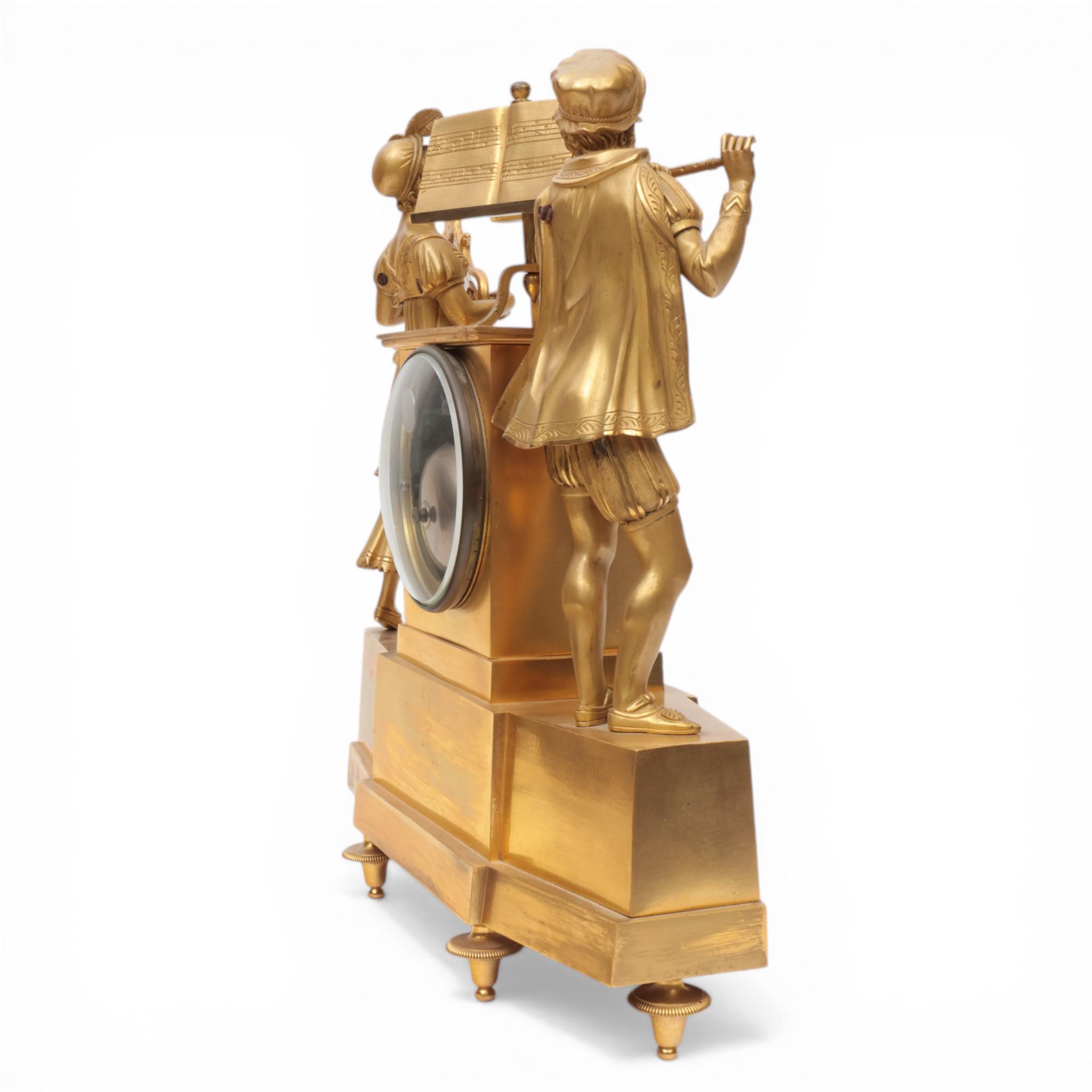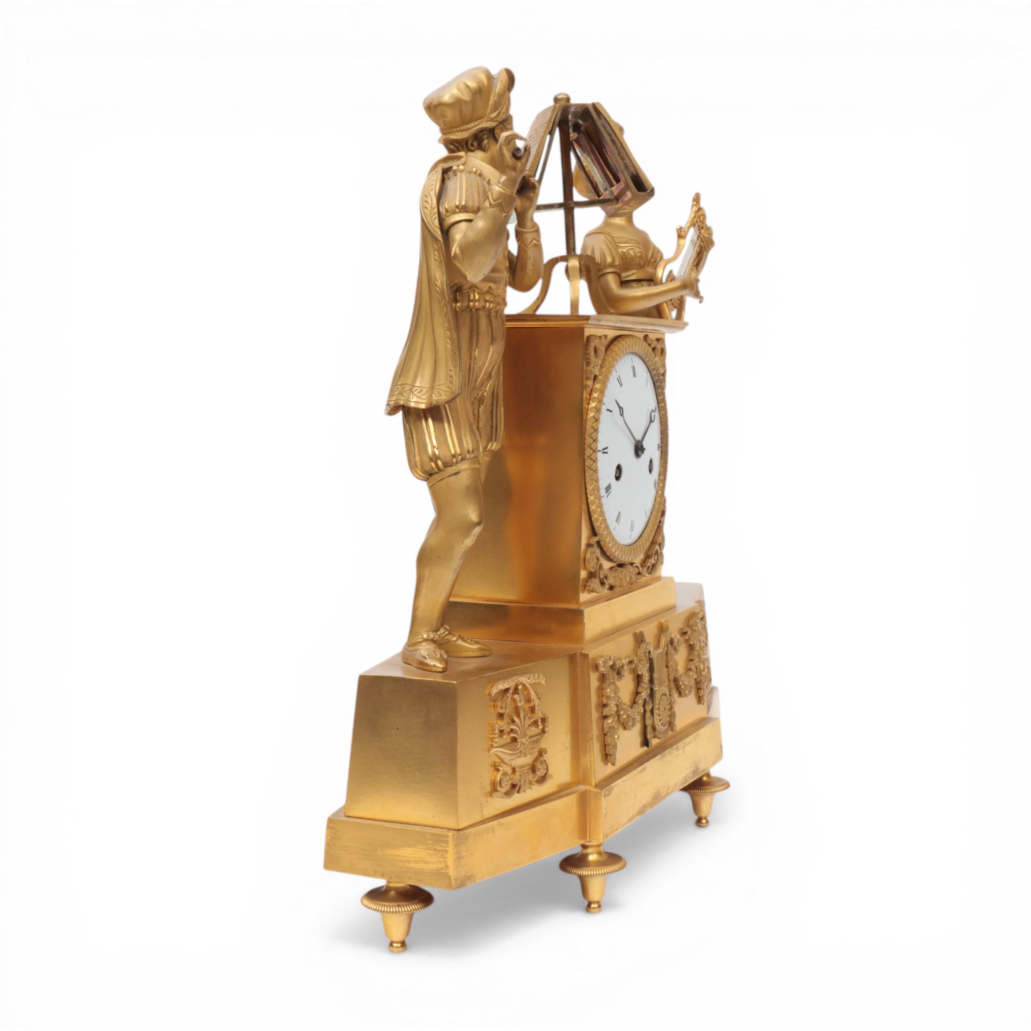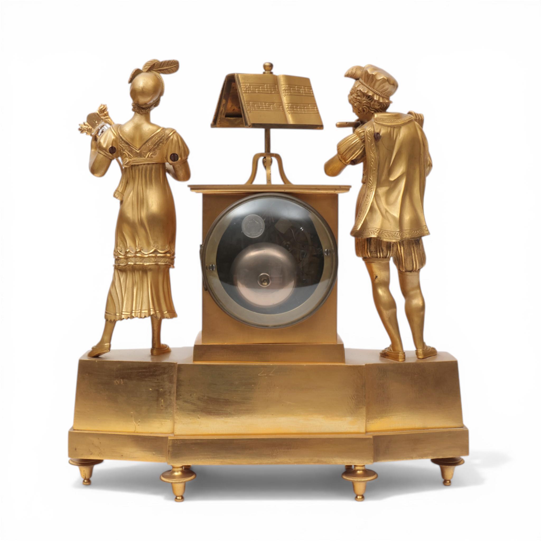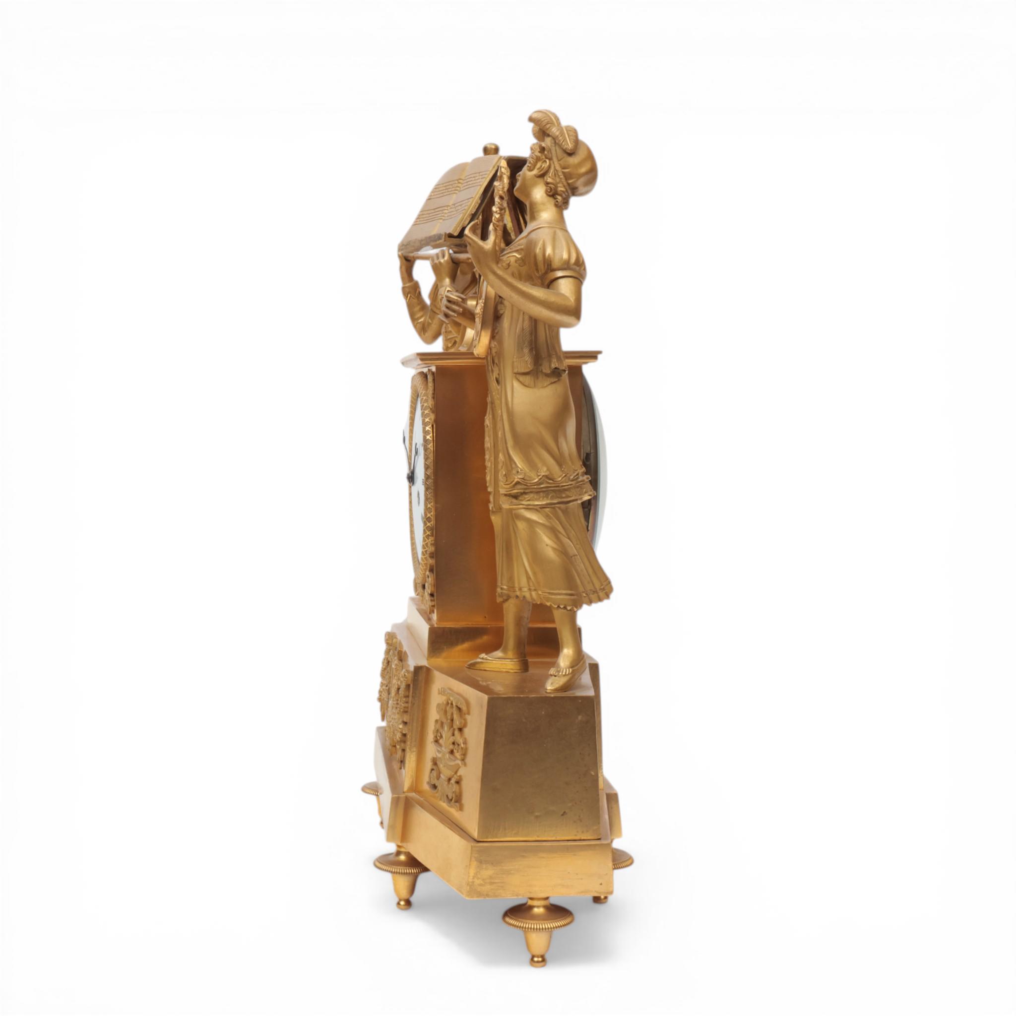 Frankrijk, vuurvergulde bronzen pendule, allegorie op de muziek, Empire, circa 1820;
