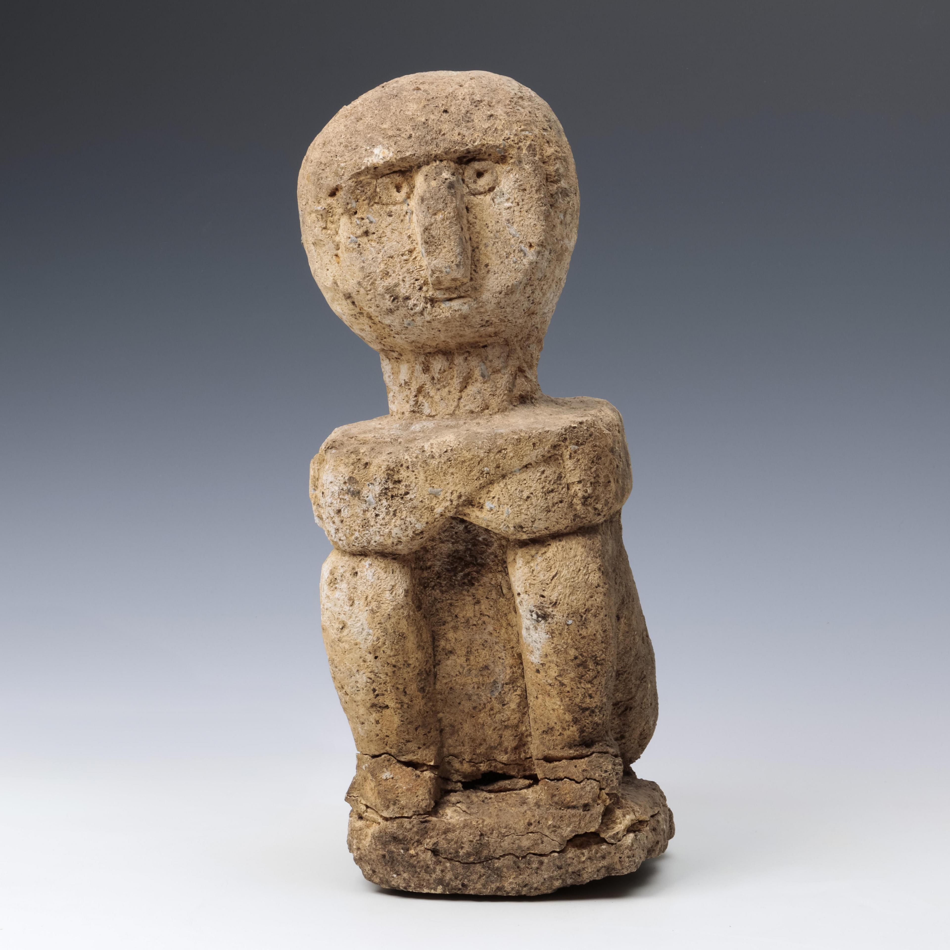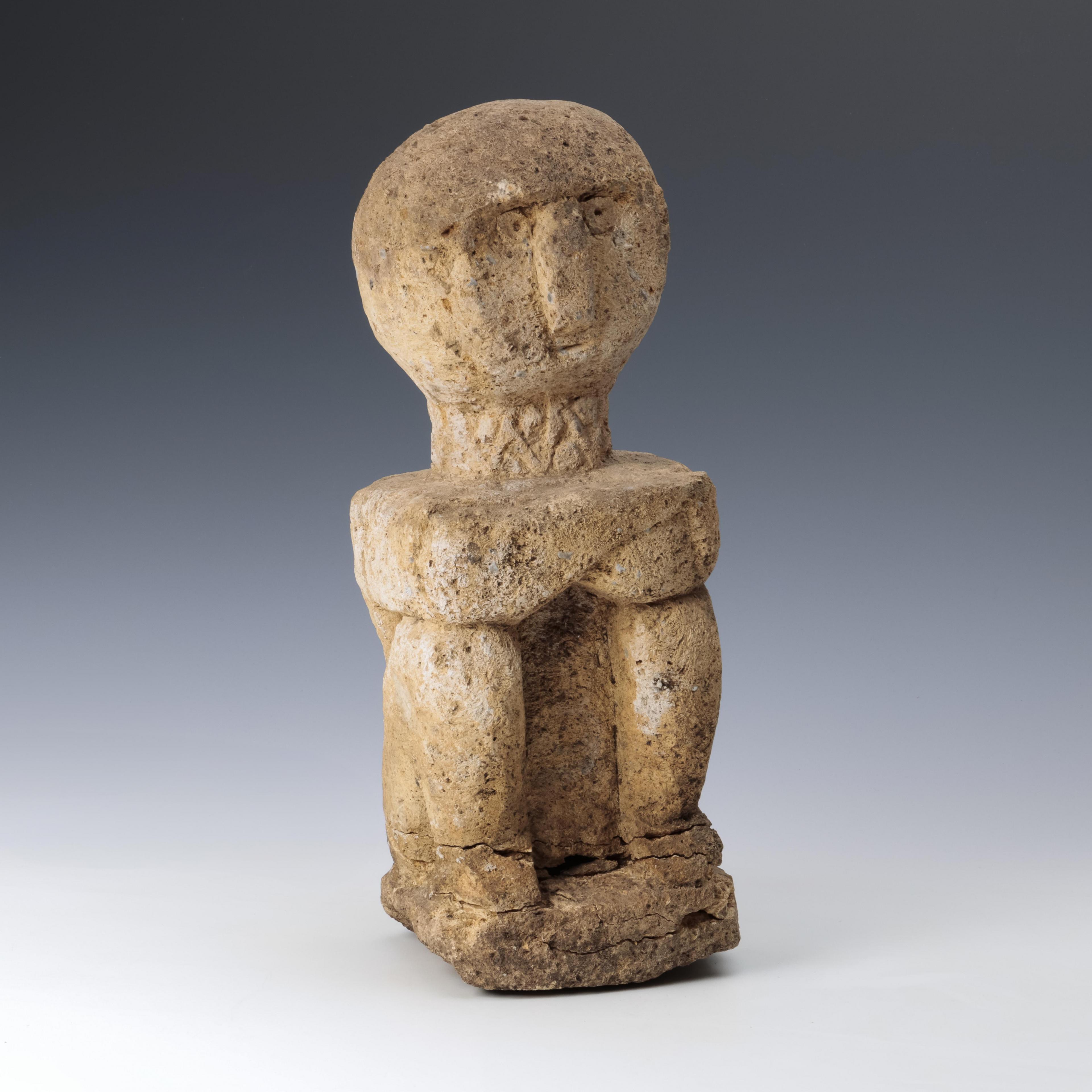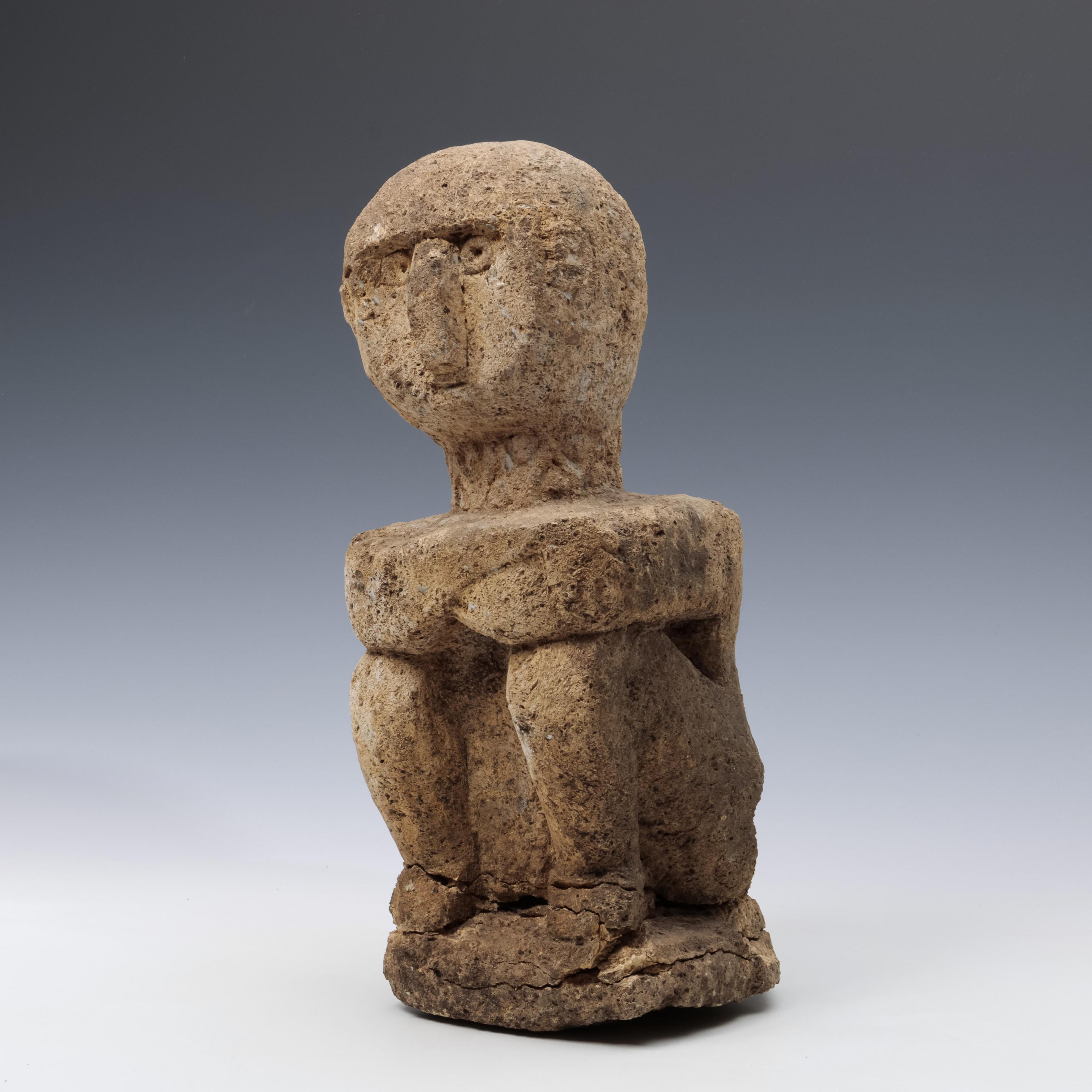 Timor - Moluccas, a lime stone seated ancestor figure;