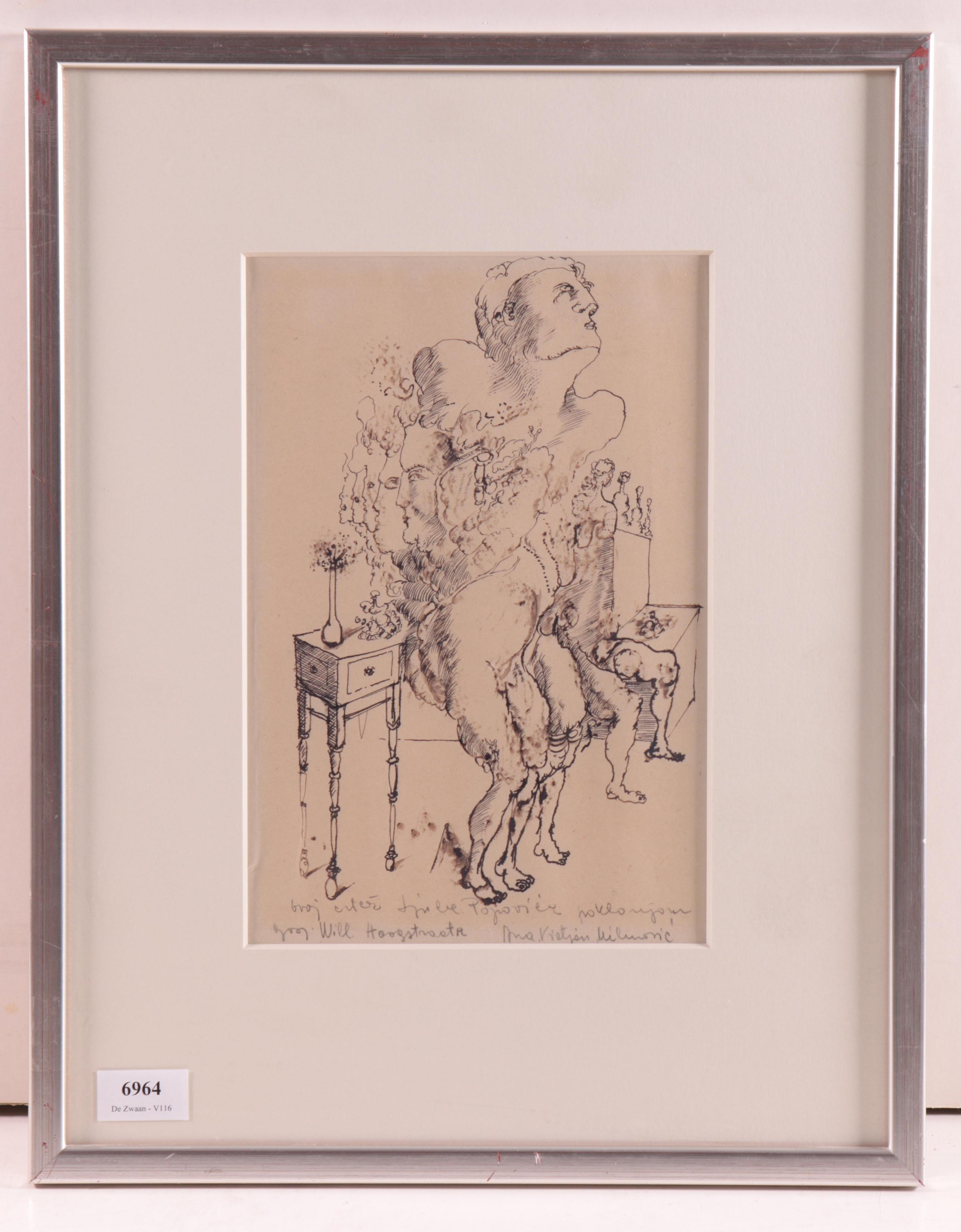 Stilleven. Hierbij tekening door Ana Vidjen Milunovic en tekening door Werner Reiner