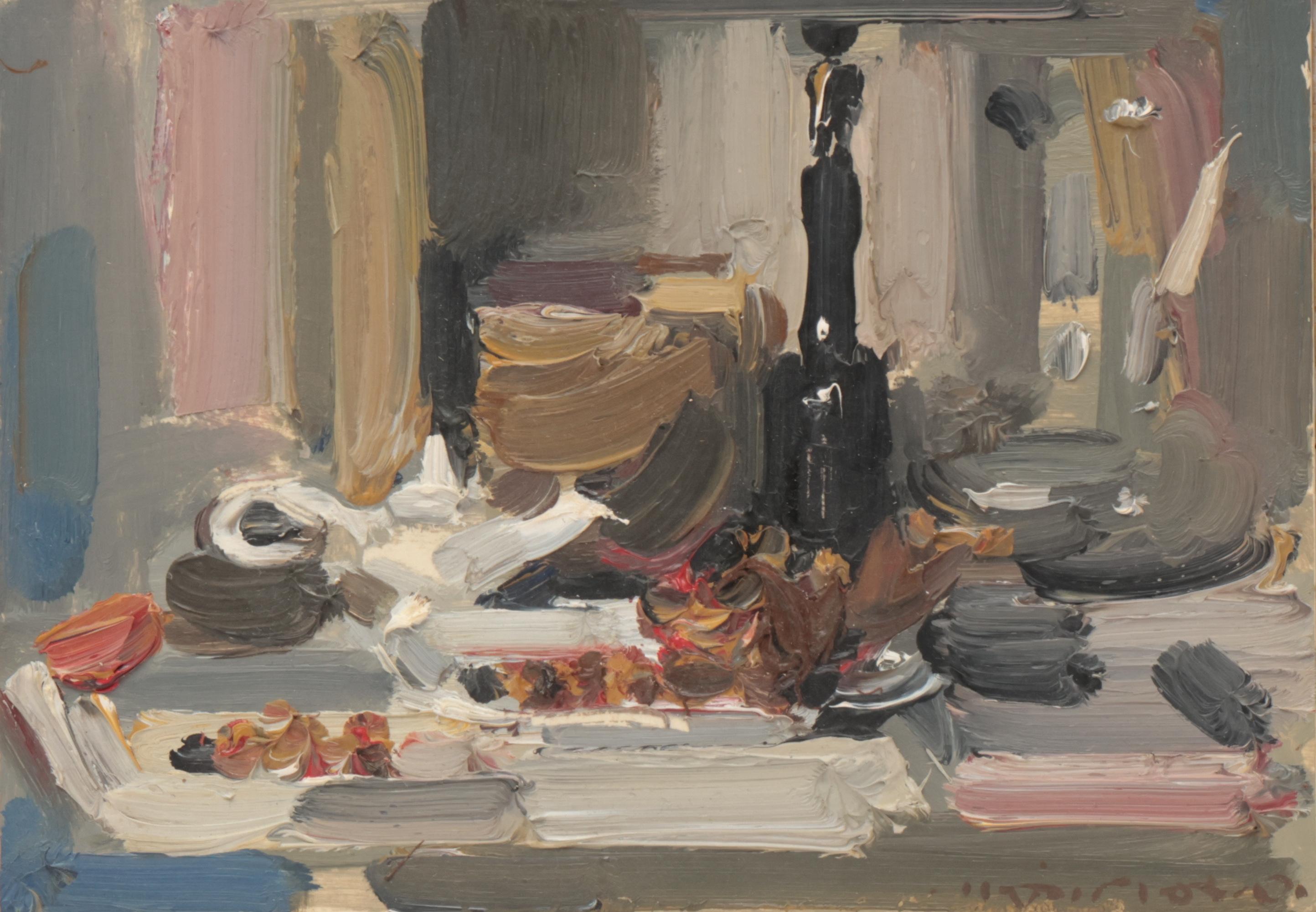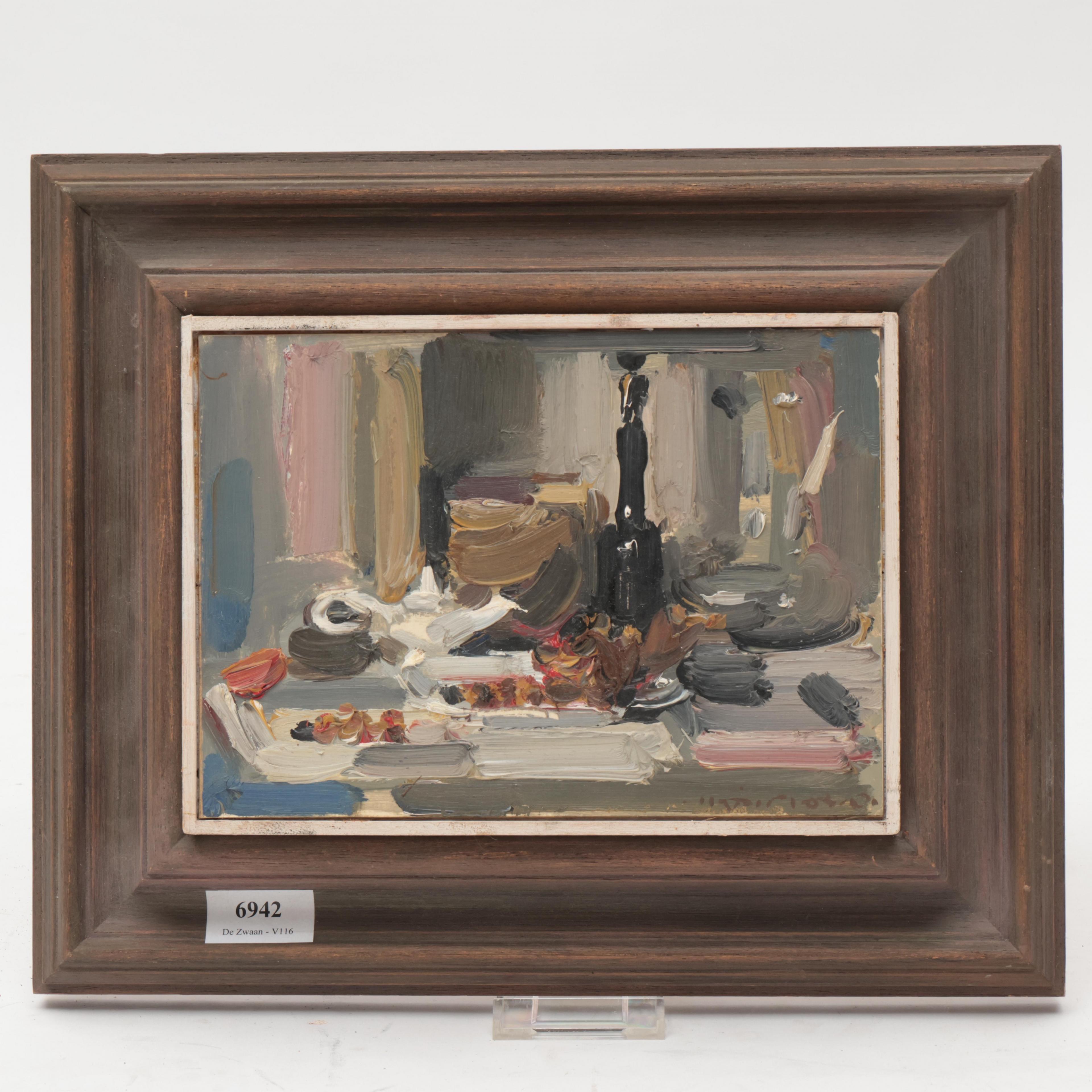 board, gesigneerd rechtsonder, 17 x 23 cm.