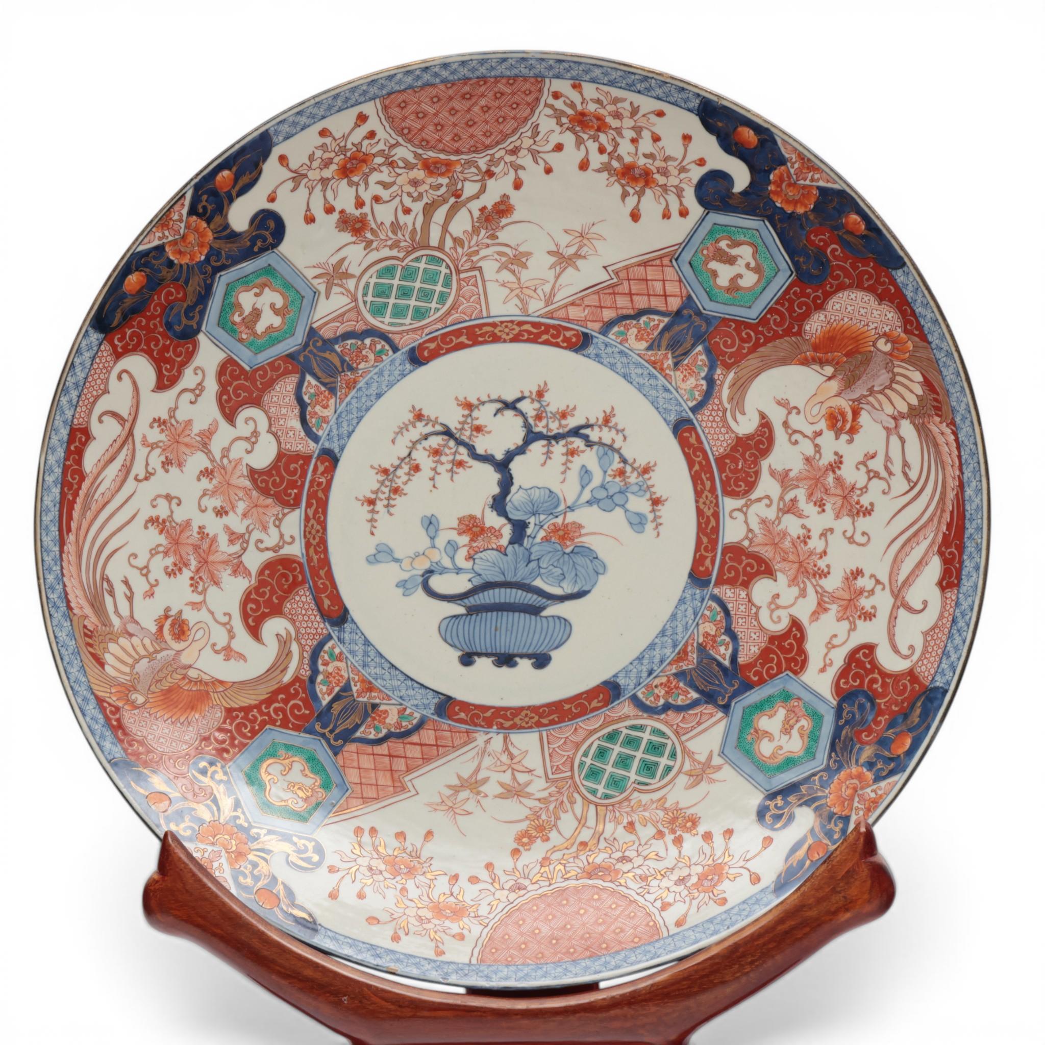 Japan, an Imari porcelain charger, Meiji period (1868-1912) on wood stand,