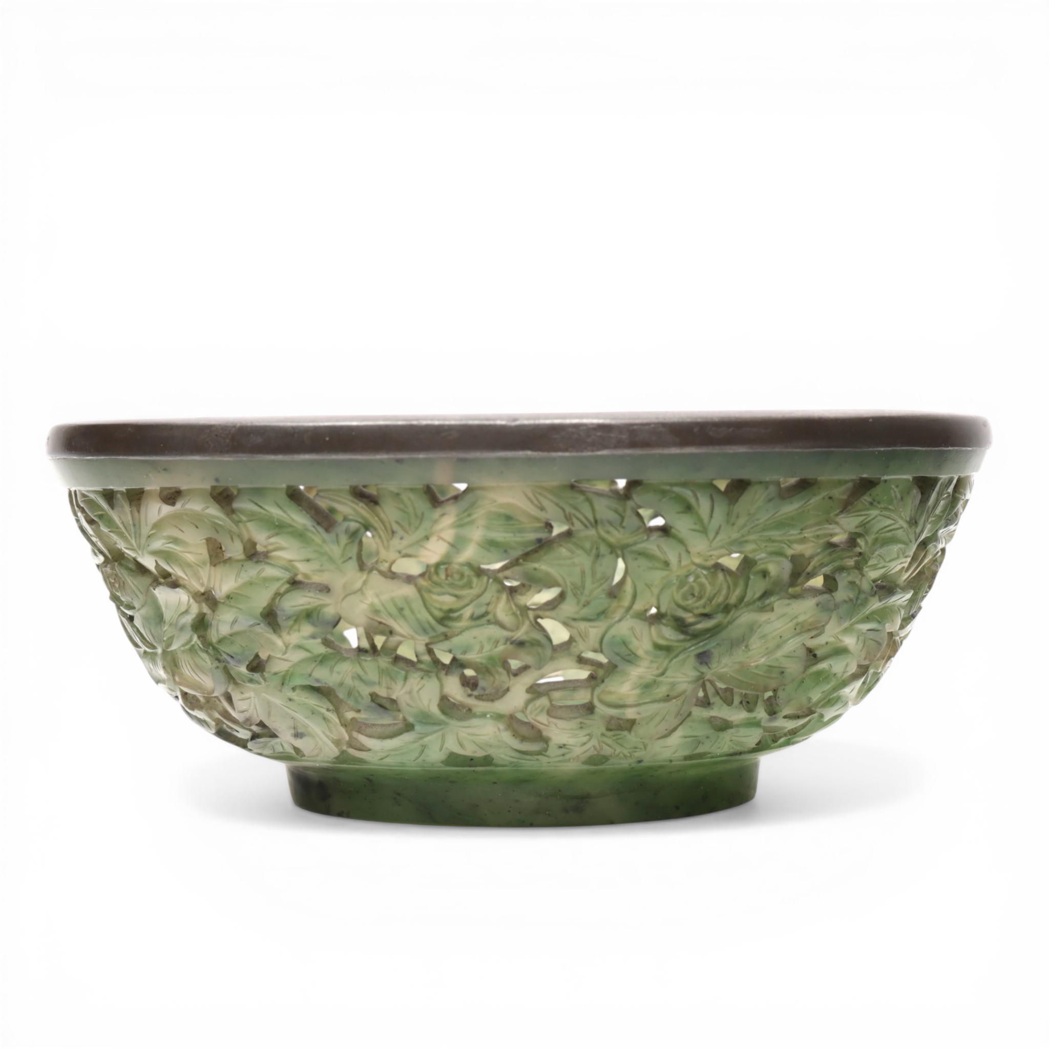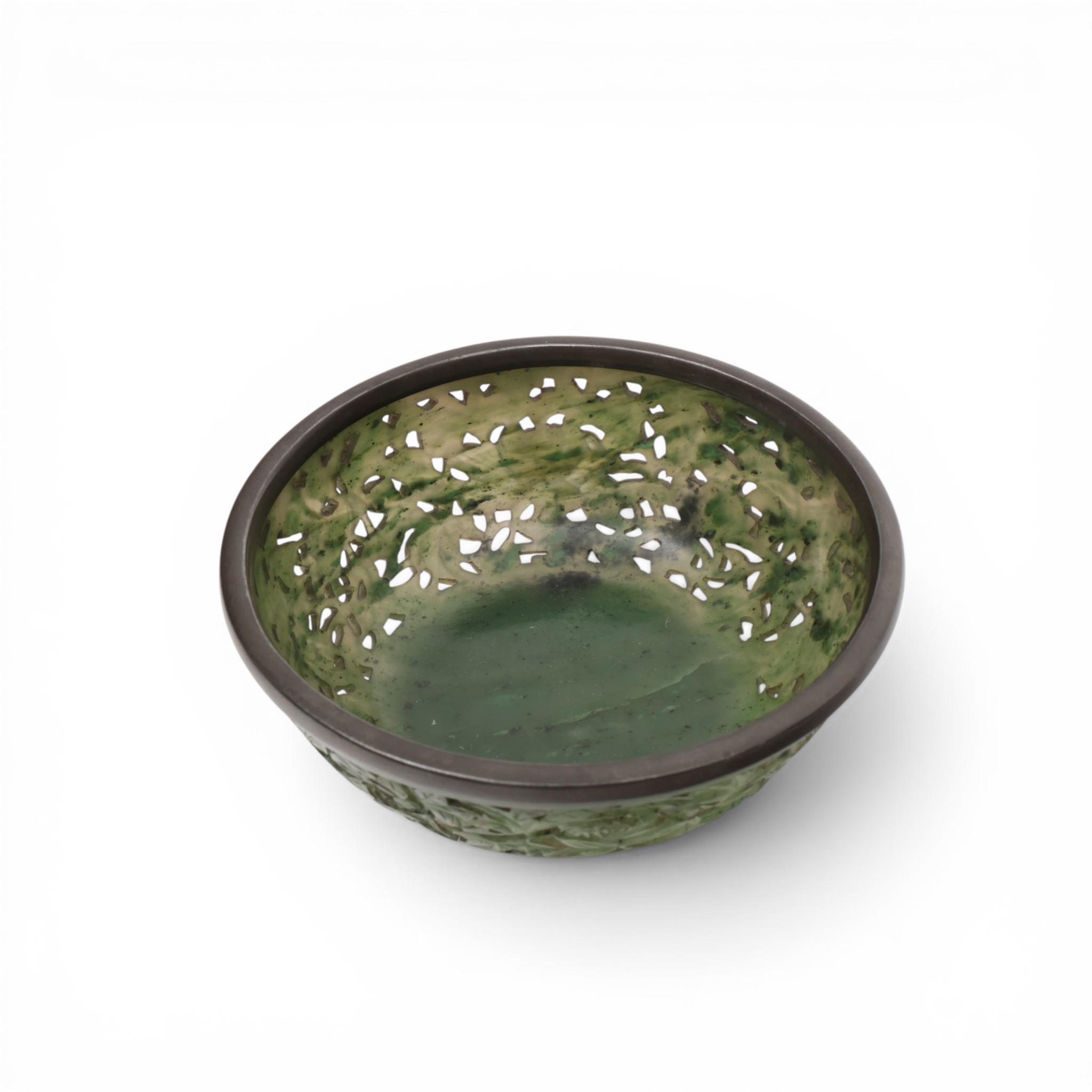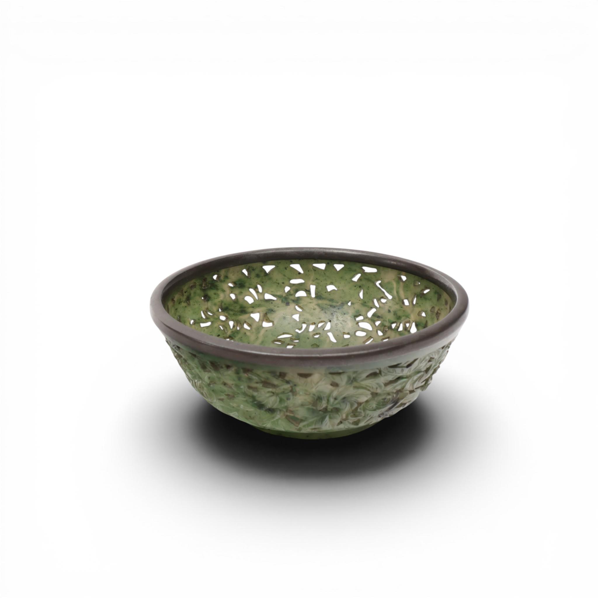 openworked with flowers, with metal border, the stone of a spinach and moss-green tone