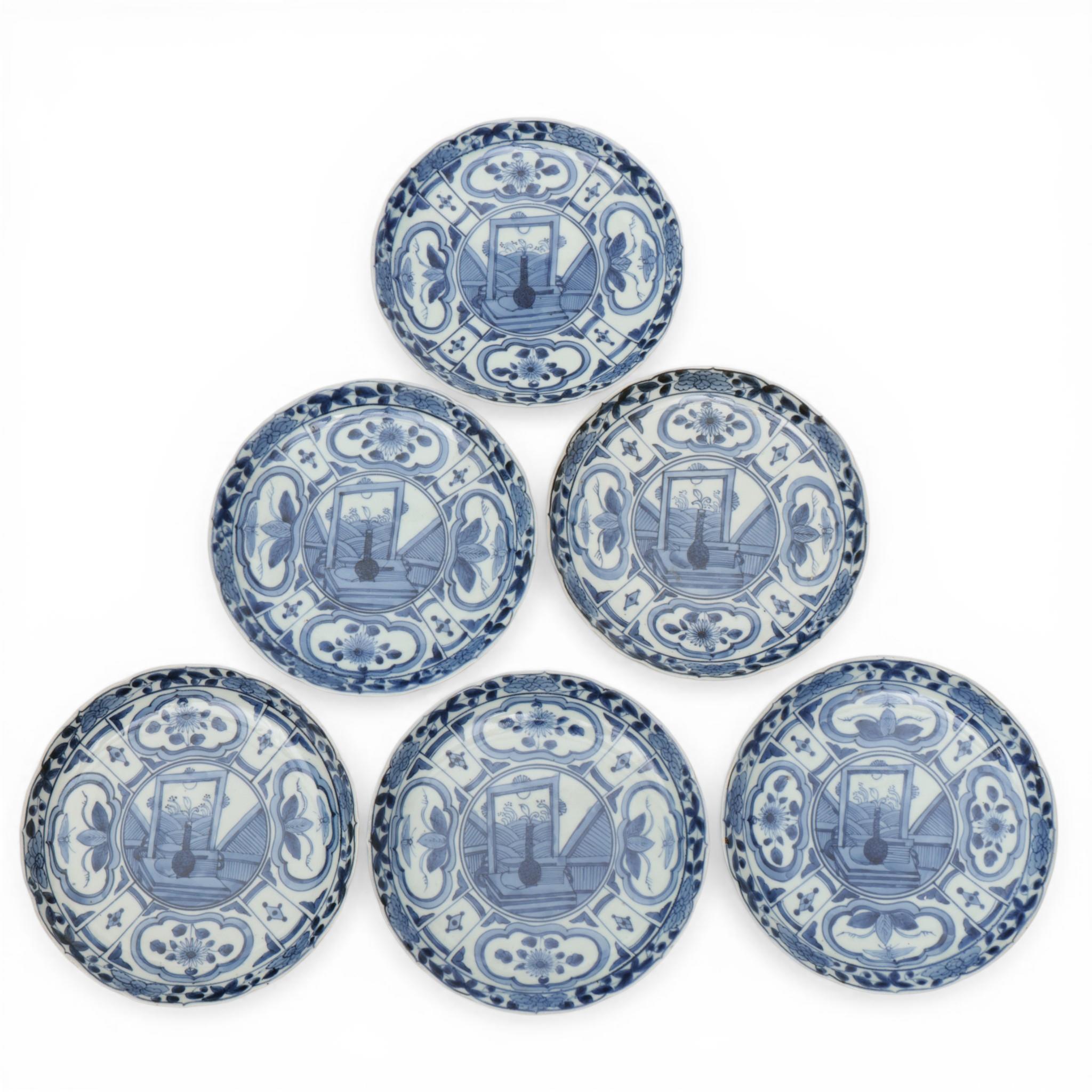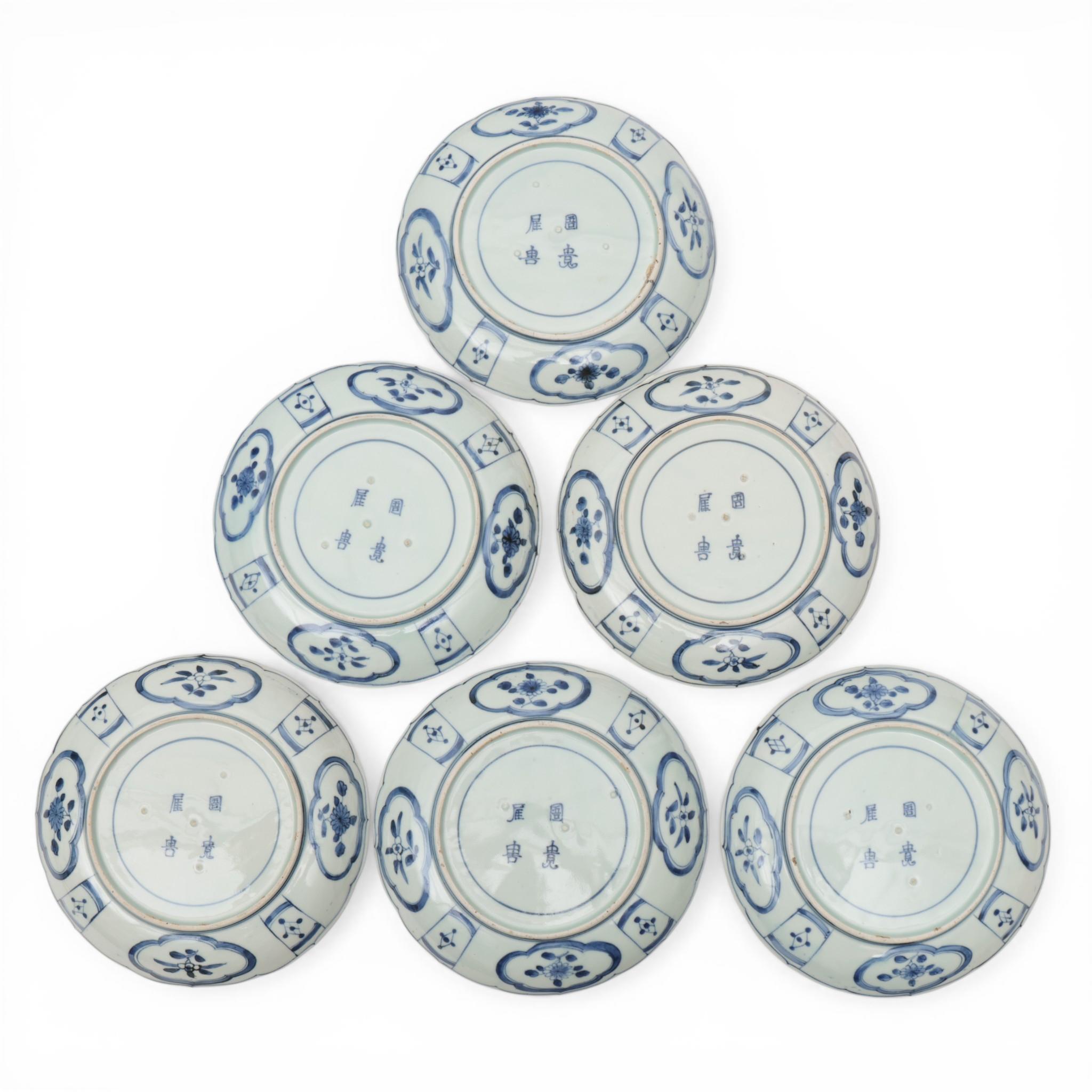Japan, a set of six Arita blue and white porcelain plates, 18th century,
