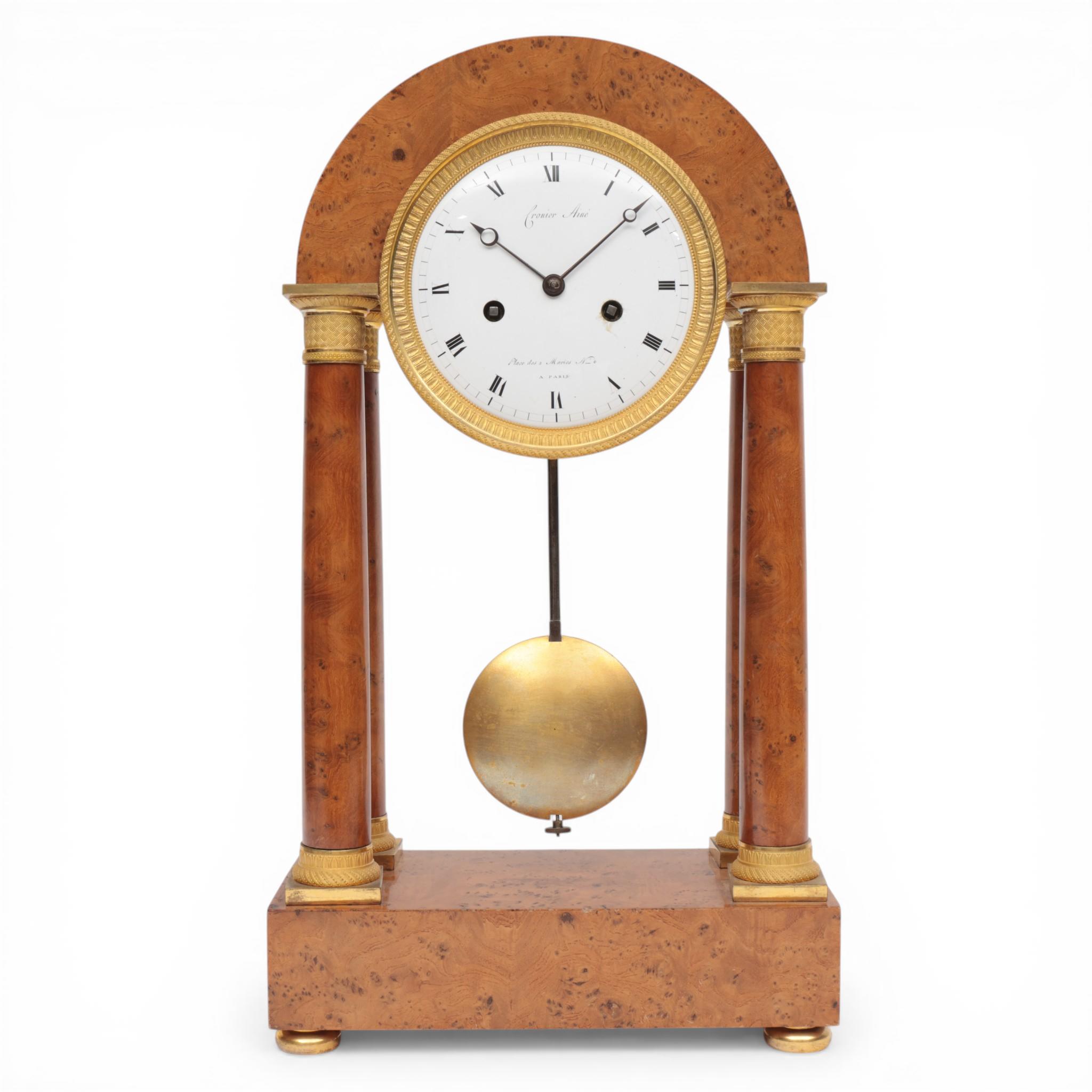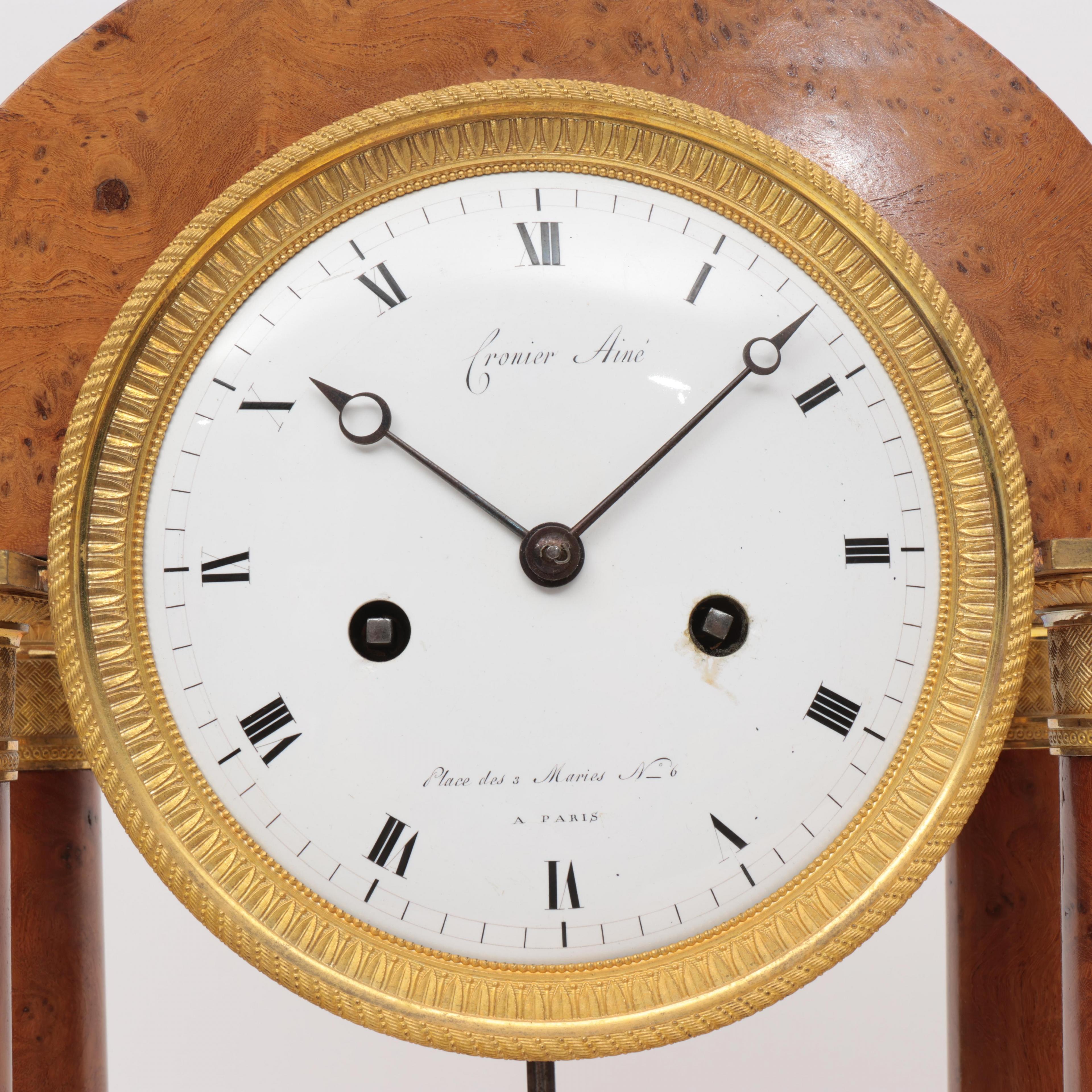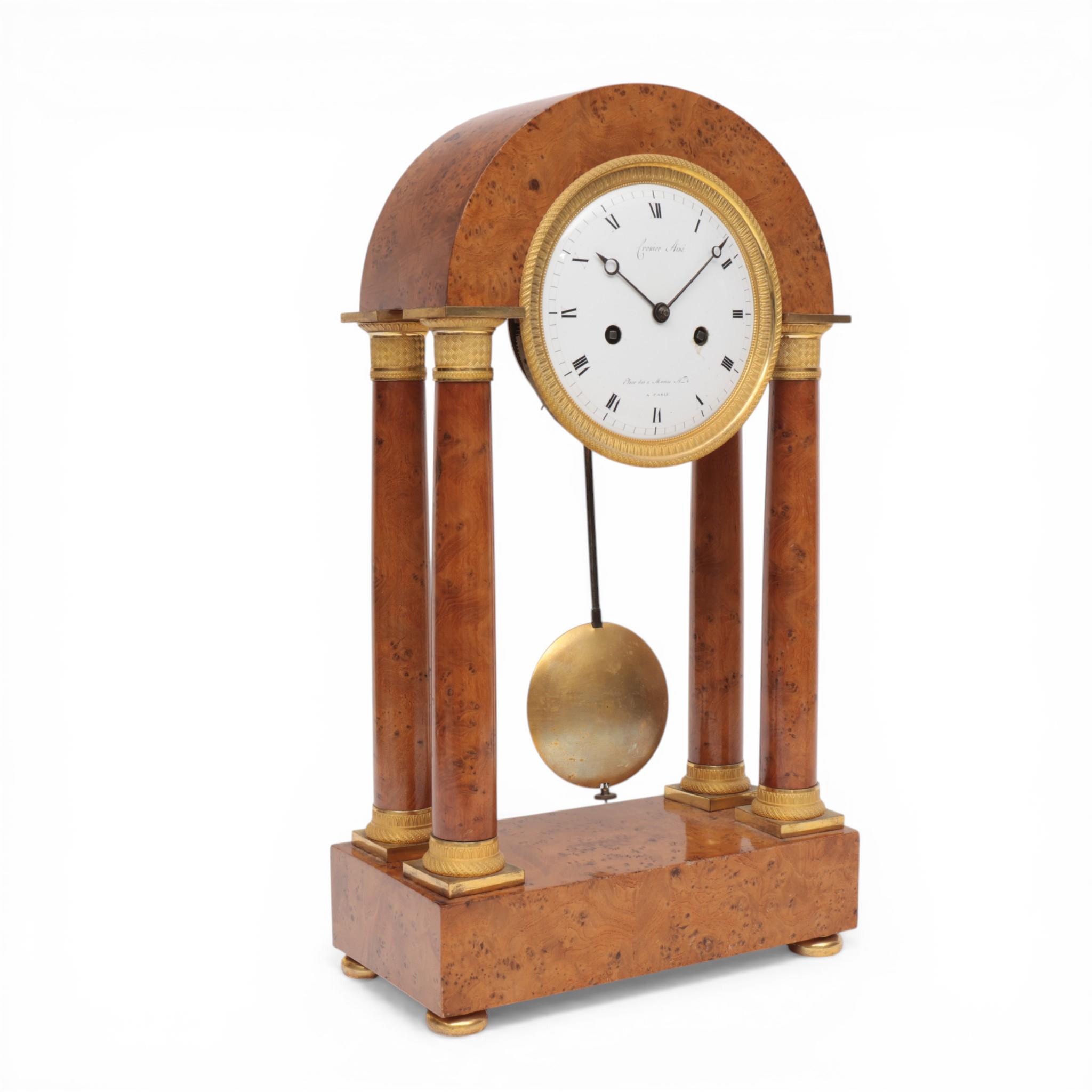 Frankrijk, amboinahouten kolompendule, Cronier Aine, Empire, circa 1810;