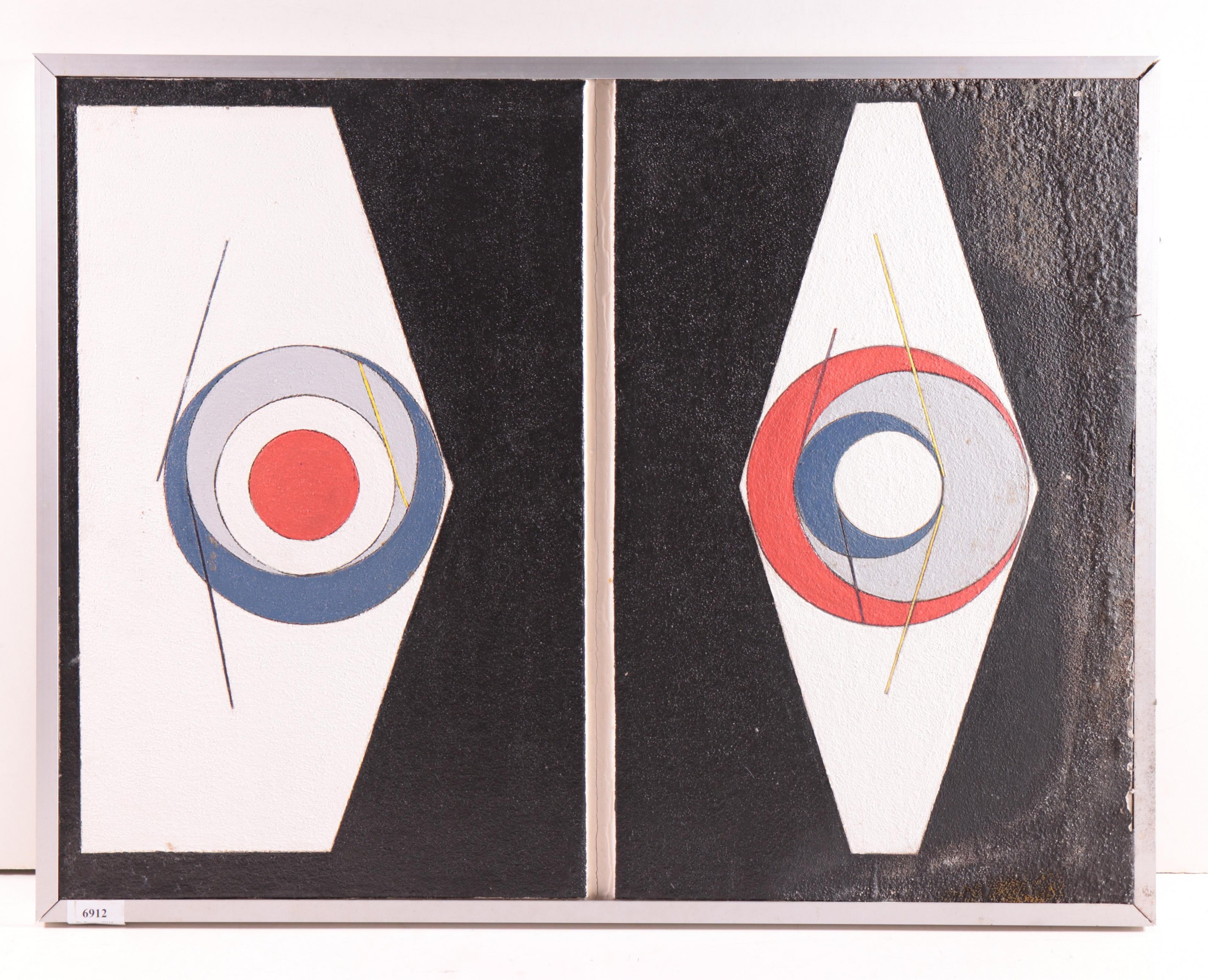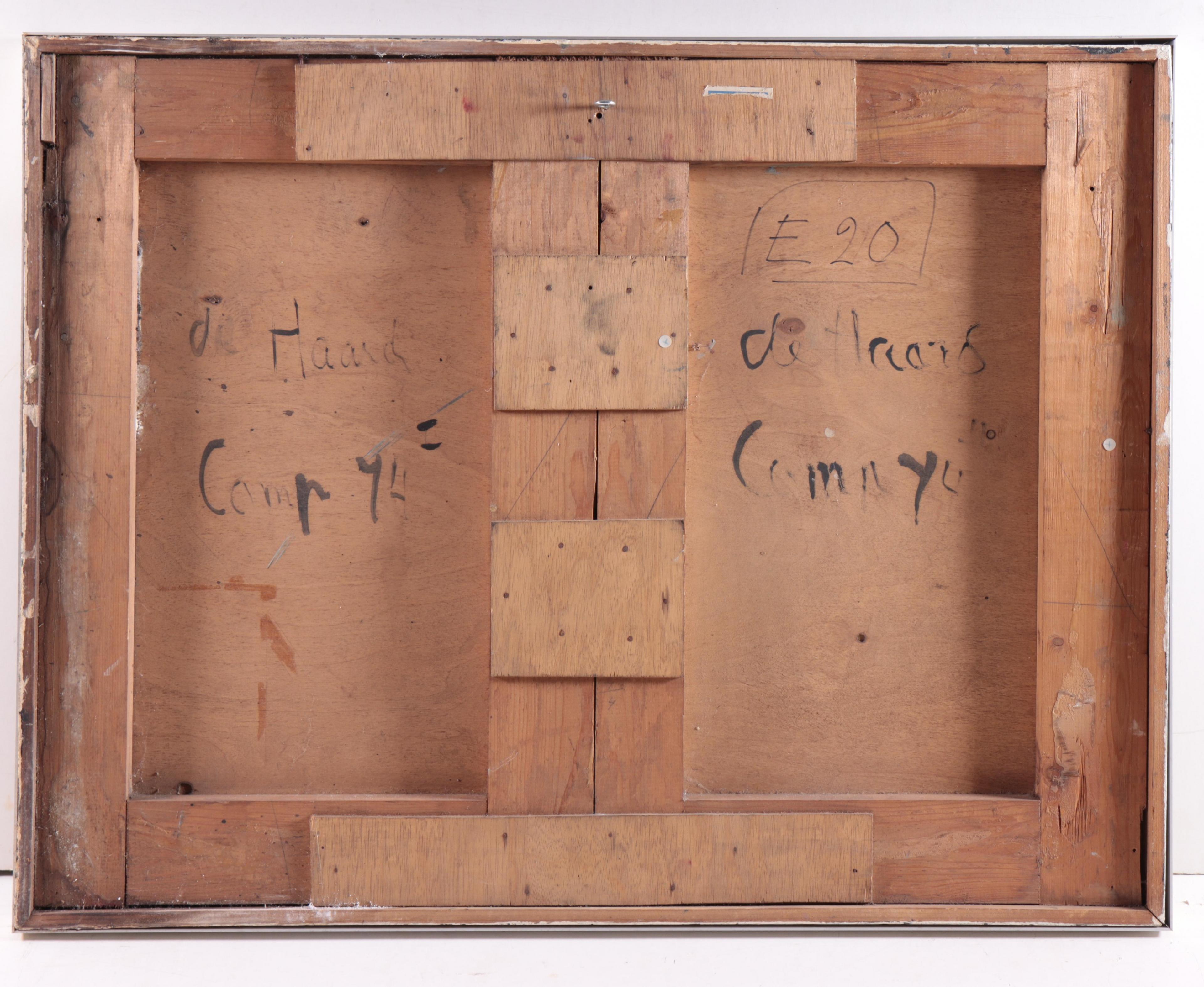 board, verso gesigneerd, beschadigingen, 55 x 73 cm.