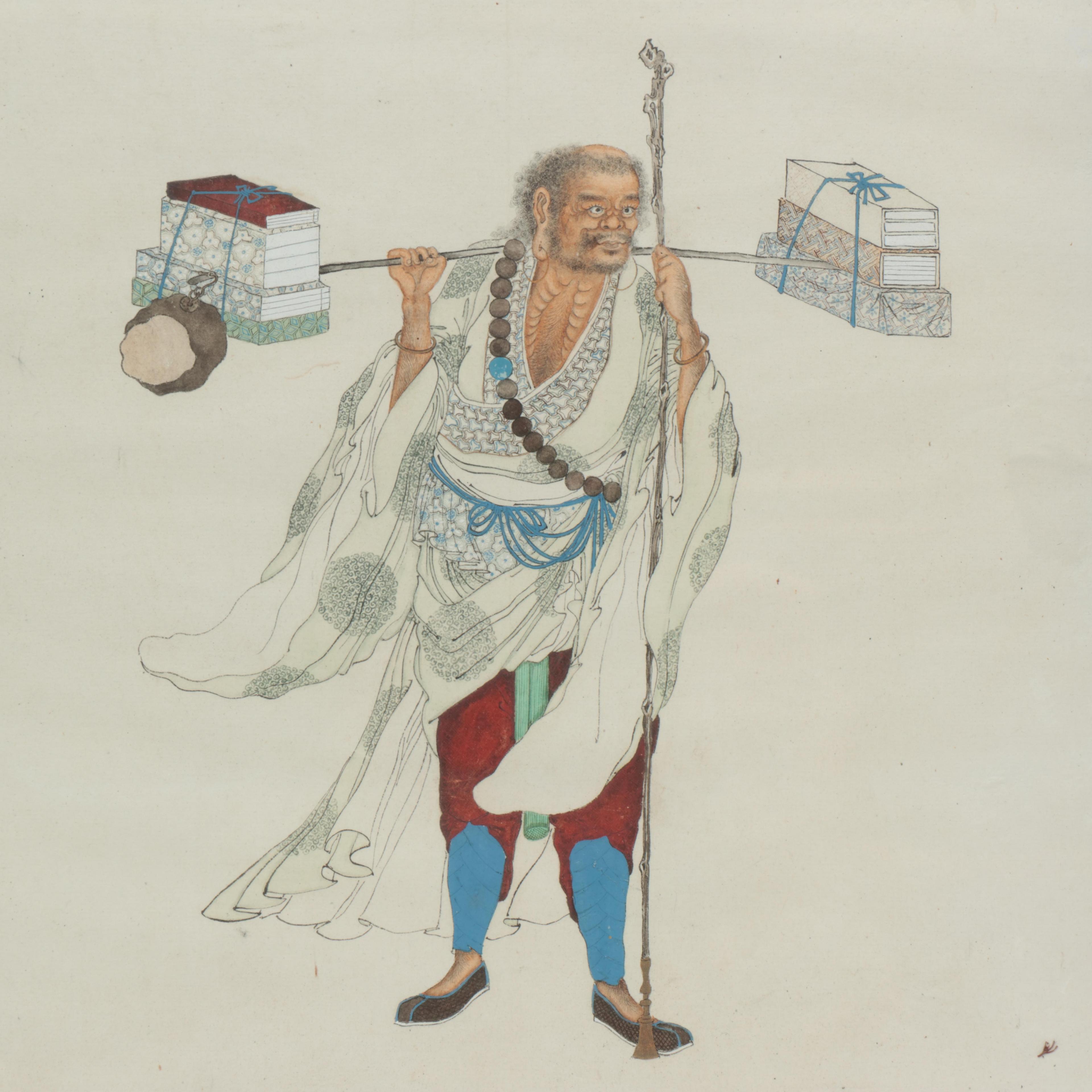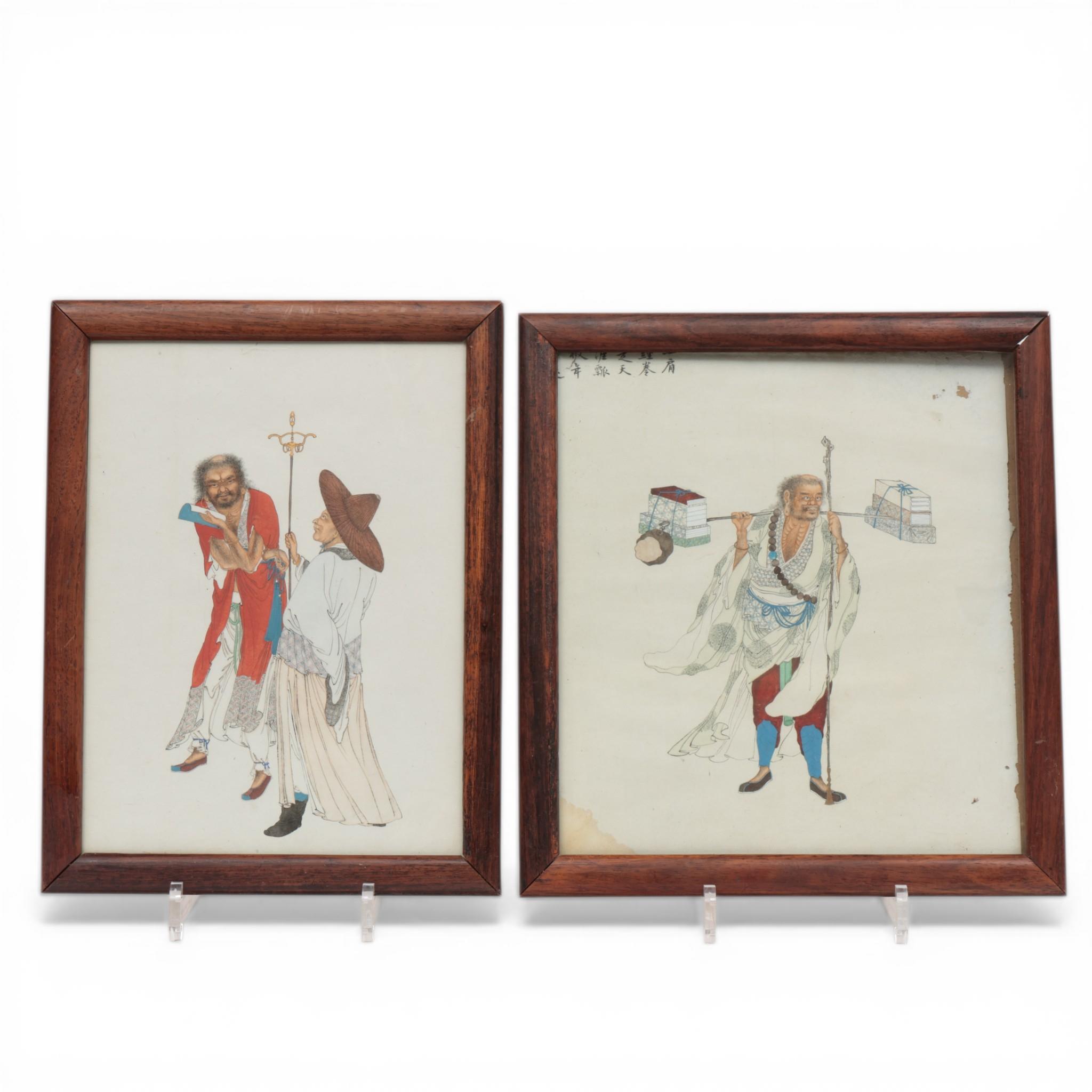 each depicting a sage, each framed and glazed, one inscribed (the latter with worn edges and water stain to lower left corner)
