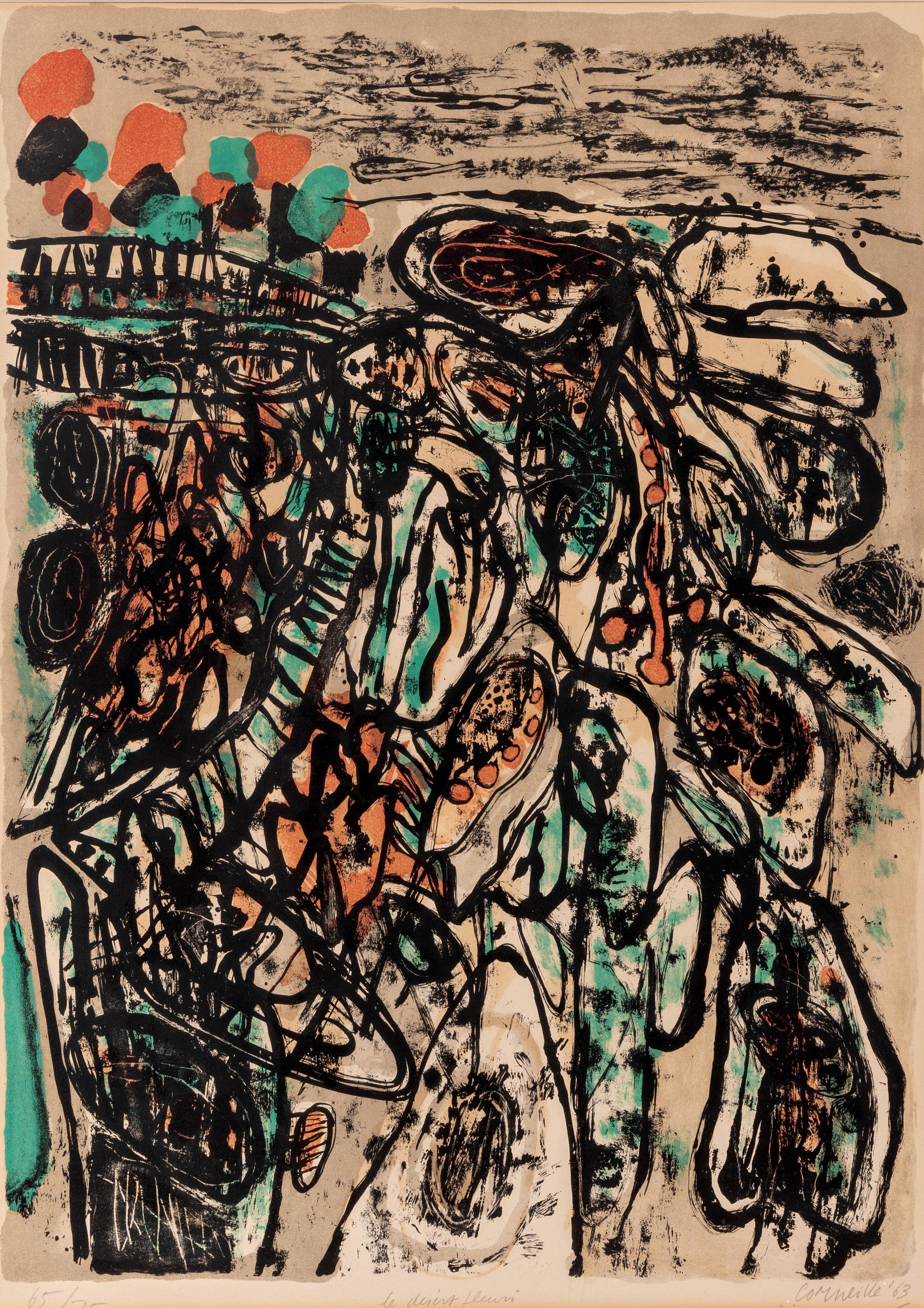 litho, gesigneerd rechtsonder, '63, 65/75, 70 x 50 cm.