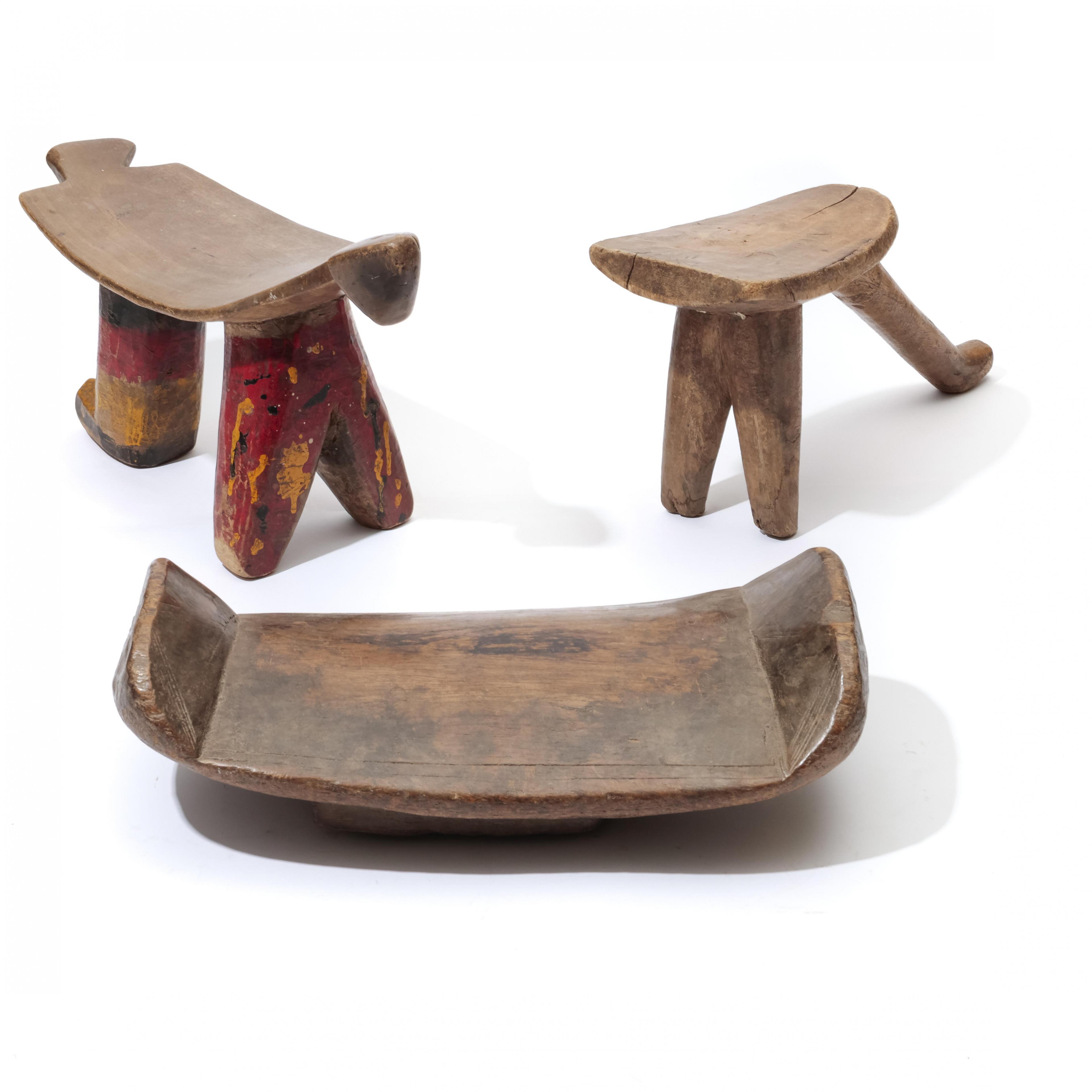 West Africa, three wooden stools;