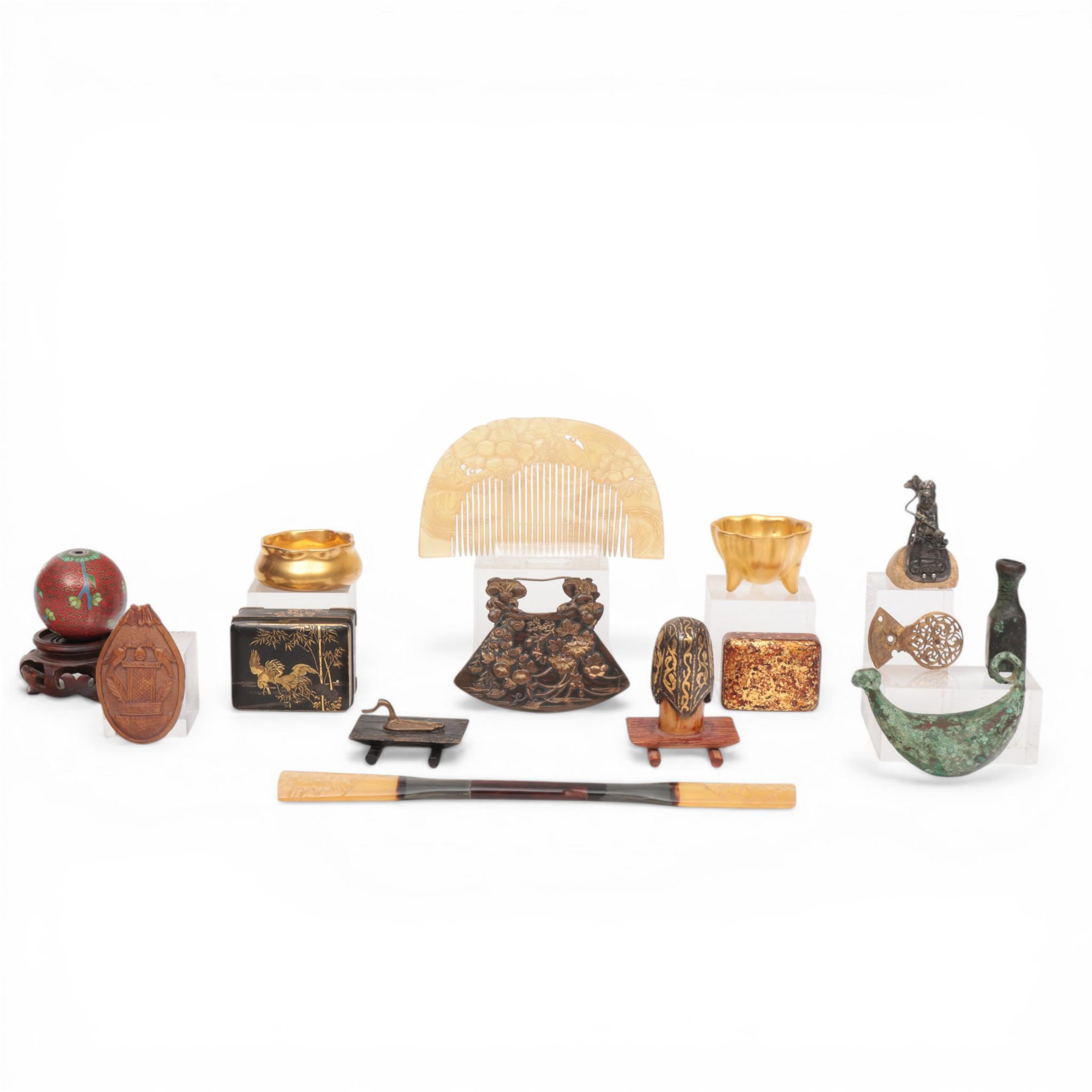 including a gilt-metal box and cover and various other items in bronze and lacquer and wood