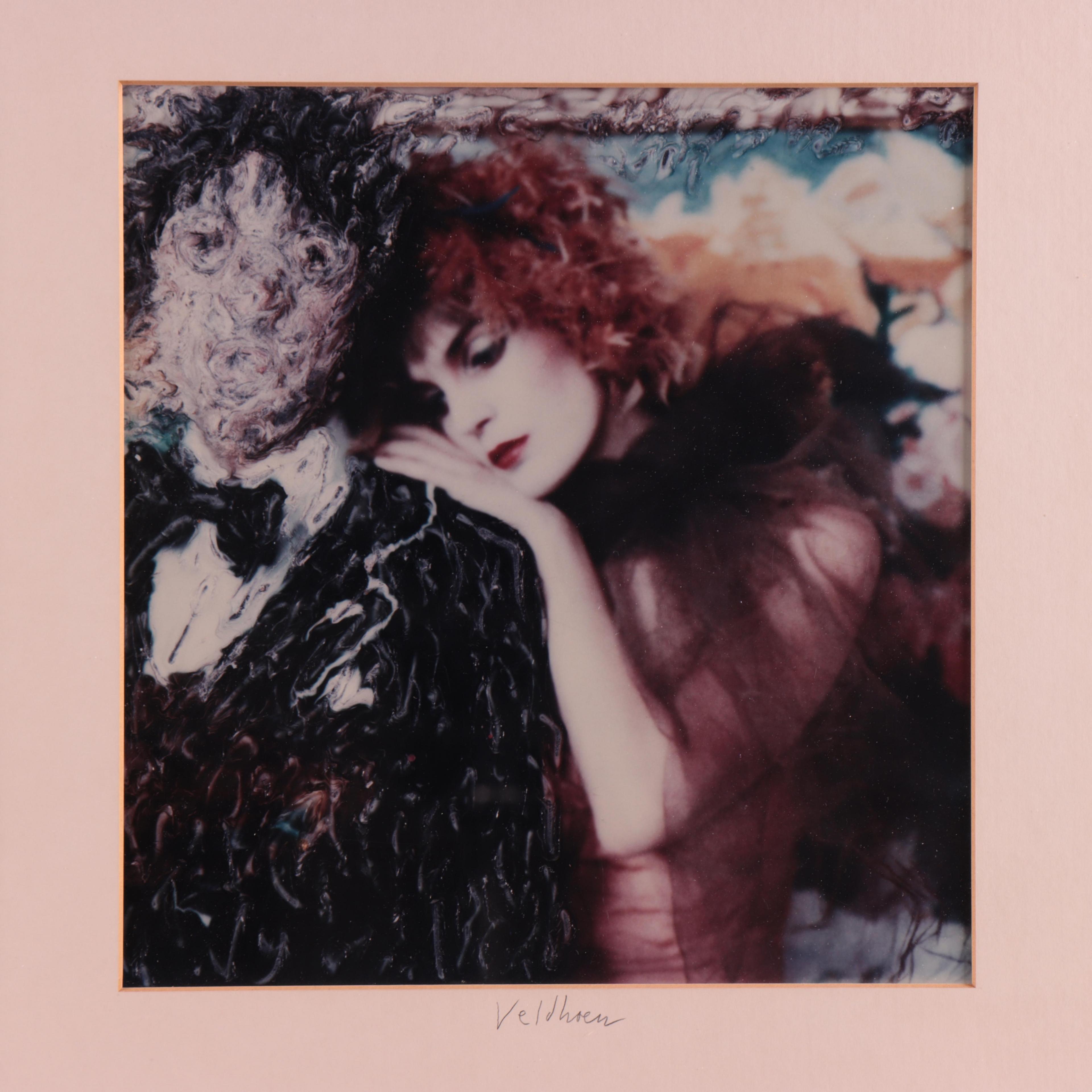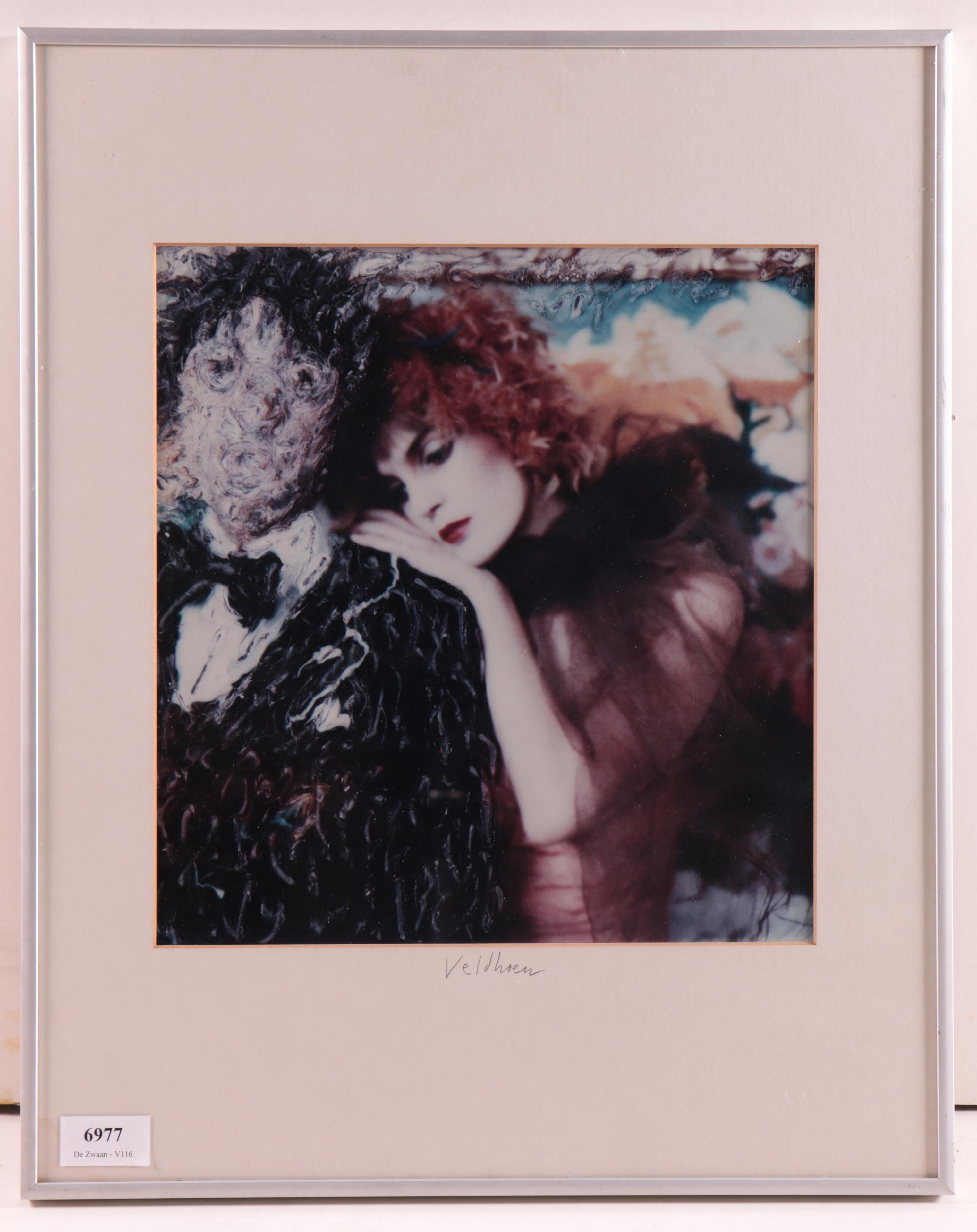 print van bewerkte polaroid foto, ca. 1993, gesigneerd middenonder op passepartout, 30 x 28,5 cm.