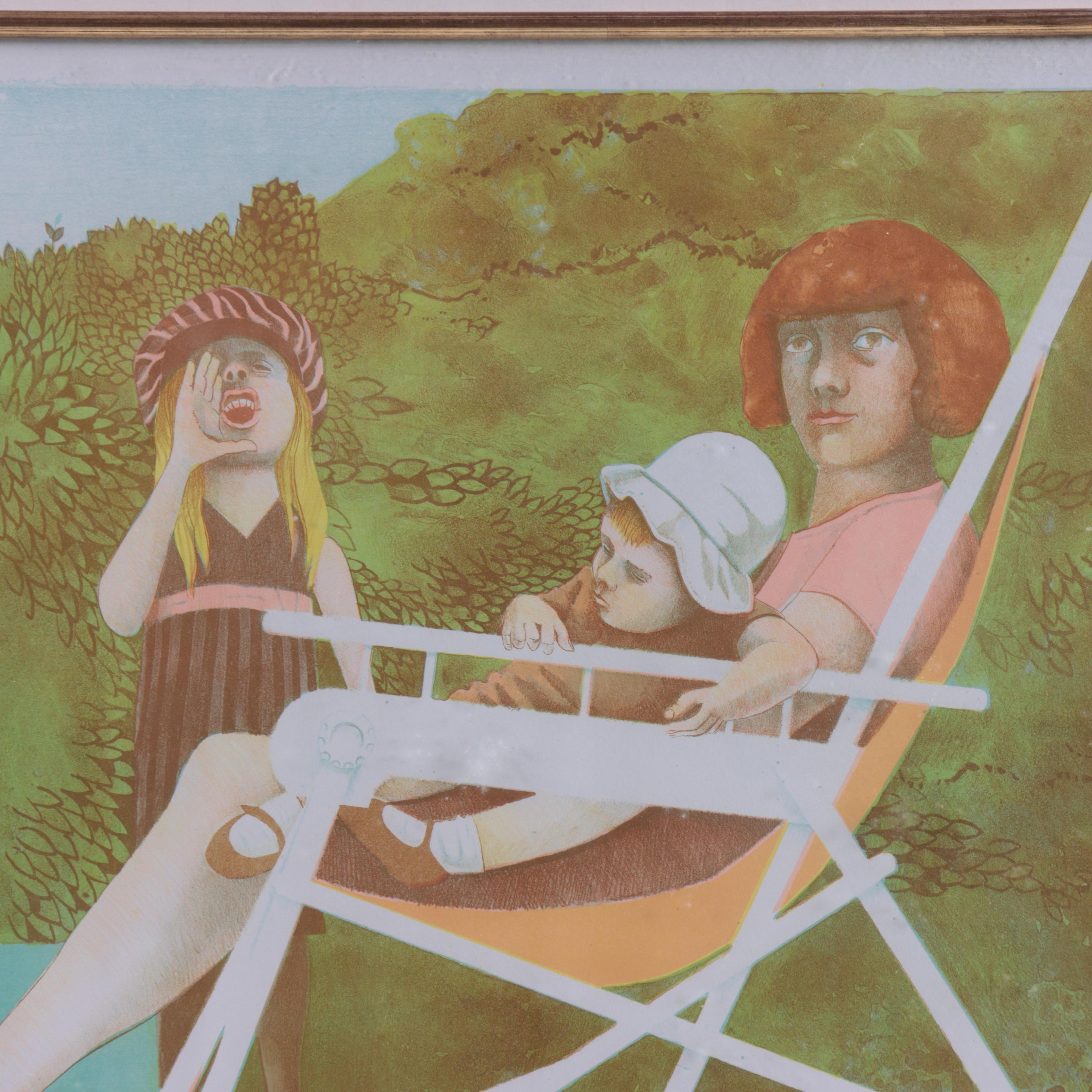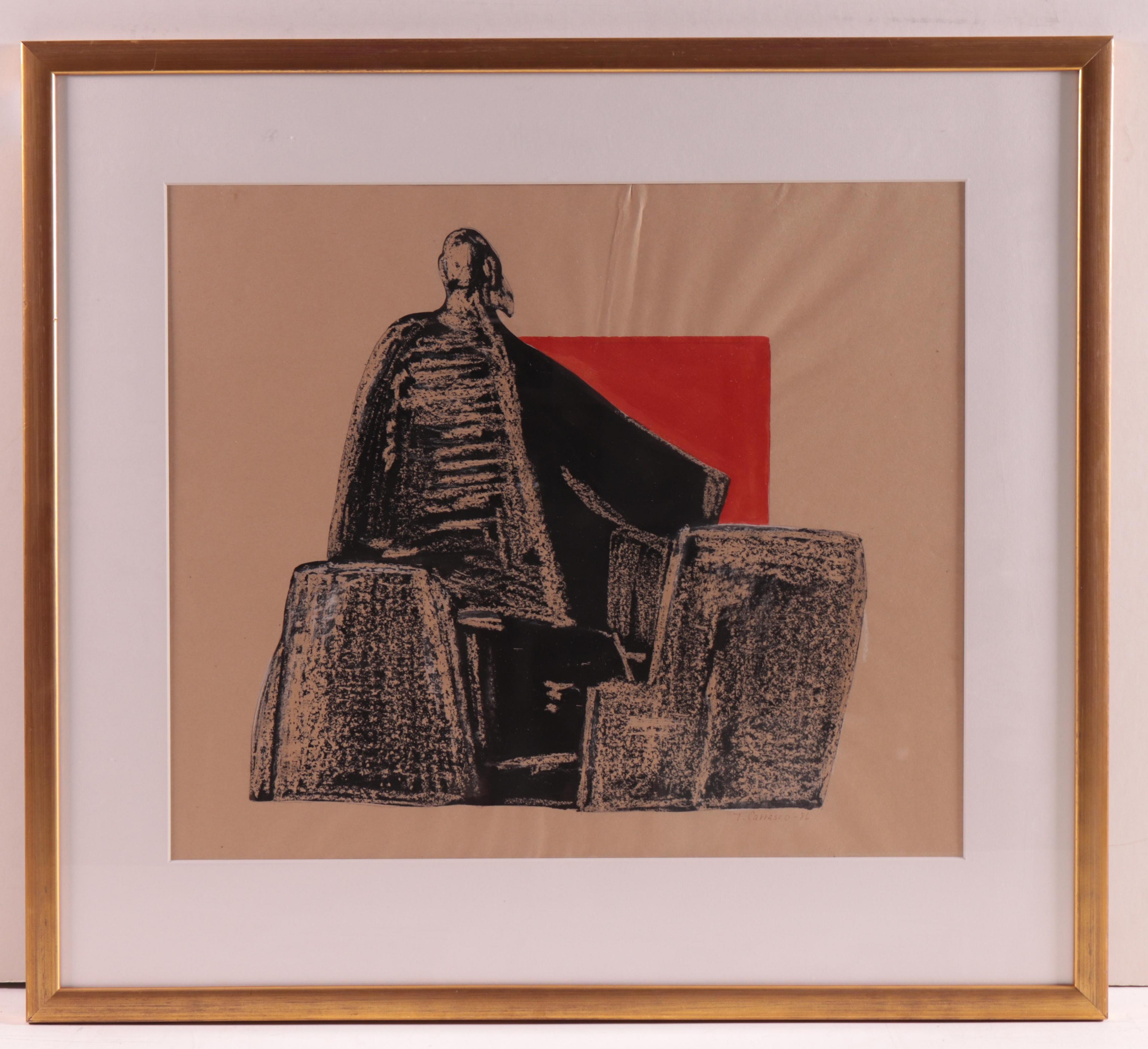 drie tekeningen, gesign. 45 x 55 cm. en litho, gesign., 55 x 75 cm.