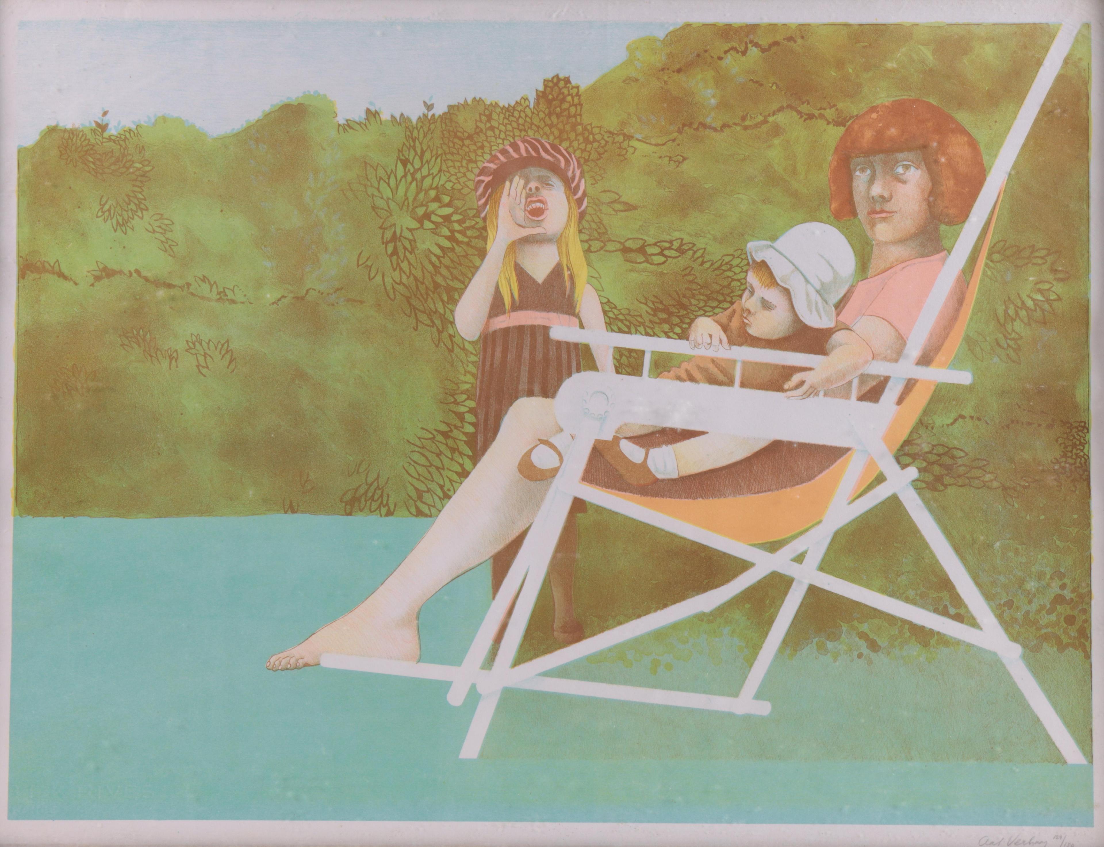 Drie diverse tekeningen. Hierbij litho door Aat Verhoog