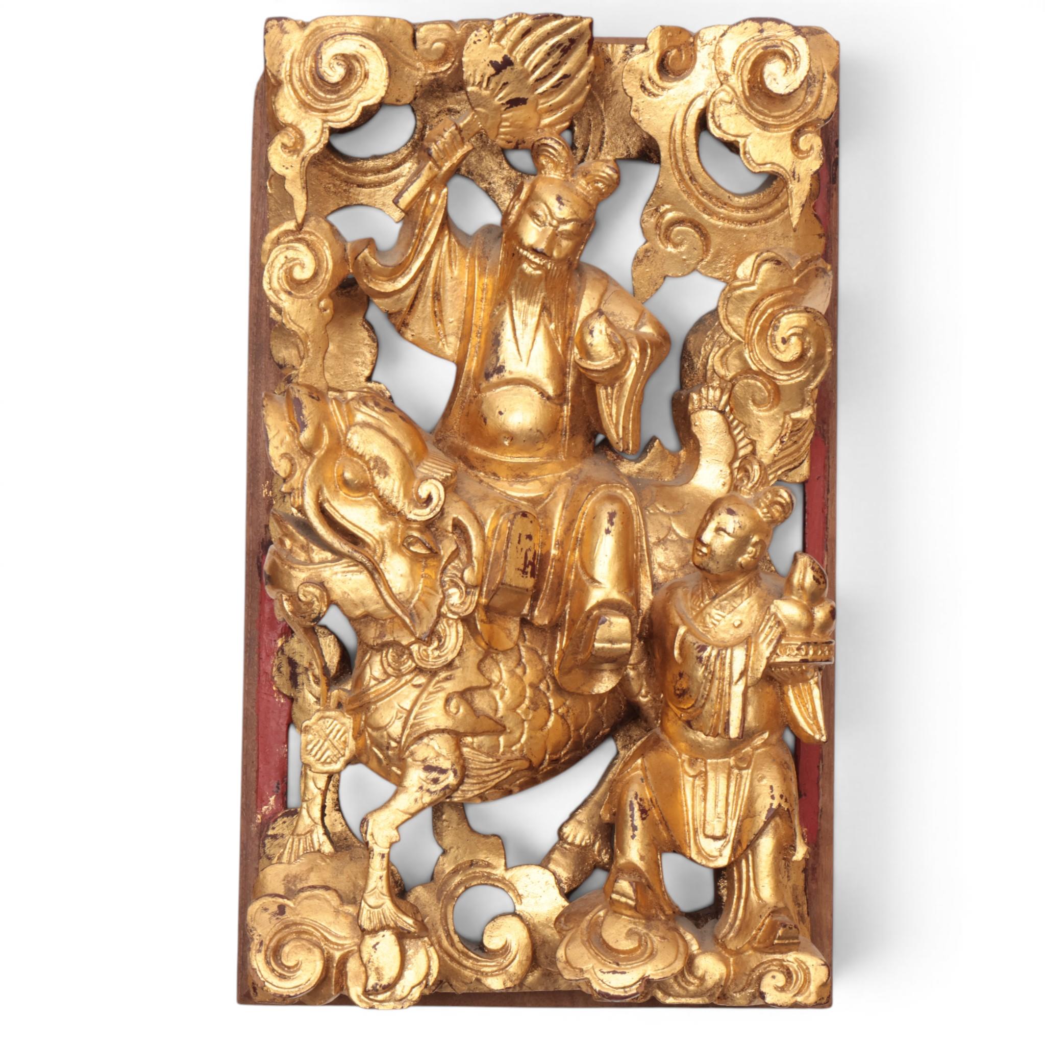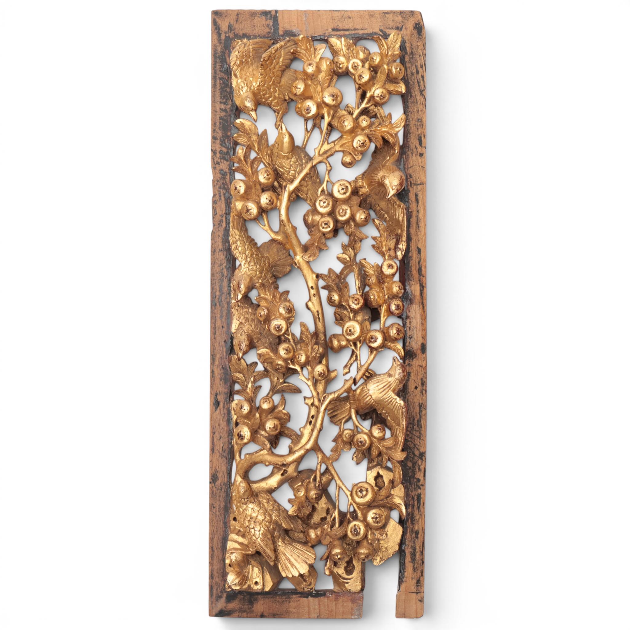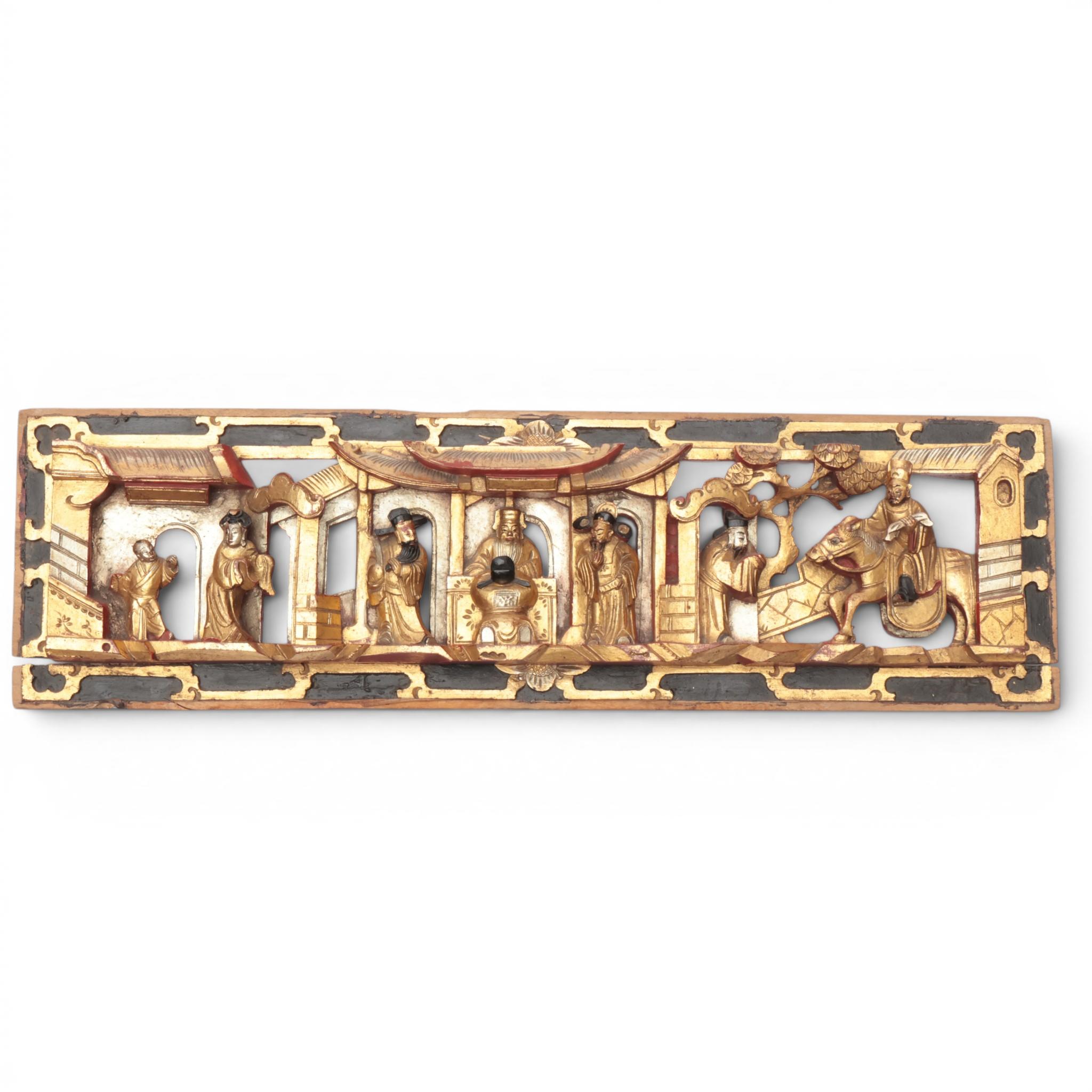 China, six red lacquer and gilt-wood carved ornaments, ca. 1900,