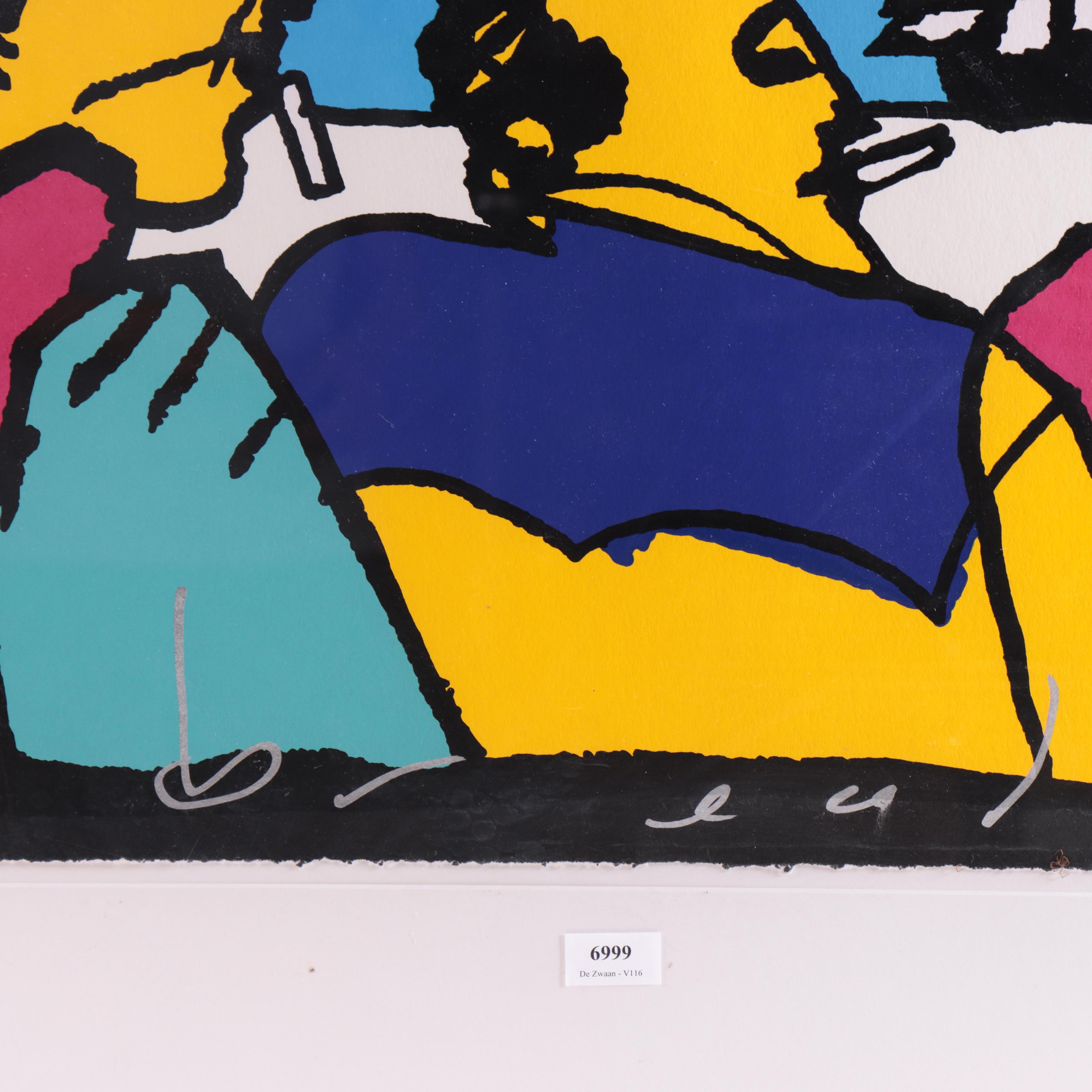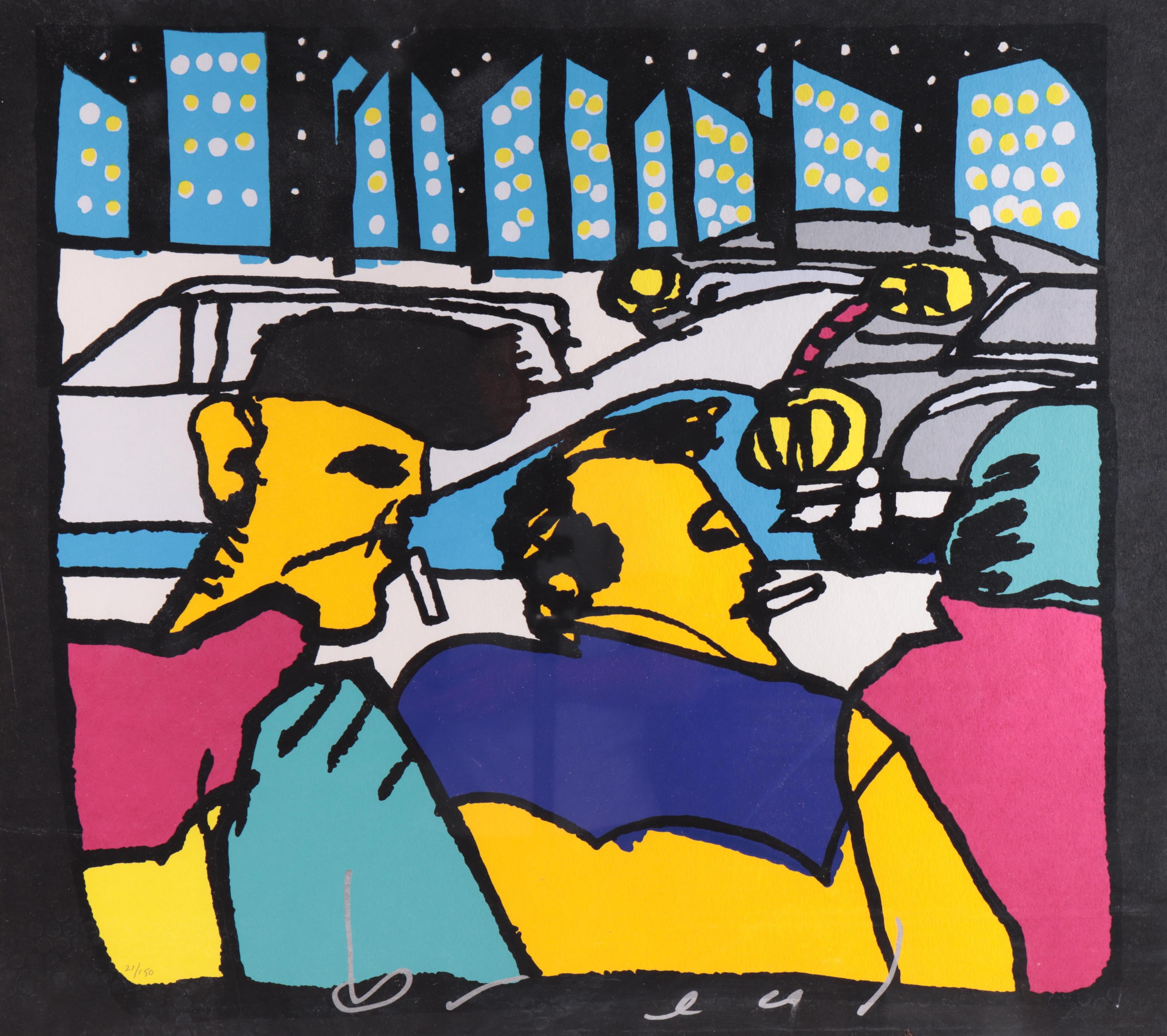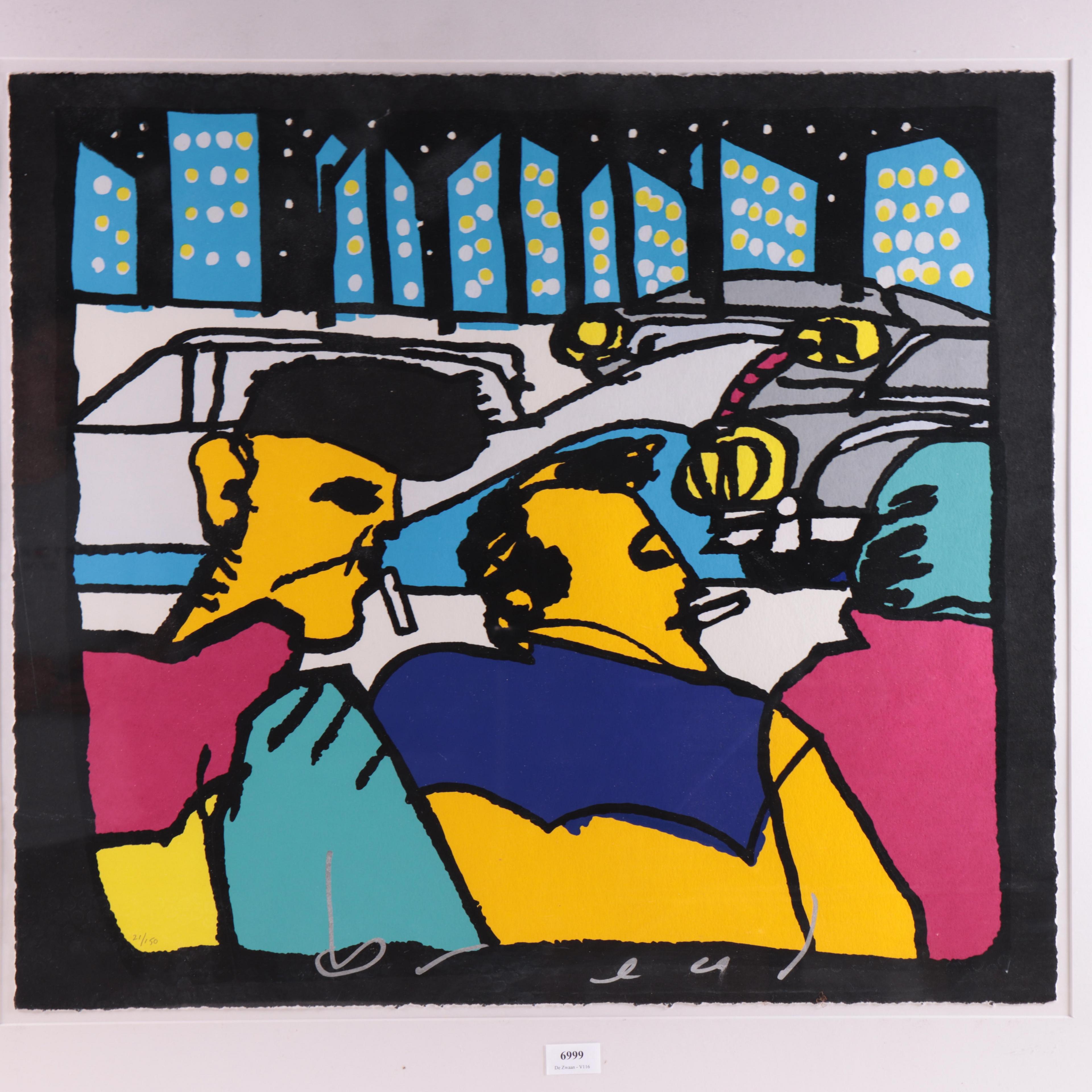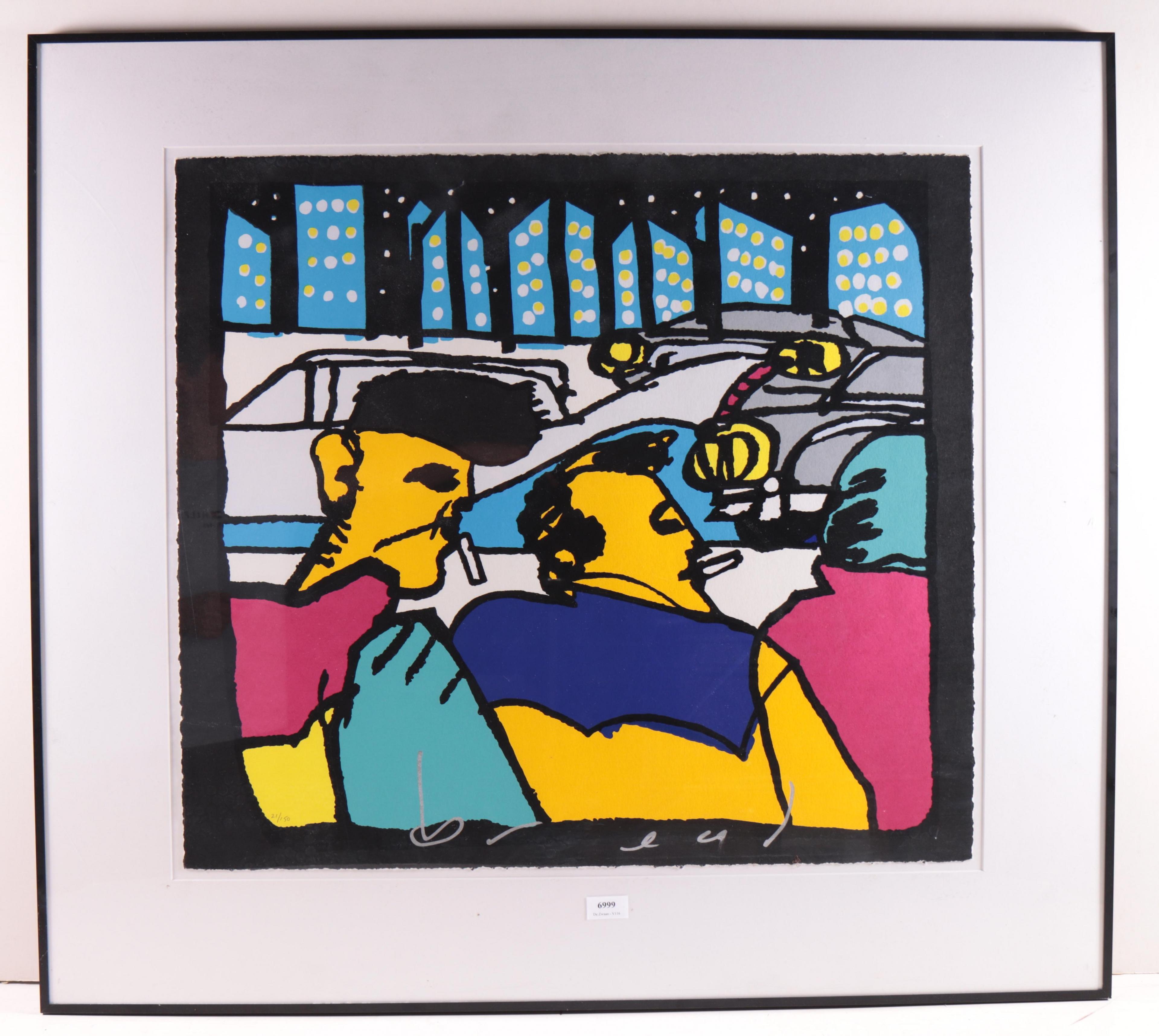 zeefdruk, gesigneerd middenonder, 21/150, 65 x 74 cm.