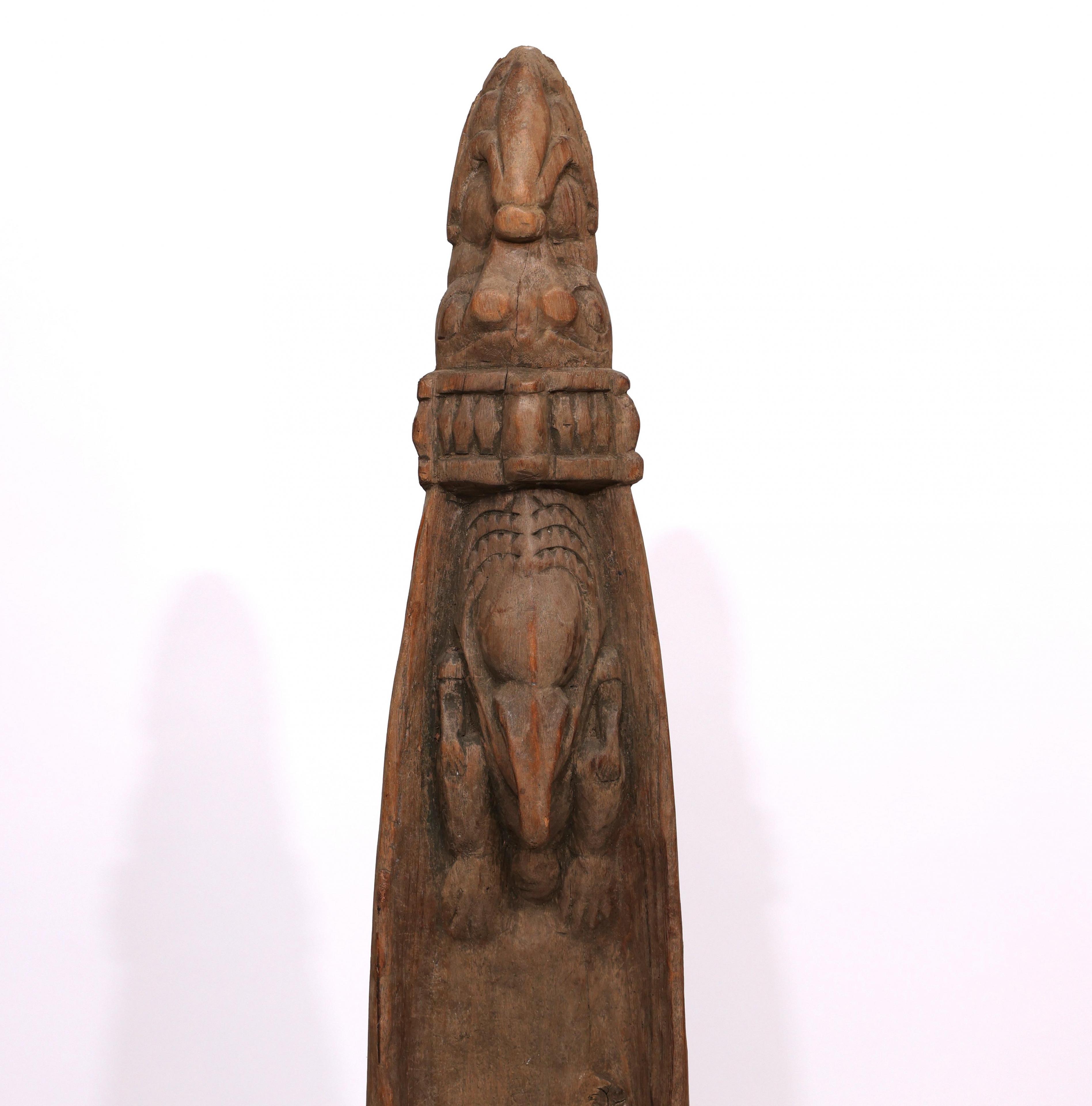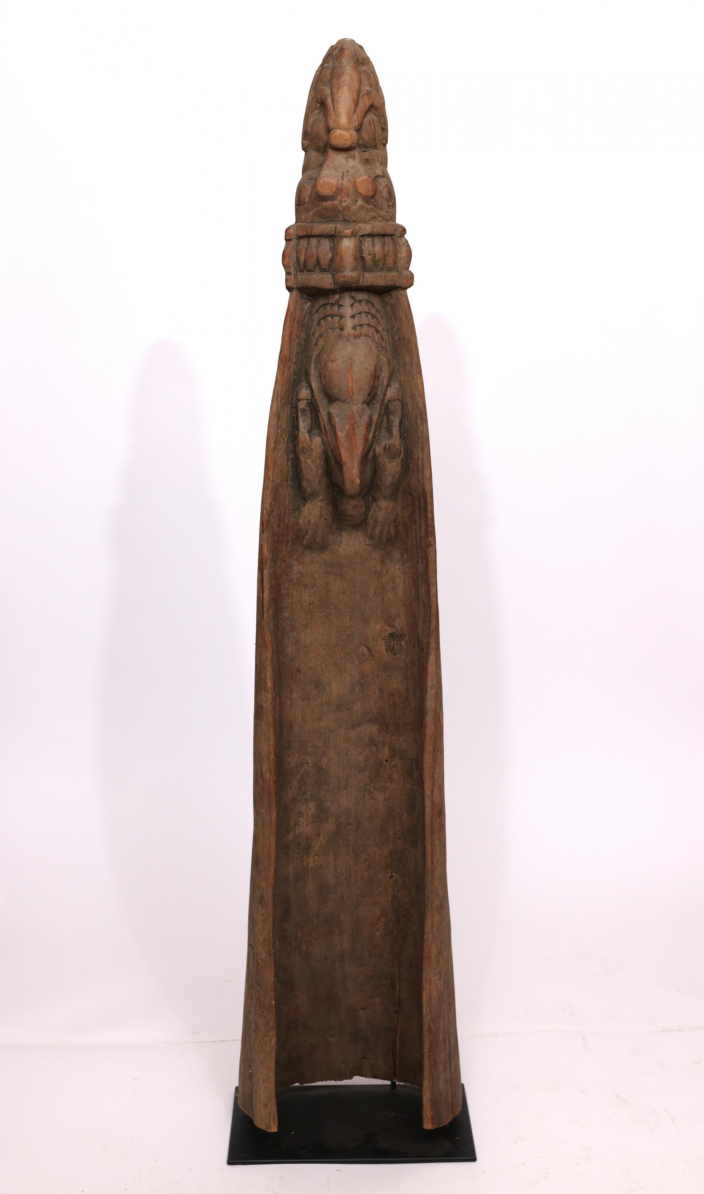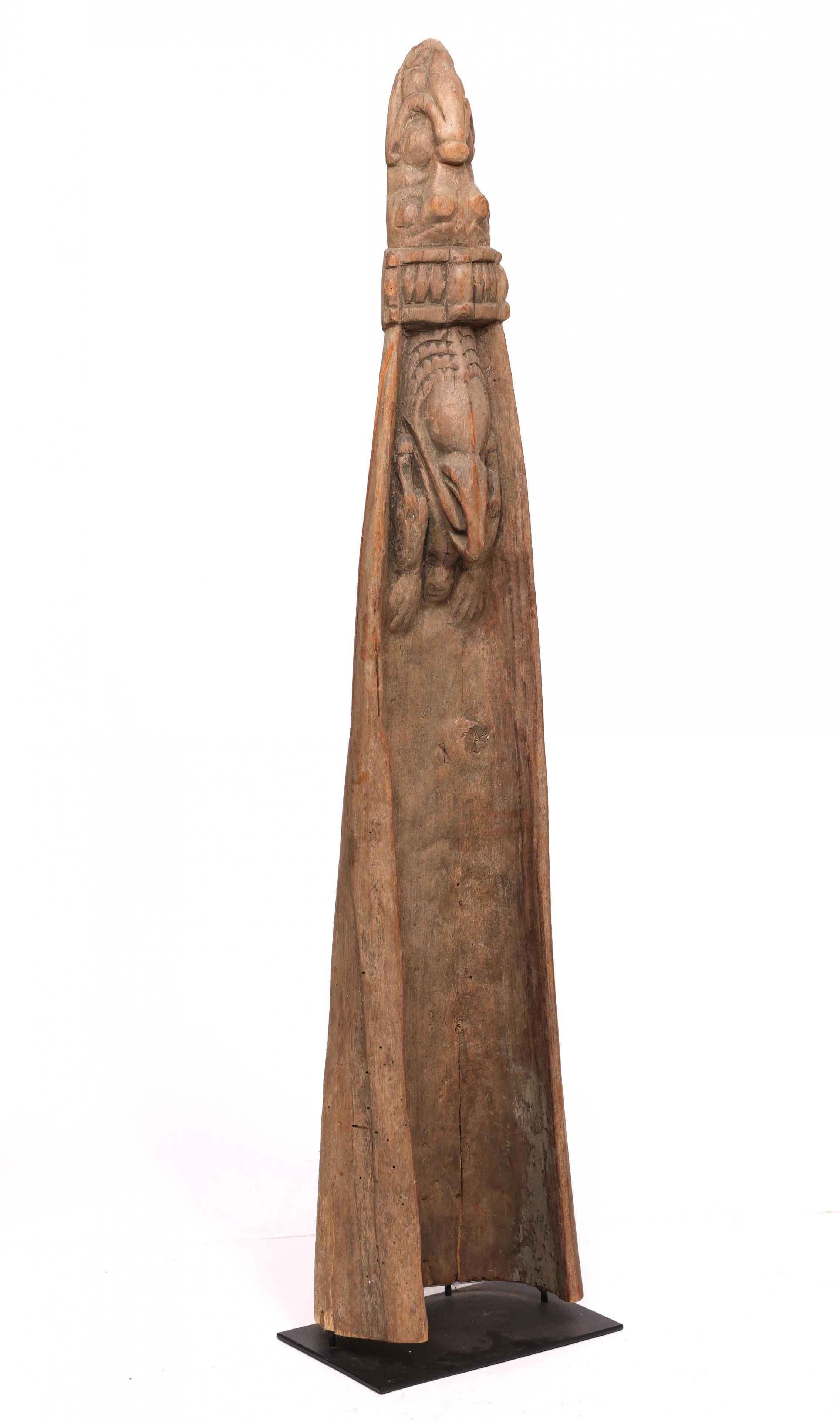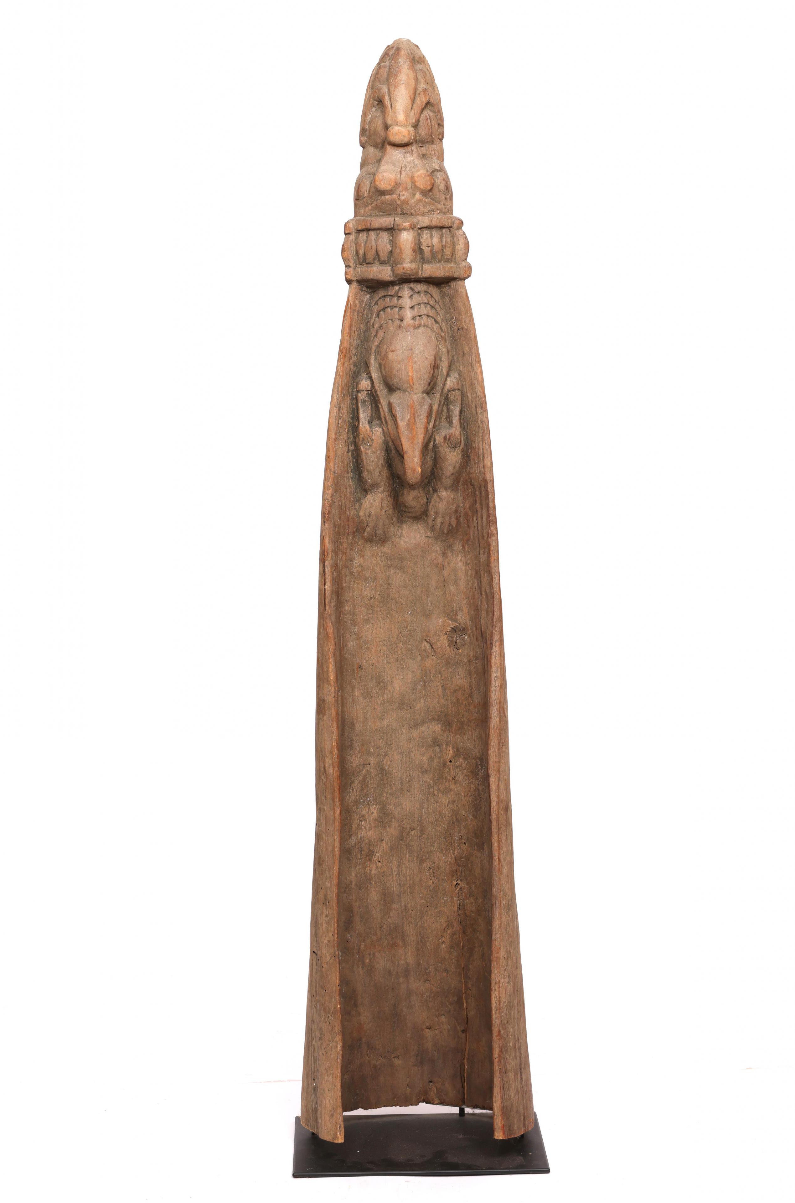 decorated by a standing anthropmorphic figure, topped by a crocodile head.