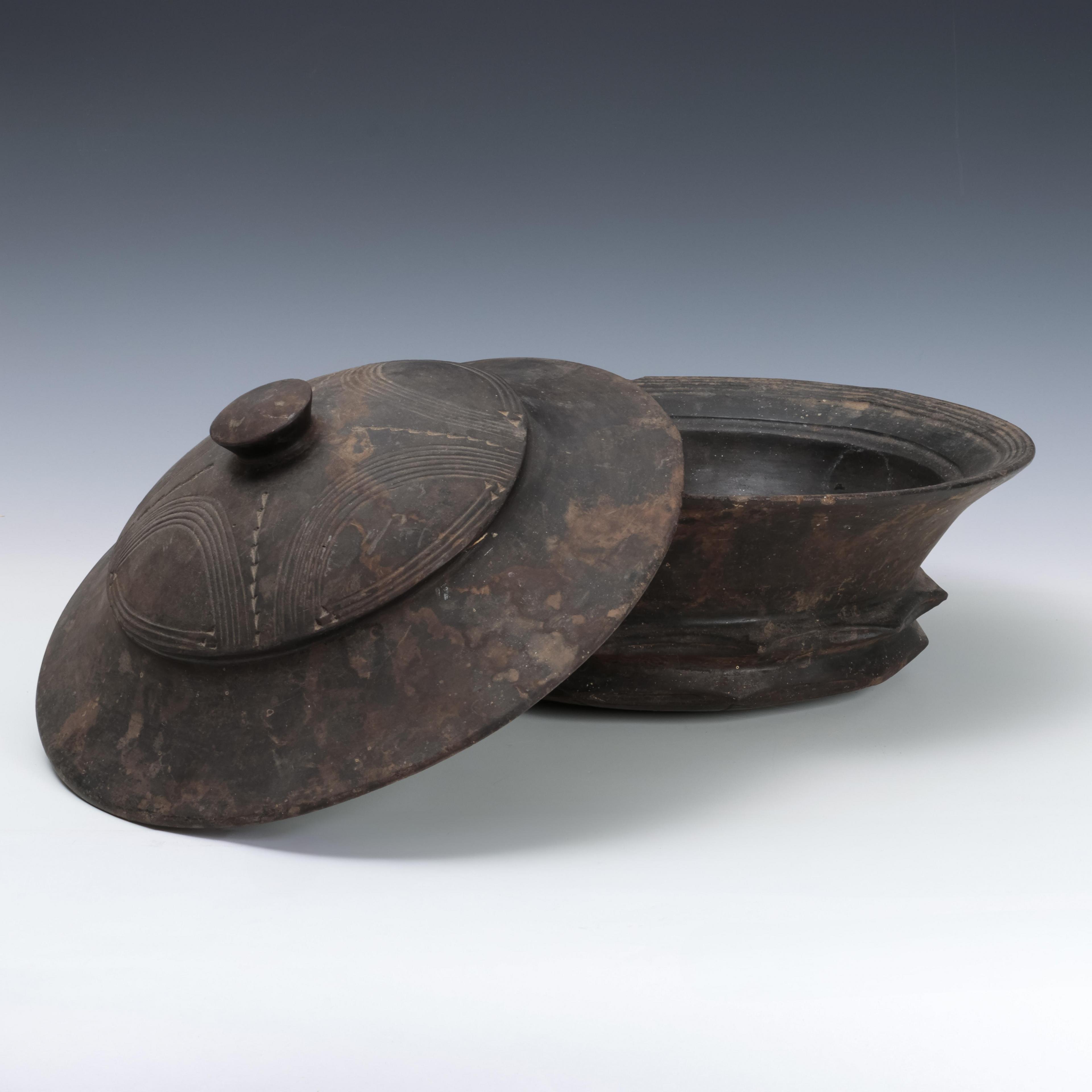 Ghana, Akan, a black terracotta lidded bowl.