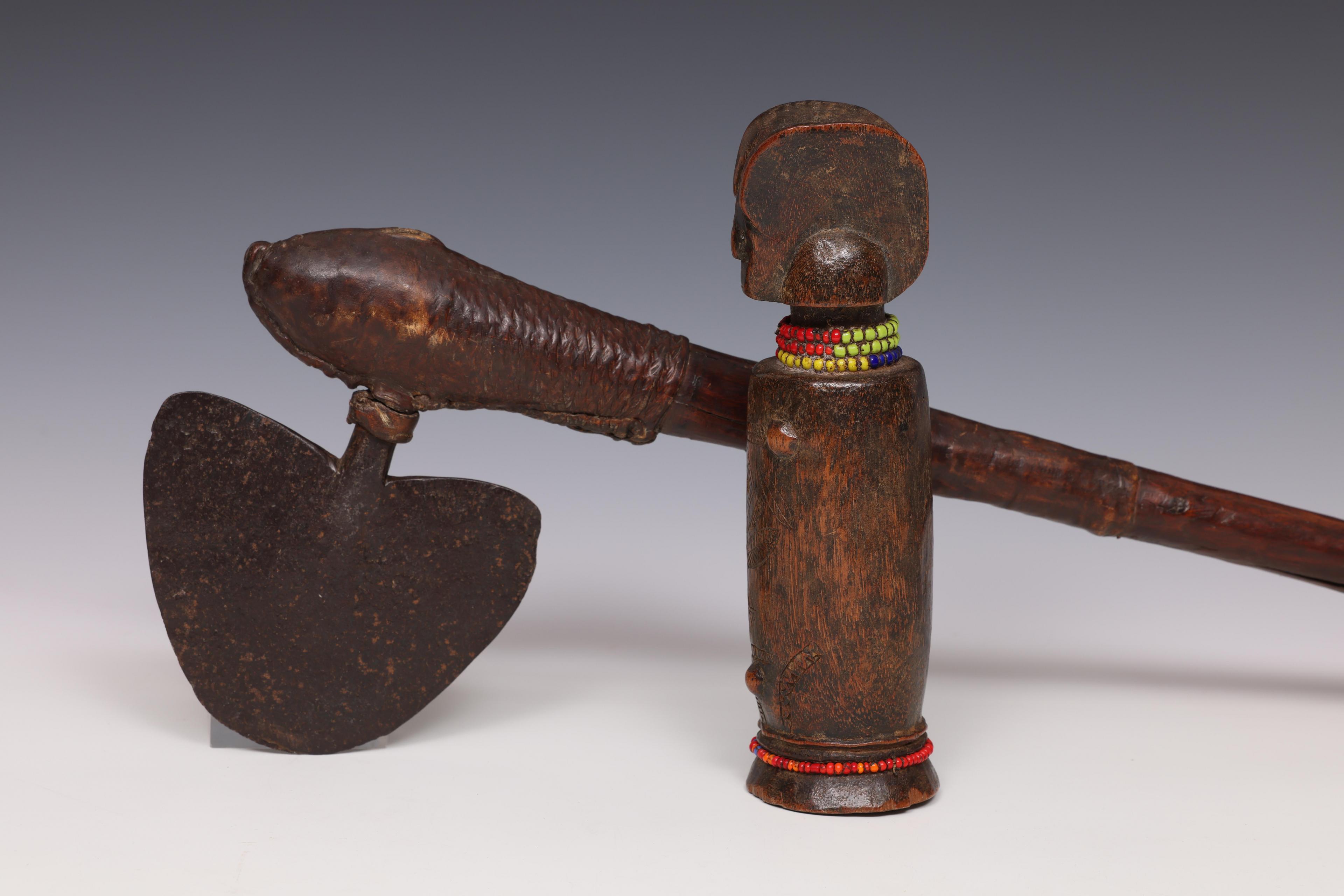 wooden shaft, several bindings and an iron blade. Herewith Tanzania, a Zaramo wooden dol.