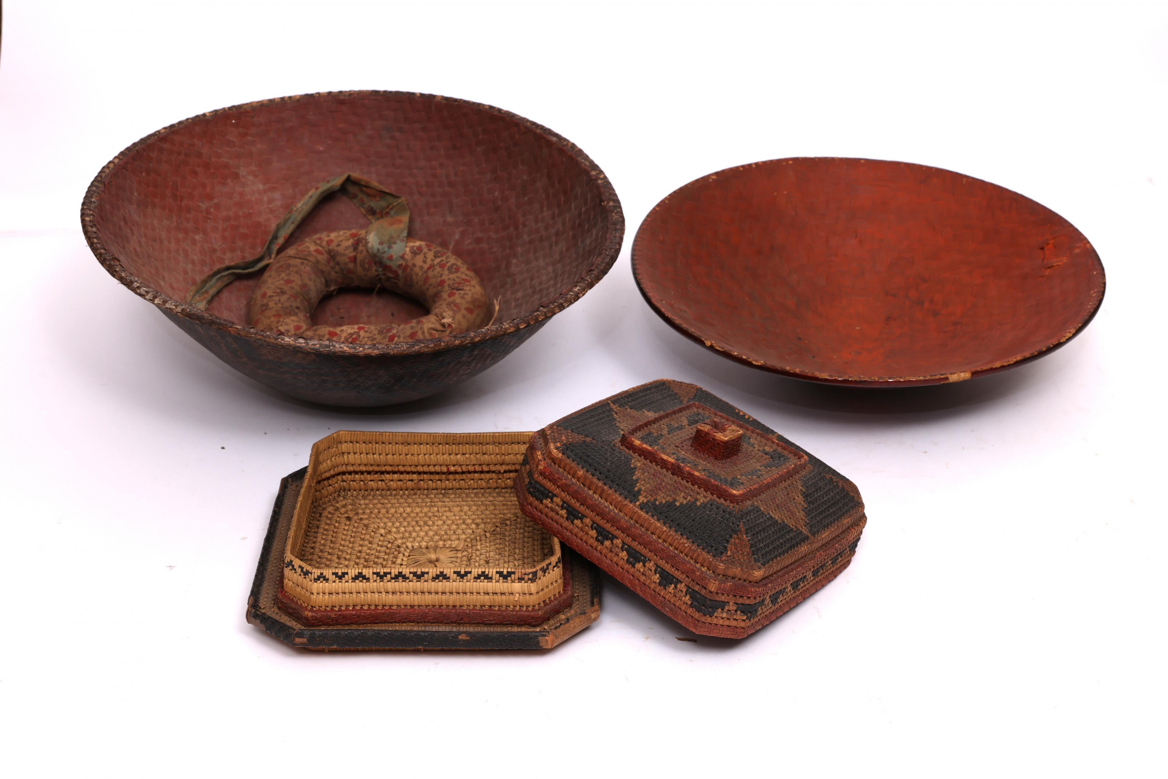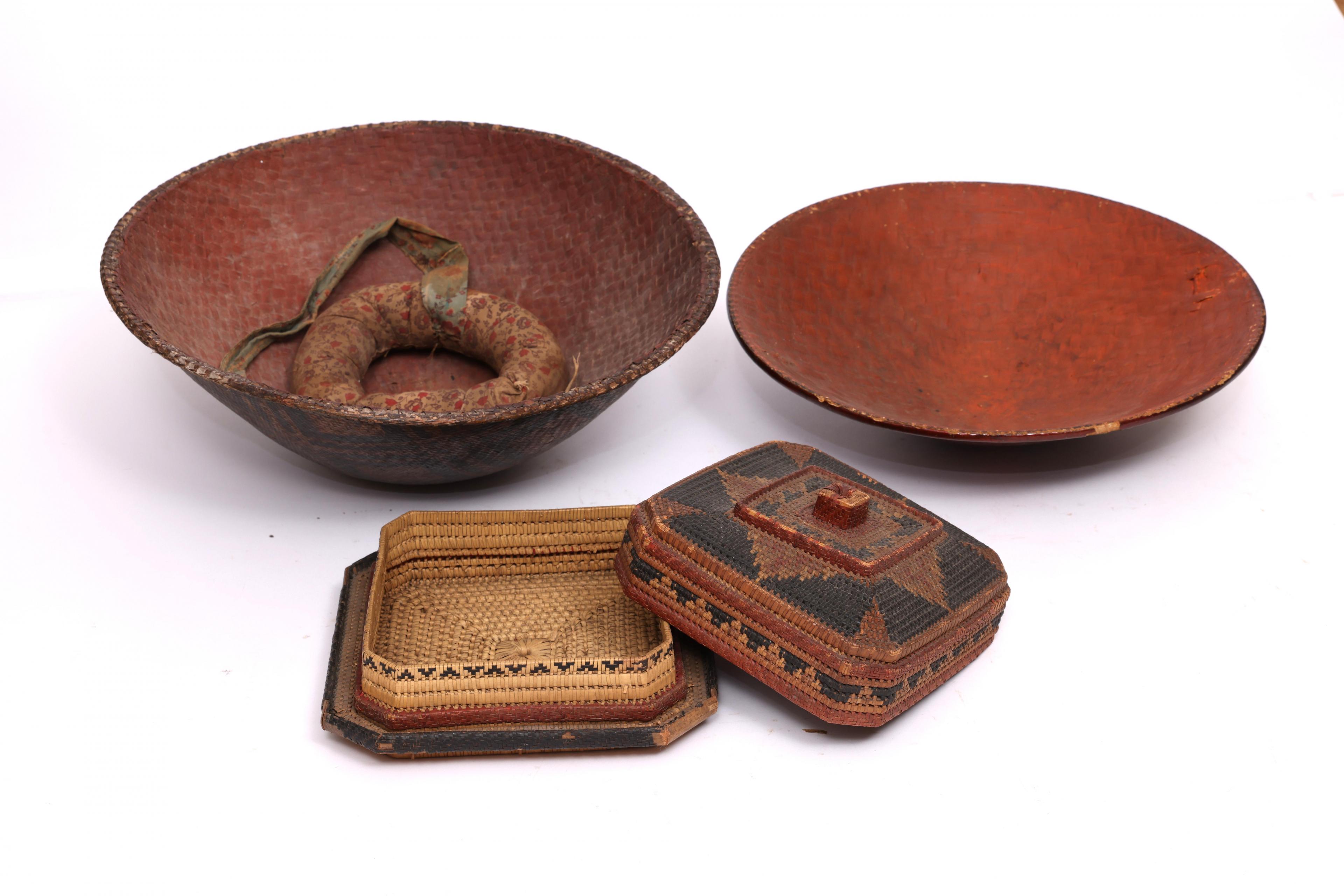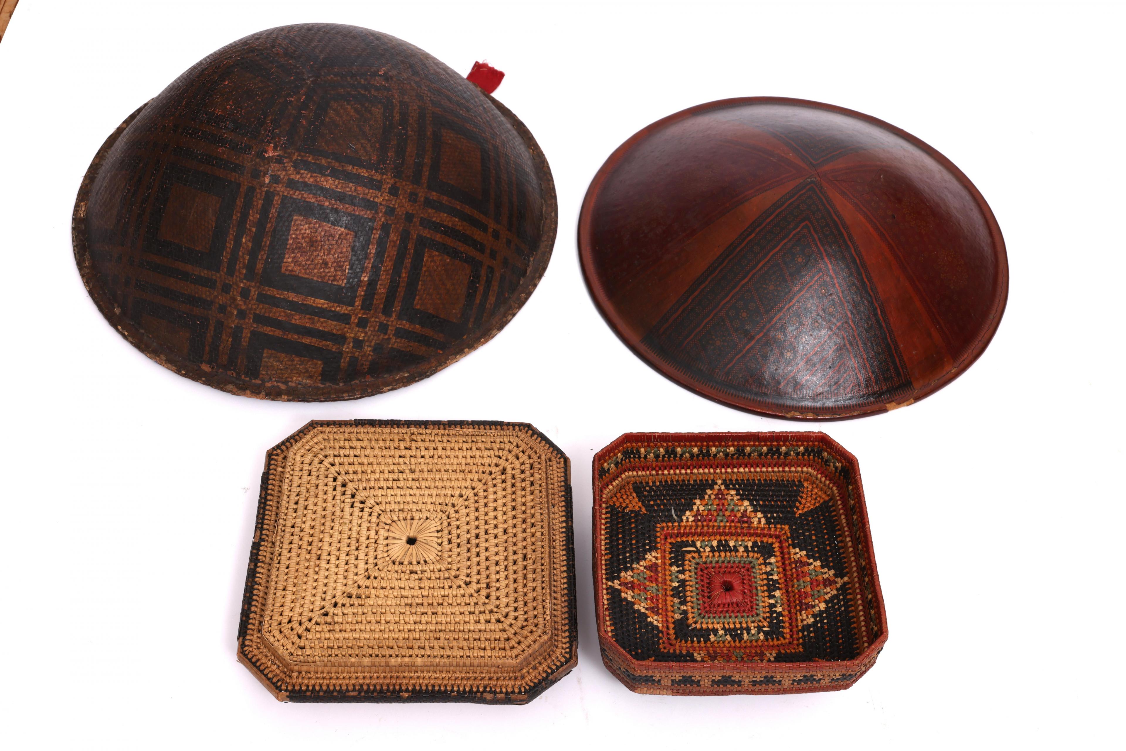 Herewith a Sumatra, lacquered headdress and a Sulawesi, plaited and lacquered headdress, 19th century
