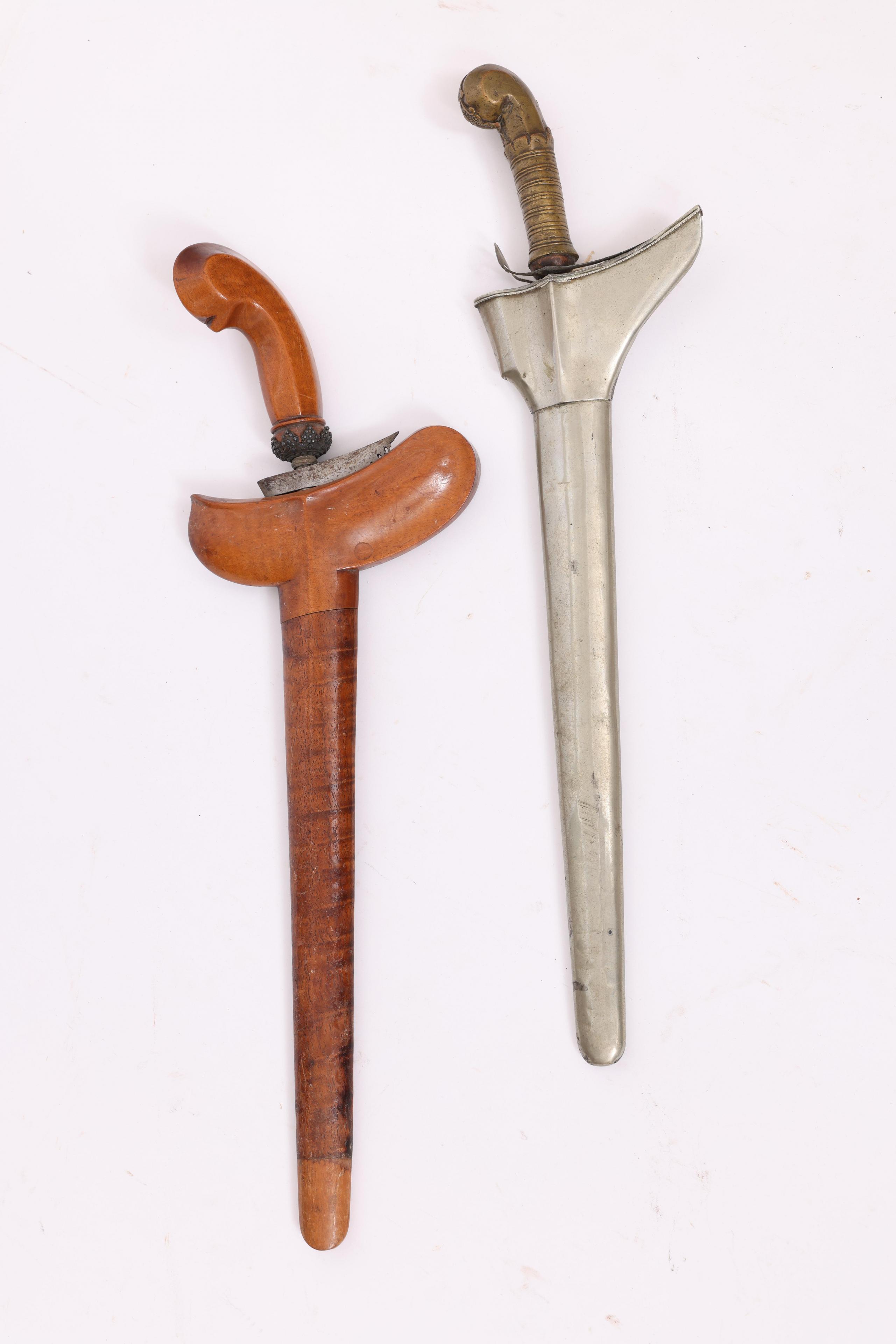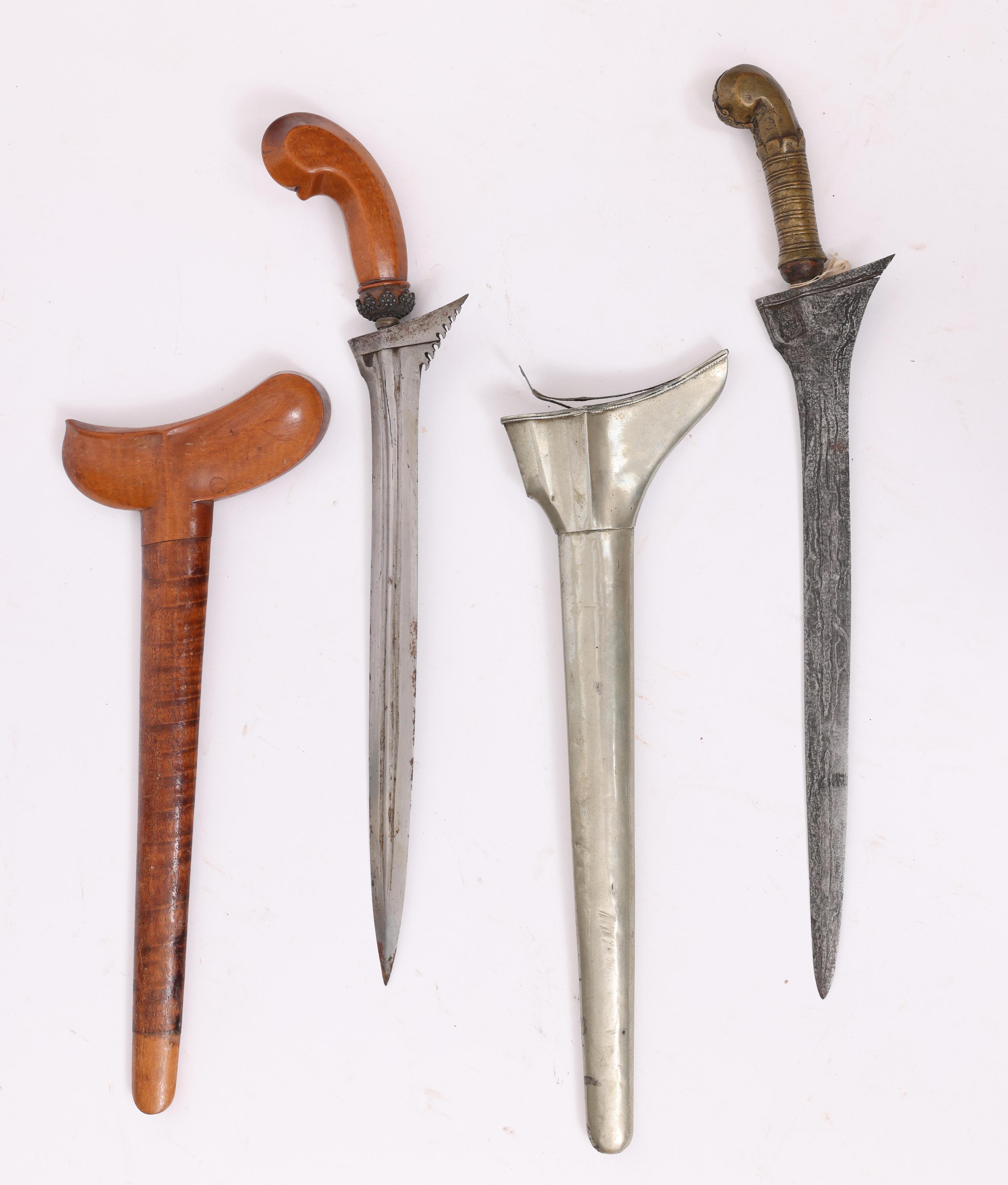 Herewith a kris with straight pamor iron blade, brass hilt and silvered pendok.